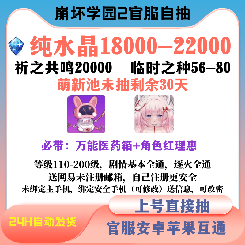 崩坏学园2【安卓360】崩坏学园2自抽号 水晶号 初始号自抽 iOS安卓米哈游国服自带36000