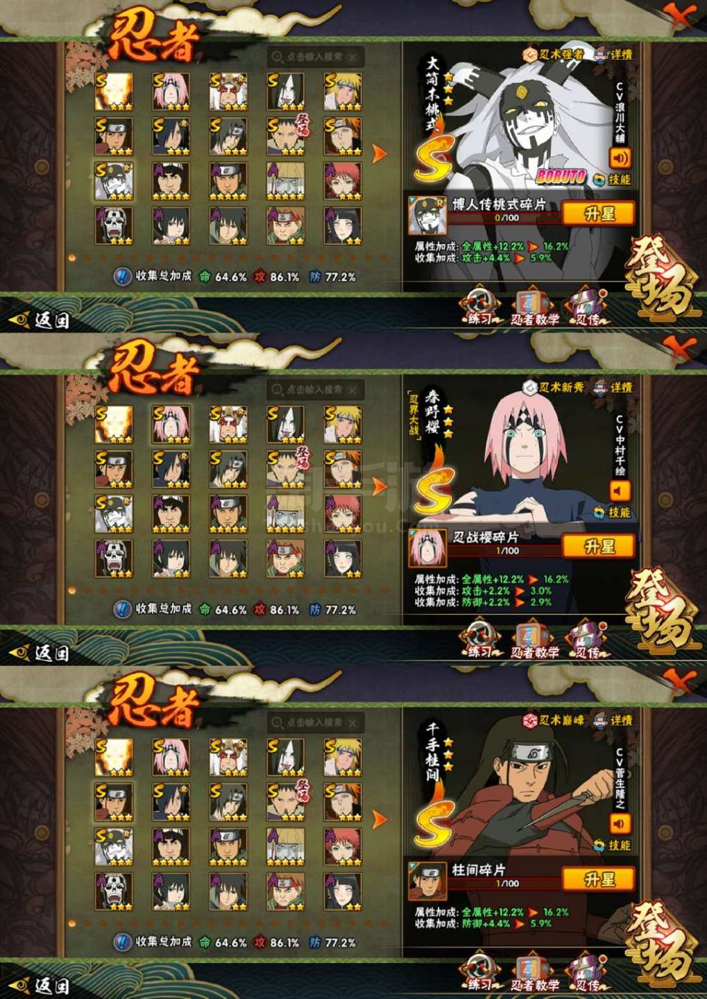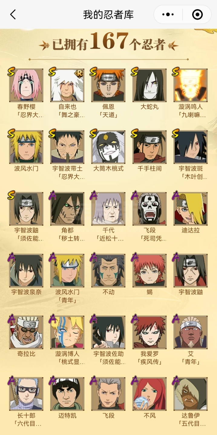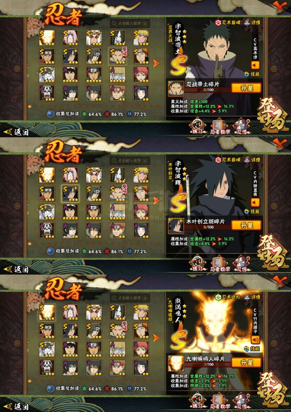 火影忍者【安卓QQ】能二次修改实名认证,号非常安全,自选a忍还未选,解斑舍人红夜快出了,号里都是火影热门强势忍者,看图