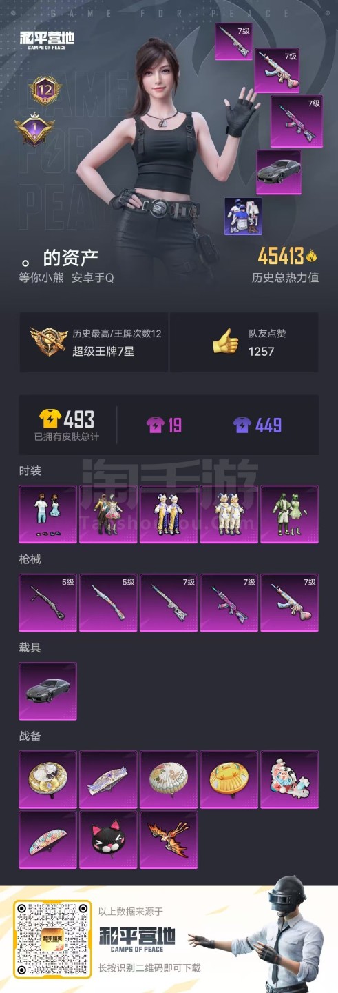 hs43116 安卓手Q-12王牌印记-5粉装-5特效枪-1载具-45413热力值-118套装-13