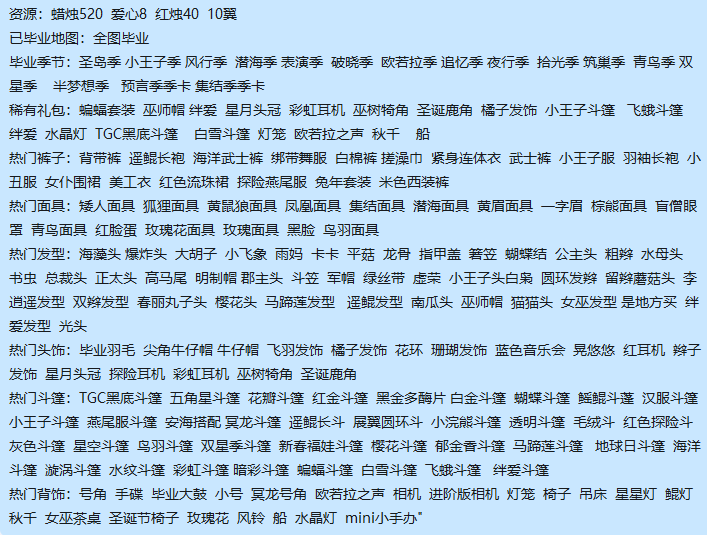 毕业季节:圣岛季 小王子季 风行季 潜海季 表演季 破晓季 欧若拉季 追忆季 夜行季 拾光季 筑巢季 青鸟季 双星季 半梦想季 预言季季卡 集结季季卡