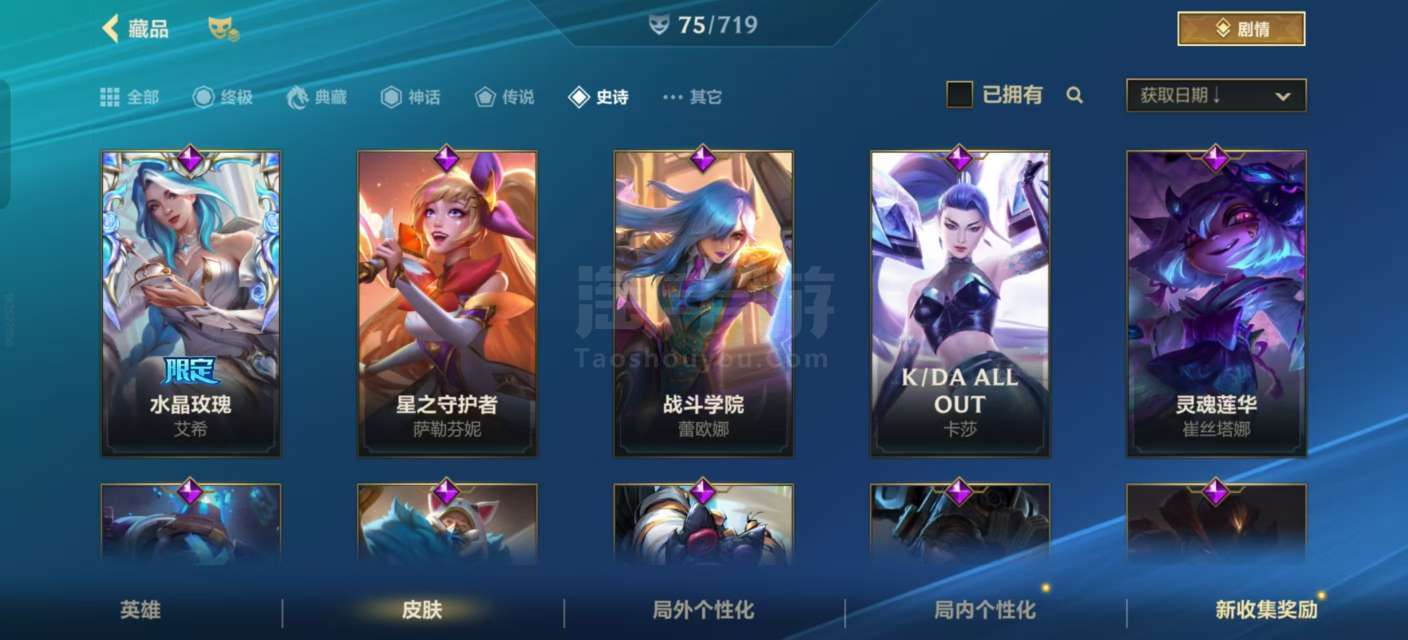英雄联盟手游(lol)【安卓微信】典藏皮肤传说皮肤水晶玫瑰退游甩卖。
