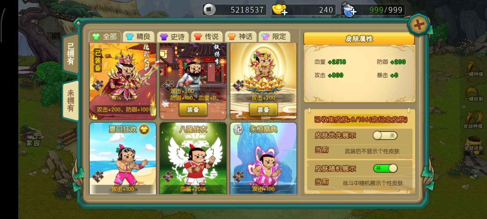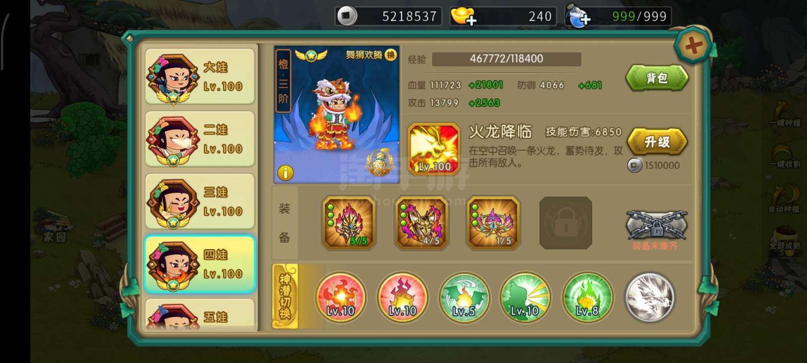葫芦娃【安卓其他】v10 弃坑号 低价出售 八强全皮 无神兽 武斗 800多
