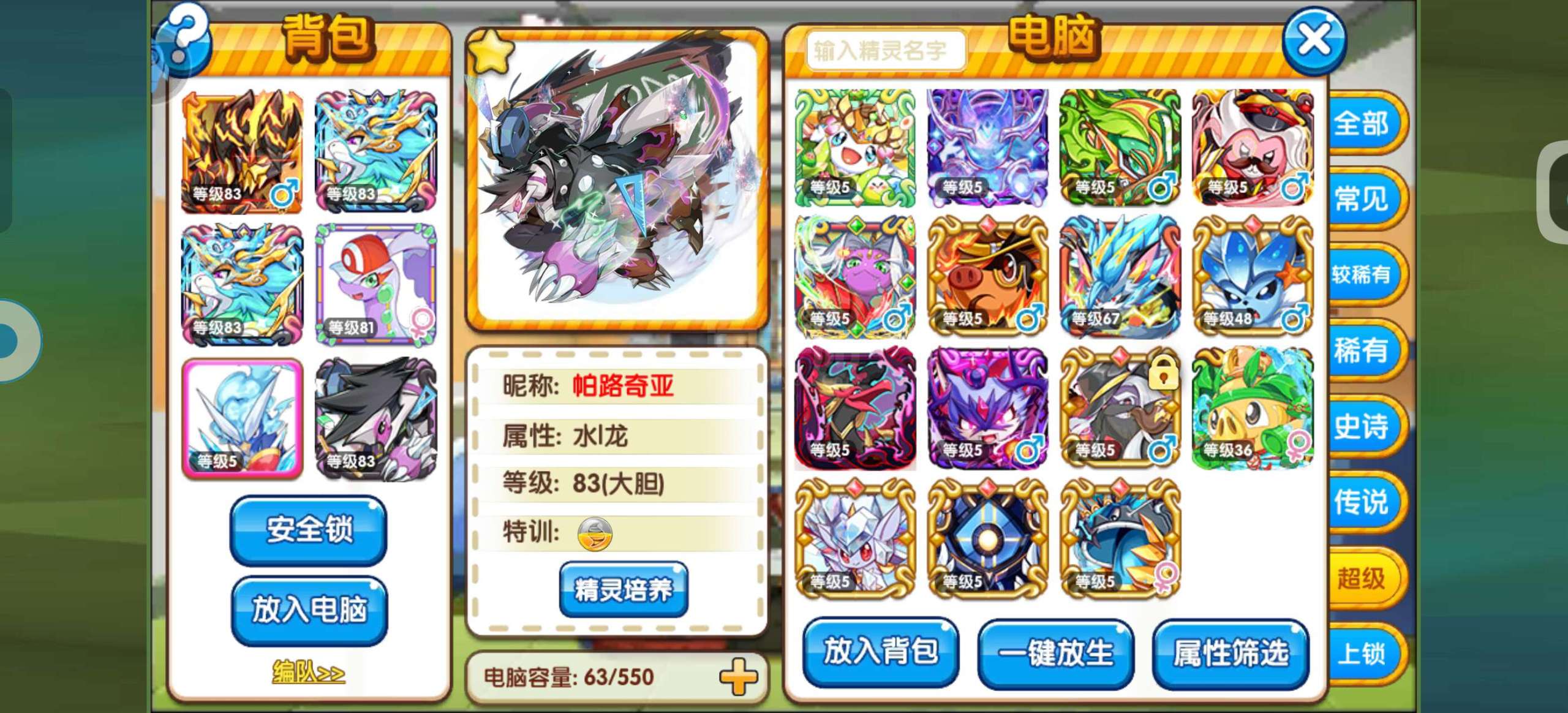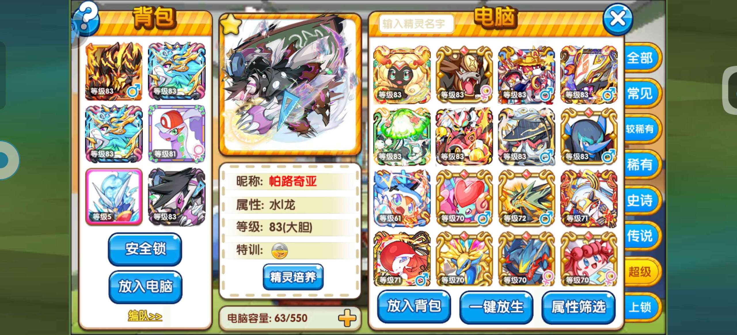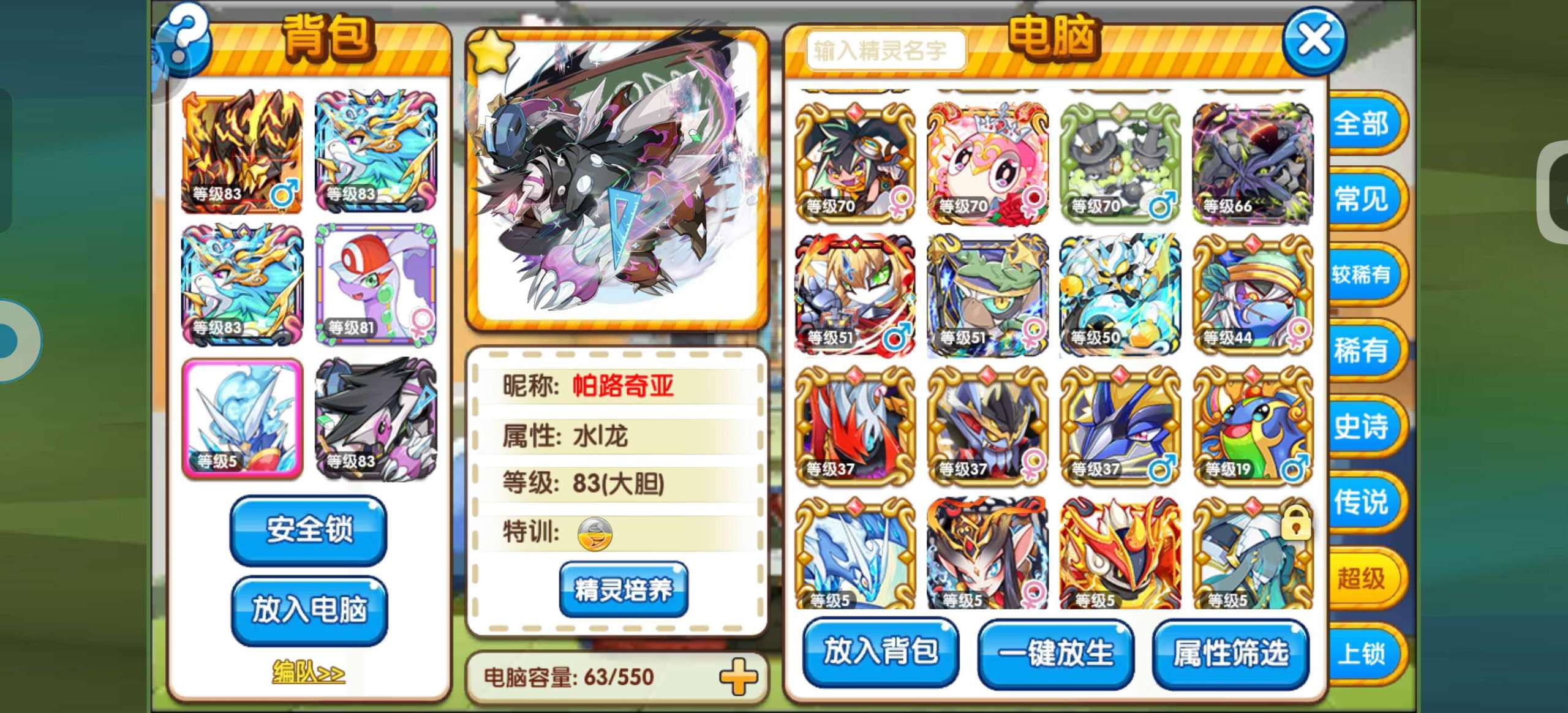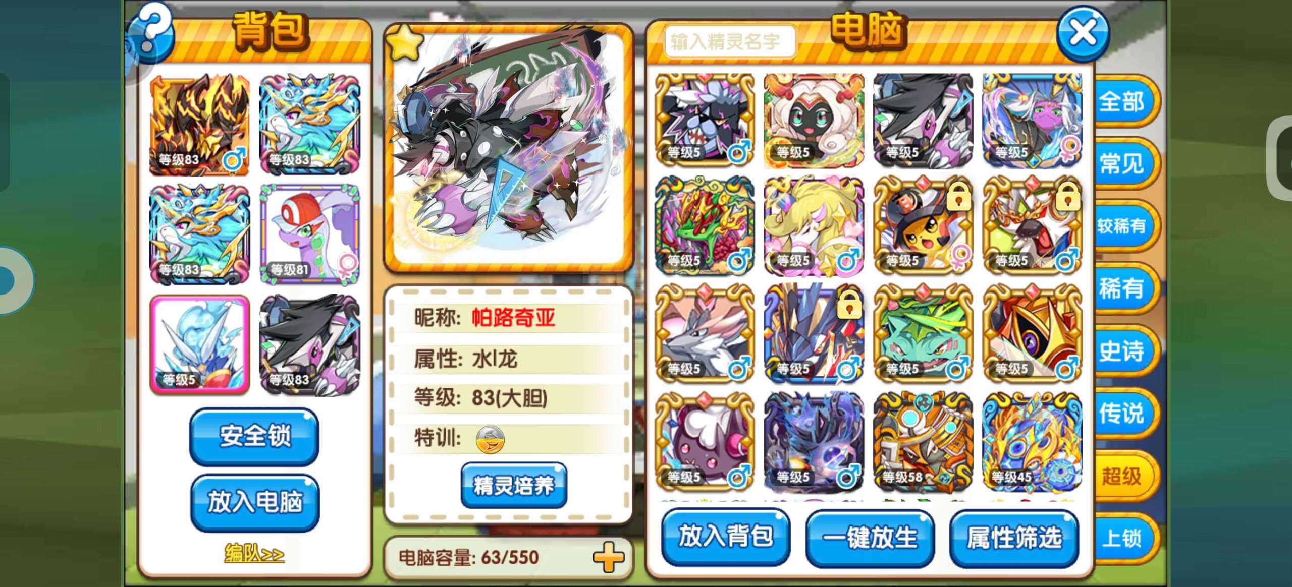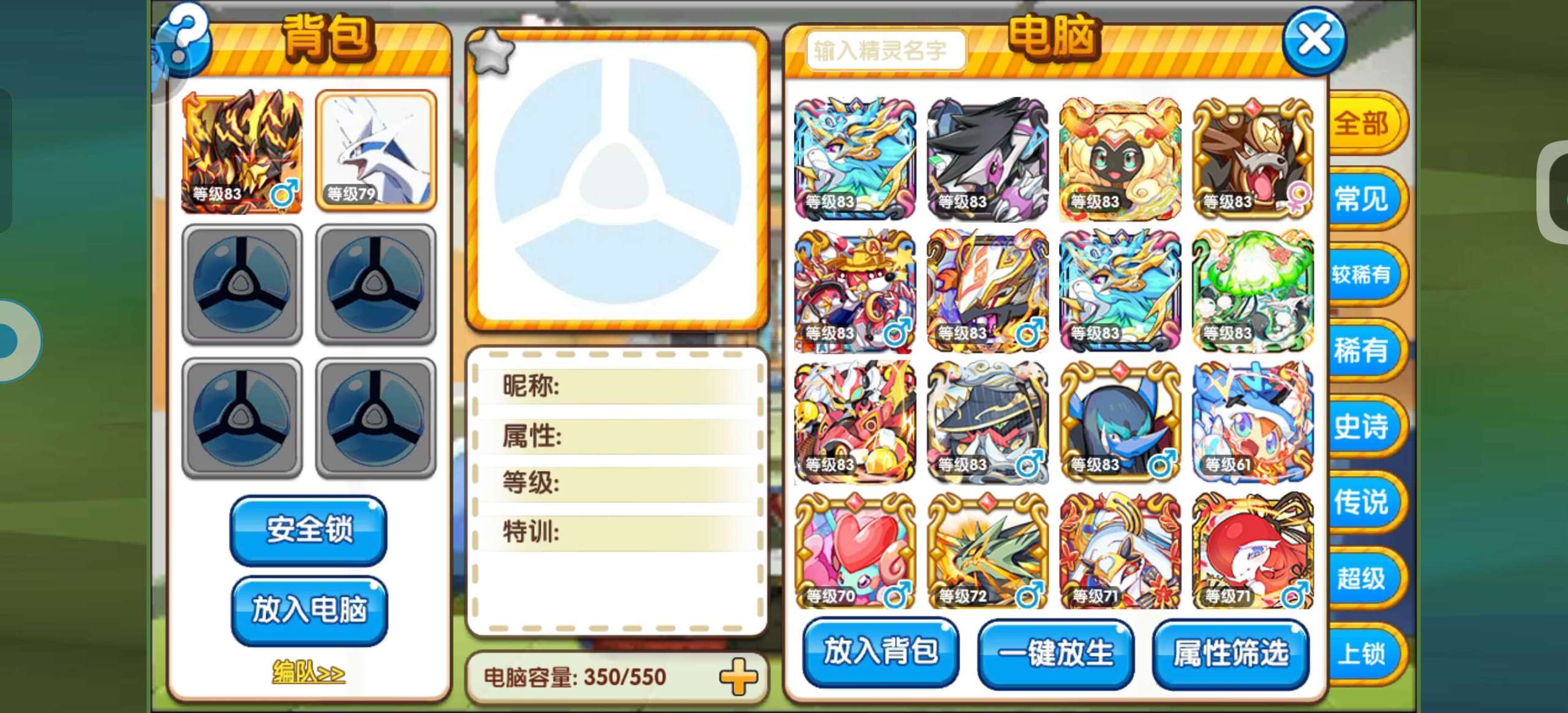 口袋妖怪复刻【安卓官方】83级混服资源号,双小马,多小闪,资源很多,主玩精灵都是满配