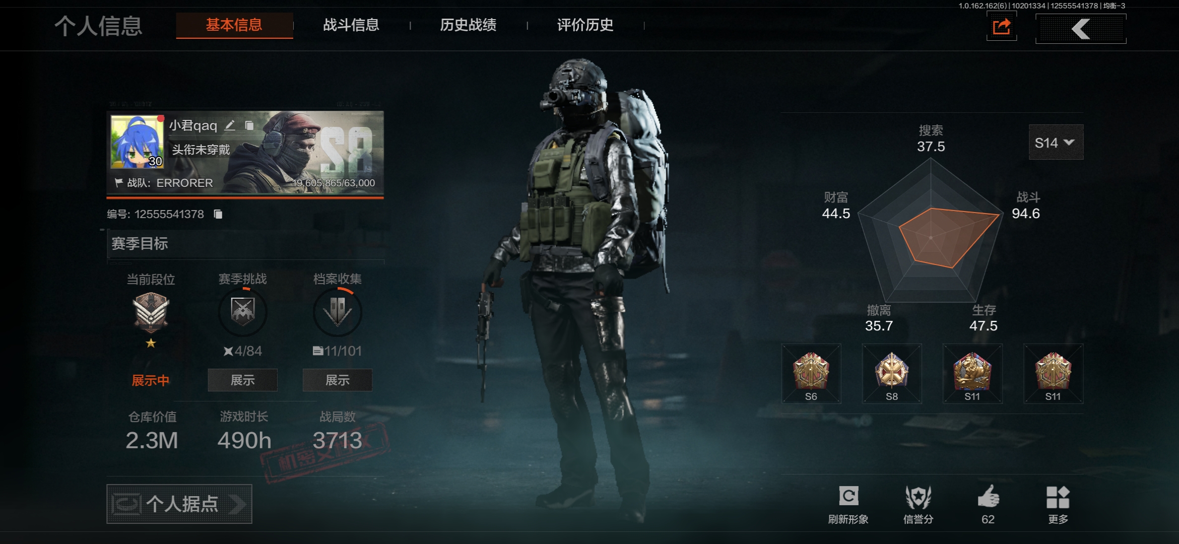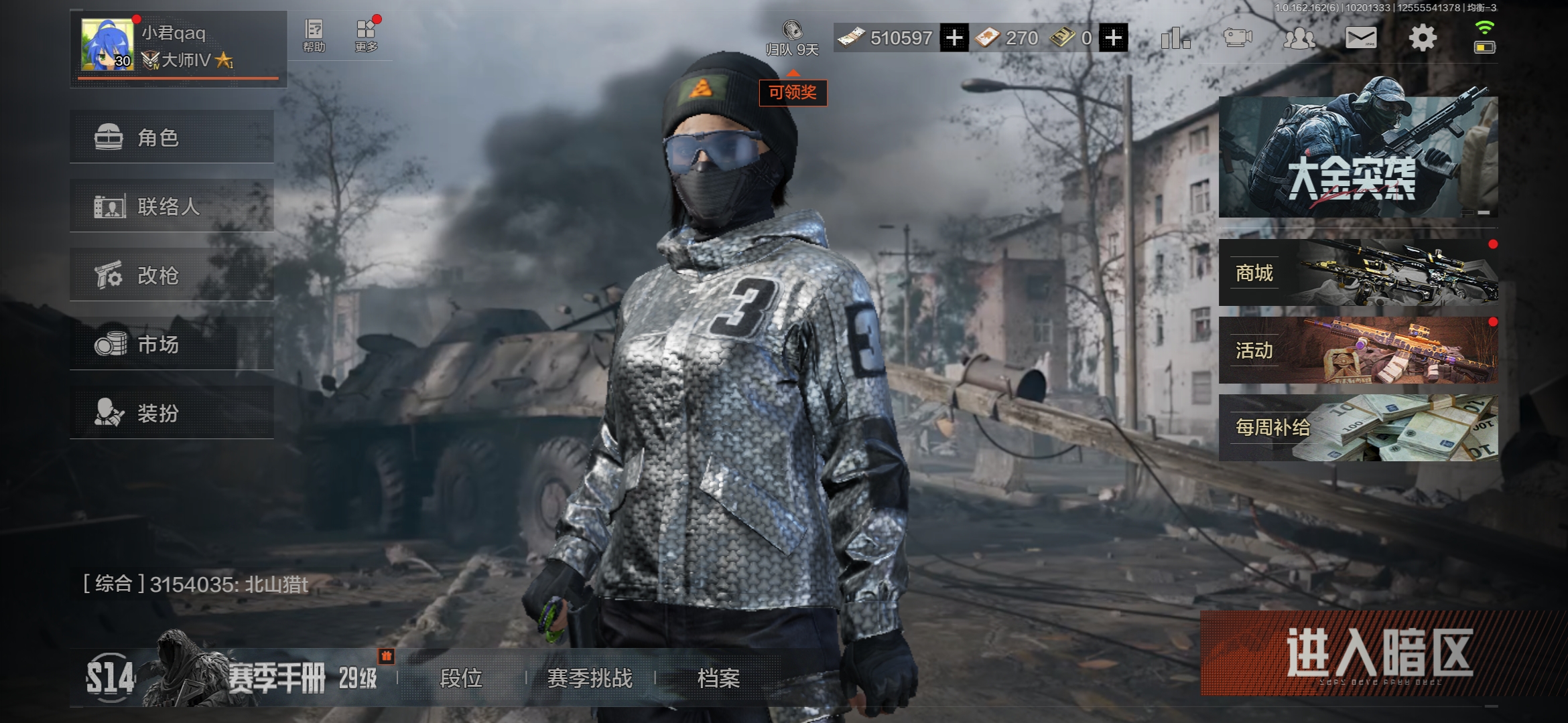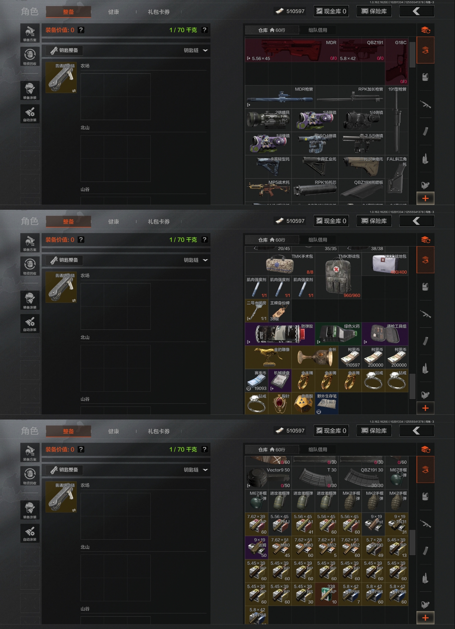 FY5616,近战武器:急袭弯刀,来战·开山刀,角色装扮(紫):少前联动RPK16,都市夜影套装,金色枪皮:蓝色咆哮·H416,紫色枪皮:火力倾泻·AKM,棱光裂变·AK102,湖冰倒影·ACE31,缟兵玄墨·VSS,敬伙伴·M16,山地伪装·AK74N,北国内卫·AN94,安卓Q区实名:可修改