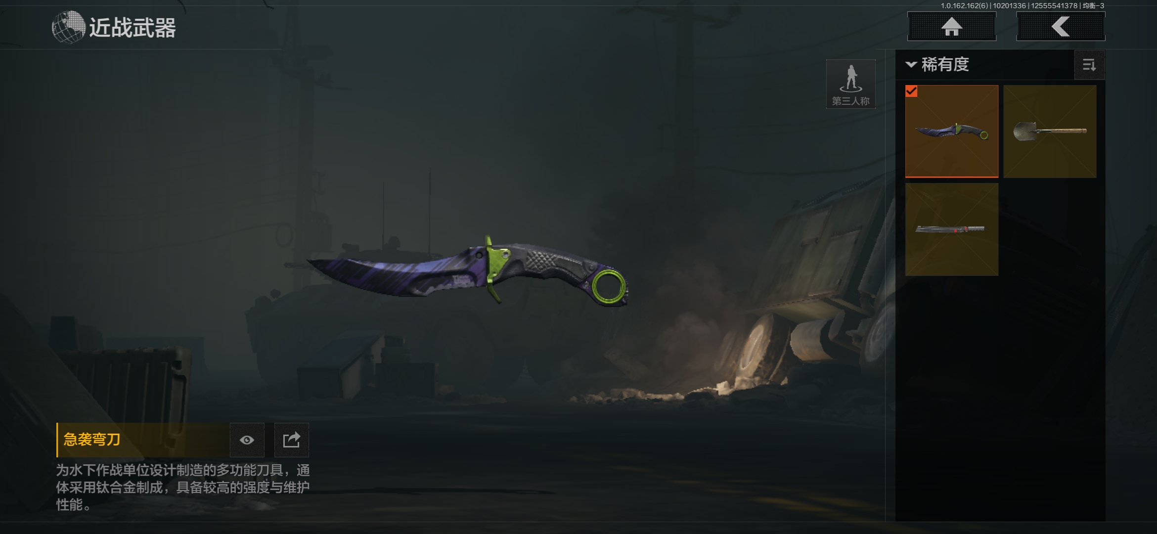 暗区突围【安卓QQ】FY5616,近战武器:急袭弯刀,来战·开山刀,角色装扮(紫):少前联动RPK16,都市夜影套装,金