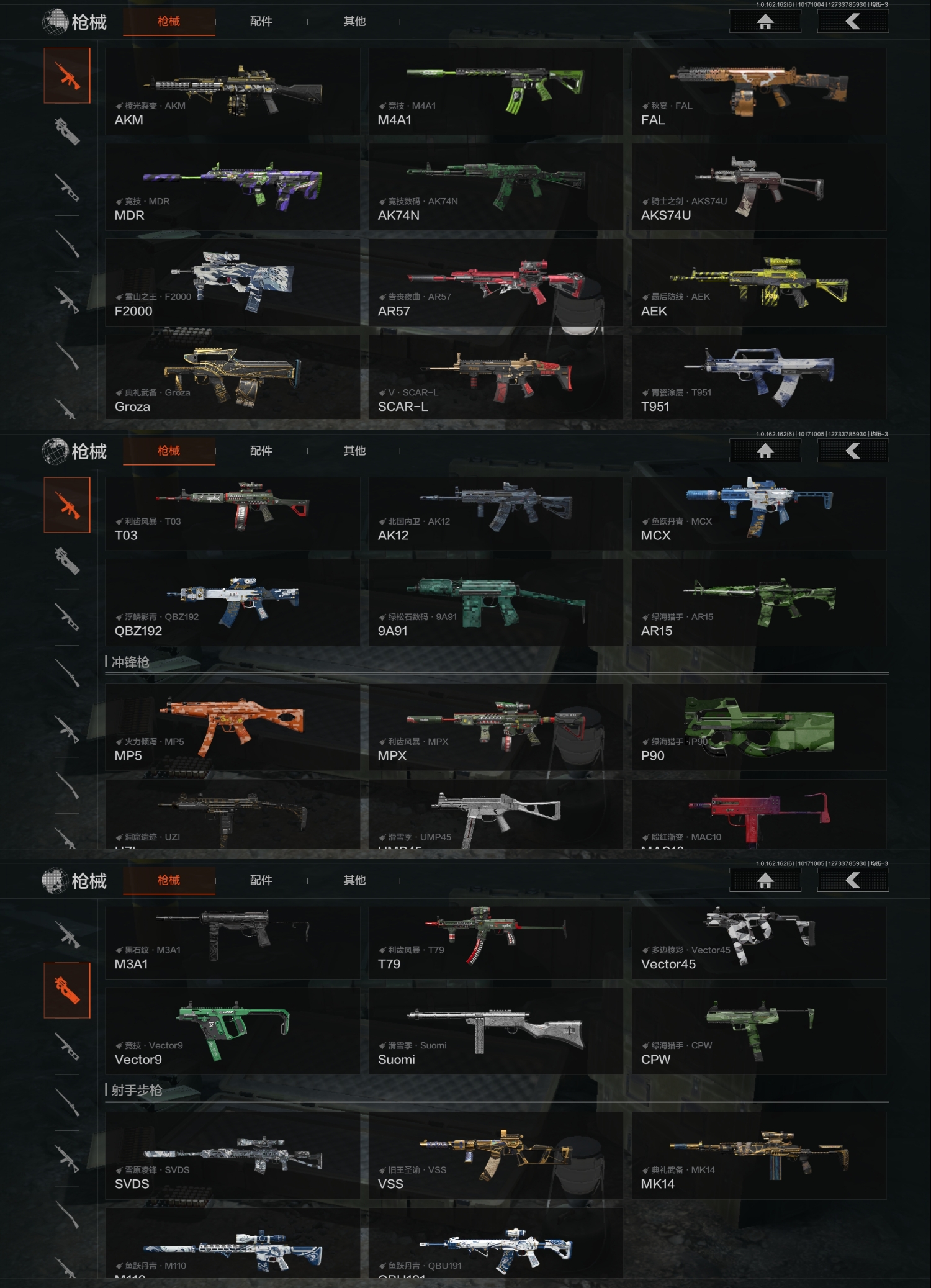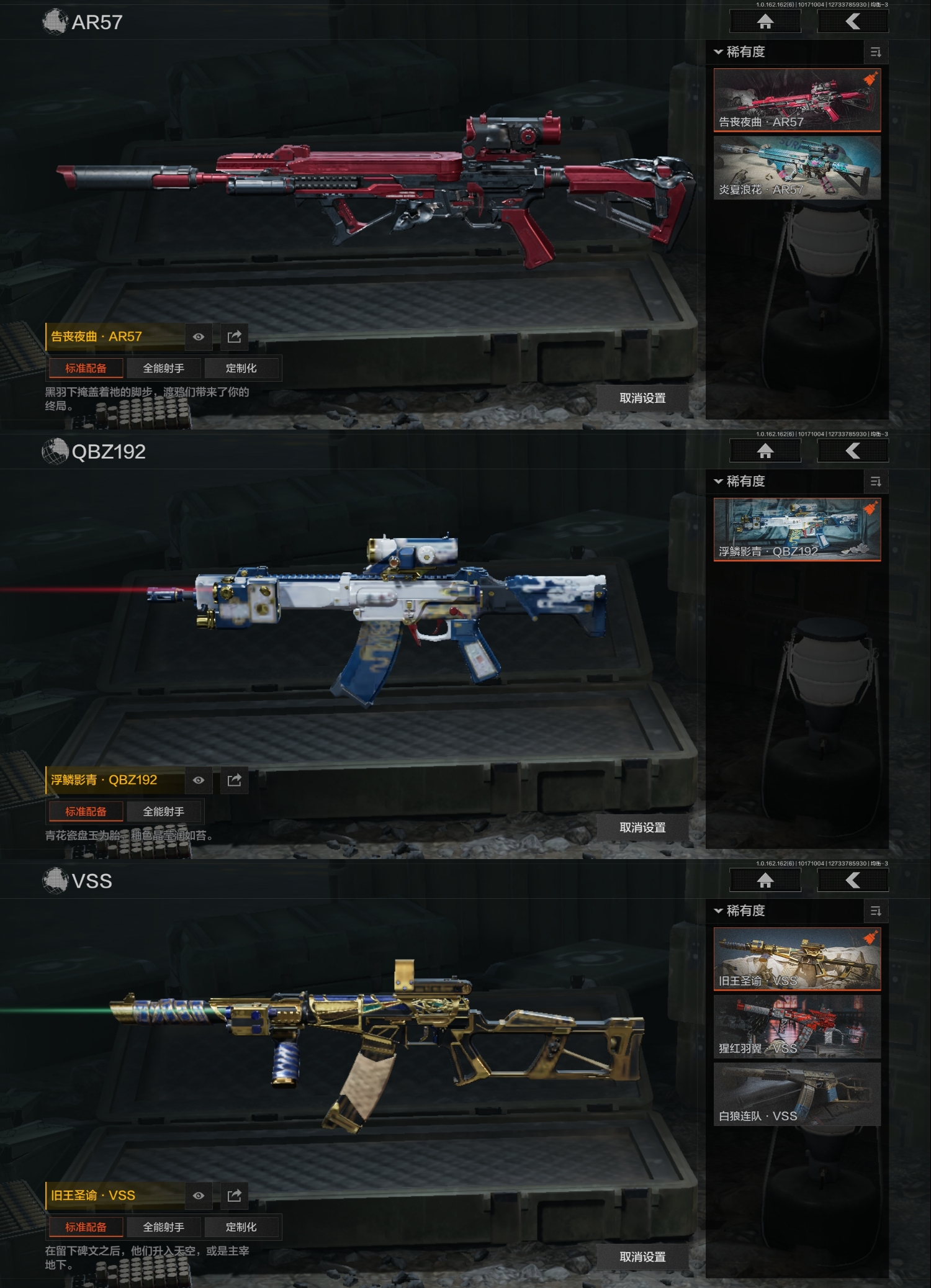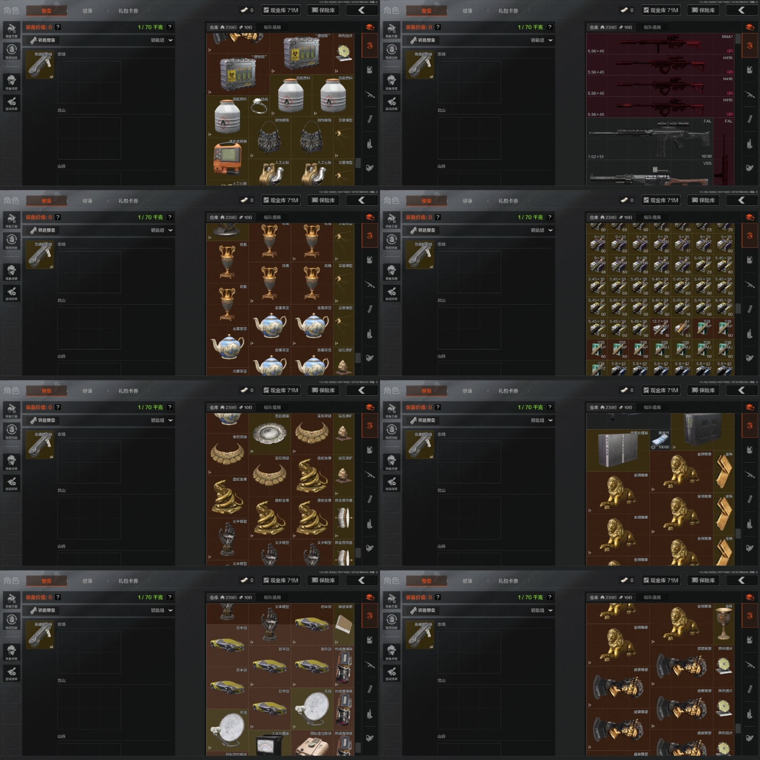 FY5617,总资产:140m,近战武器:来战·开山刀,角色装扮(紫):金狮护身·转运套装,野狩骑士套装,王国卫队礼装,都市夜影套装,金色枪皮:告丧夜曲·AR57,浮麟影青·QBZ192,旧王圣谕·VSS,紫色枪皮:棱光裂变·AKM,竞技·MDR,雪山之王·F2000,典礼武备·Groza,利齿风暴·T03,雪原凌锋·SVDS,鱼跃丹青·M110,大金:金狮子,盛宴雕像,古董茶壶,盘蛇金像,保险箱