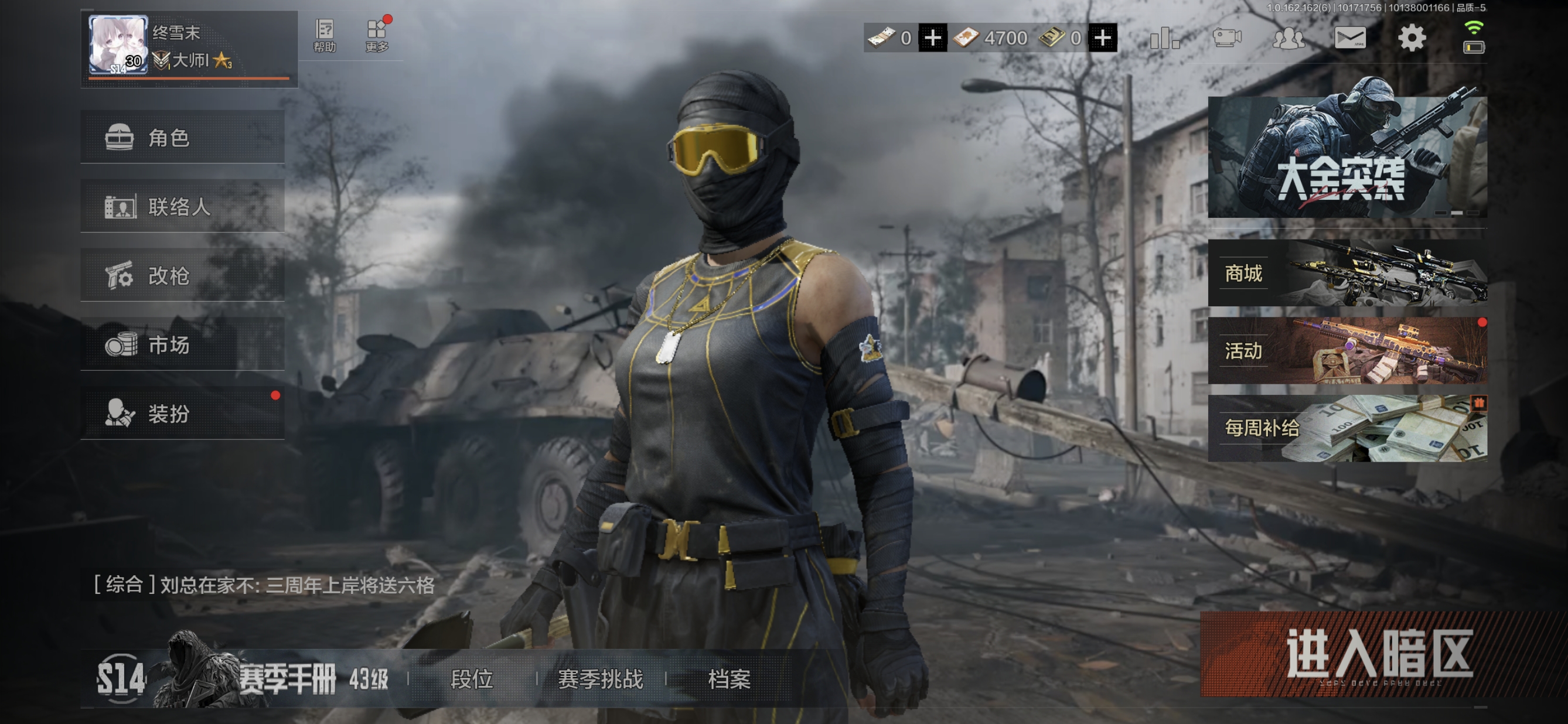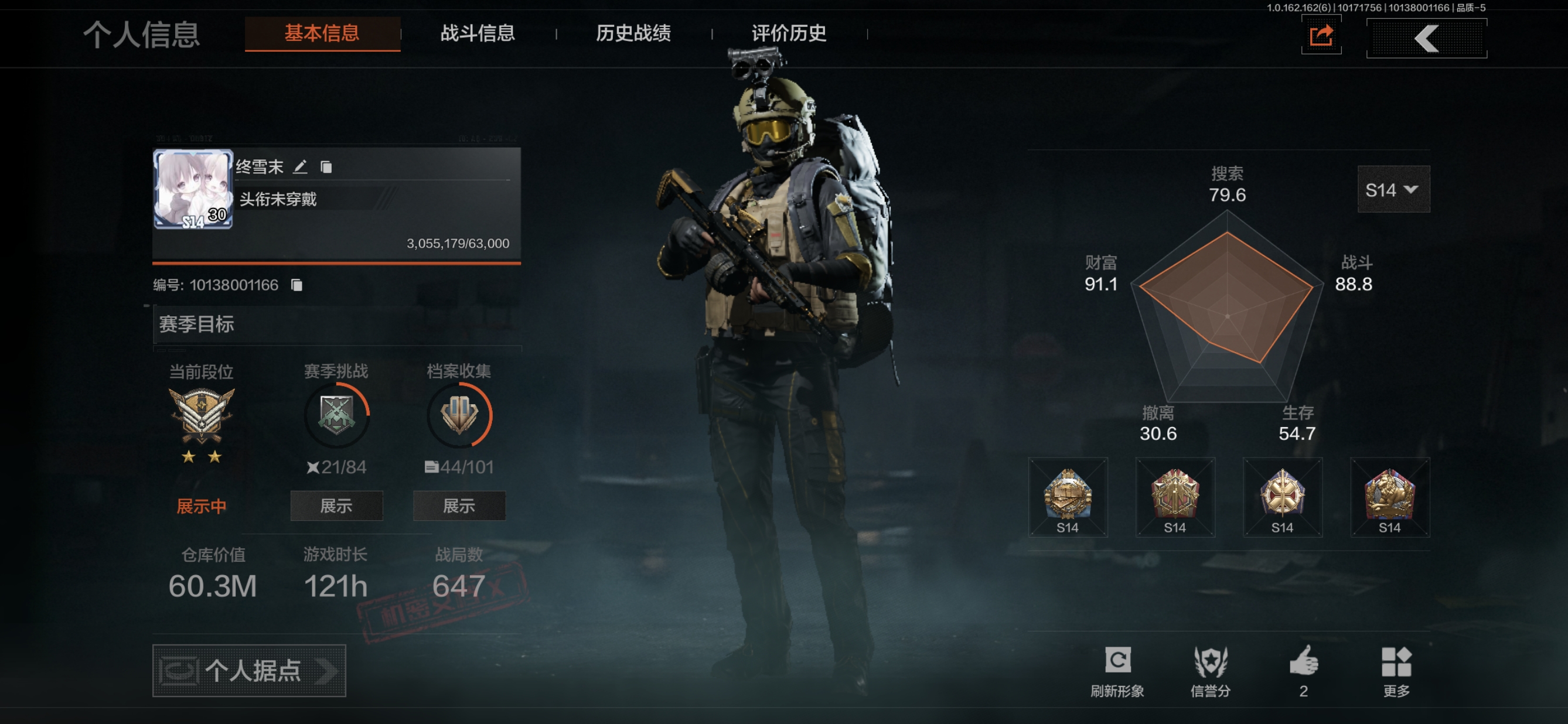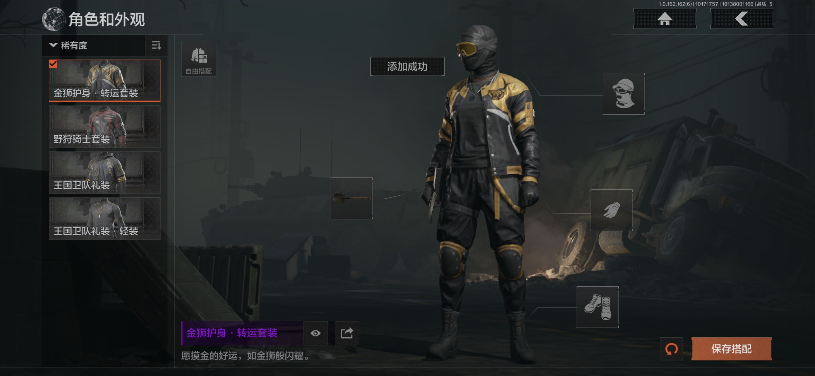 暗区突围【安卓QQ】FY5621,总资产:60.3m,近战武器:工兵铲,角色装扮(紫):金狮护身·转运套装,野狩骑士套装