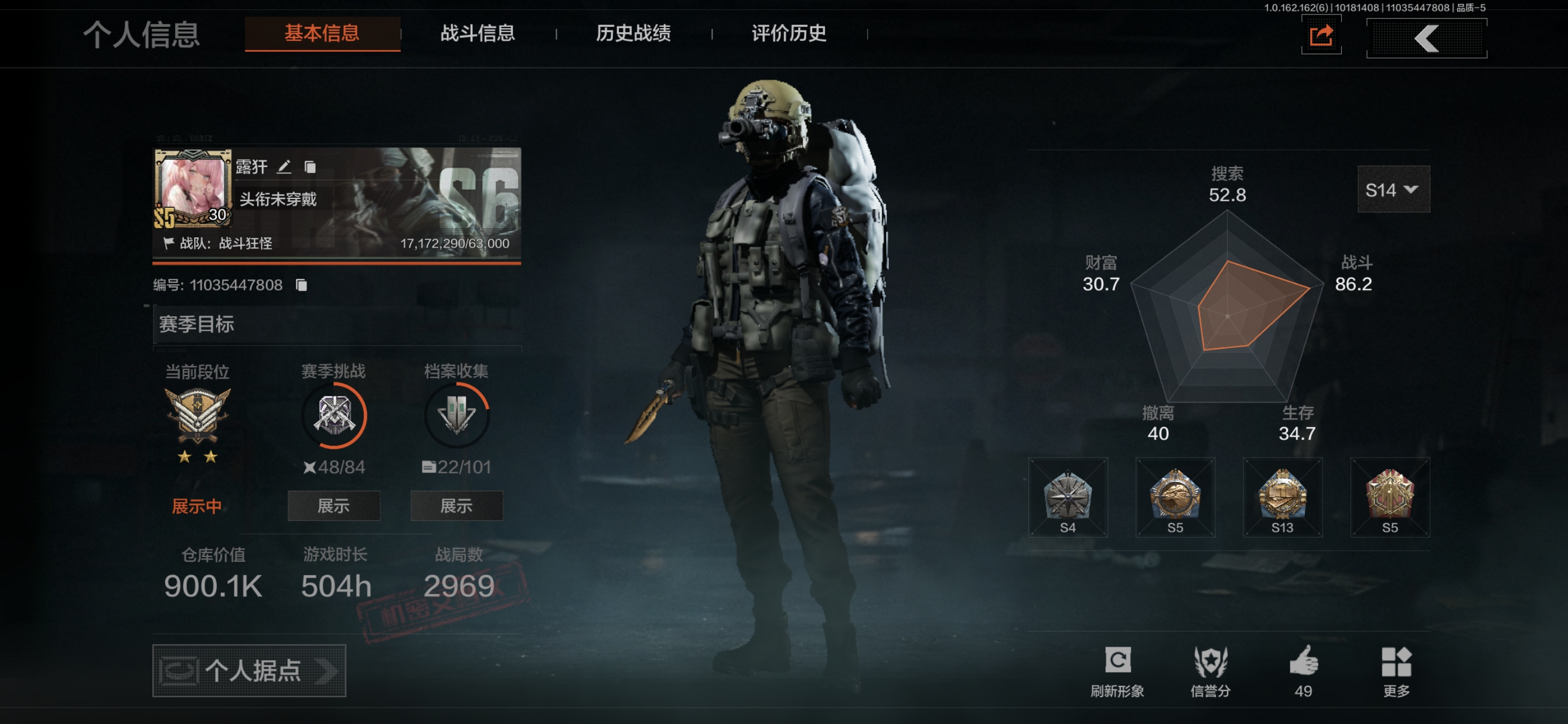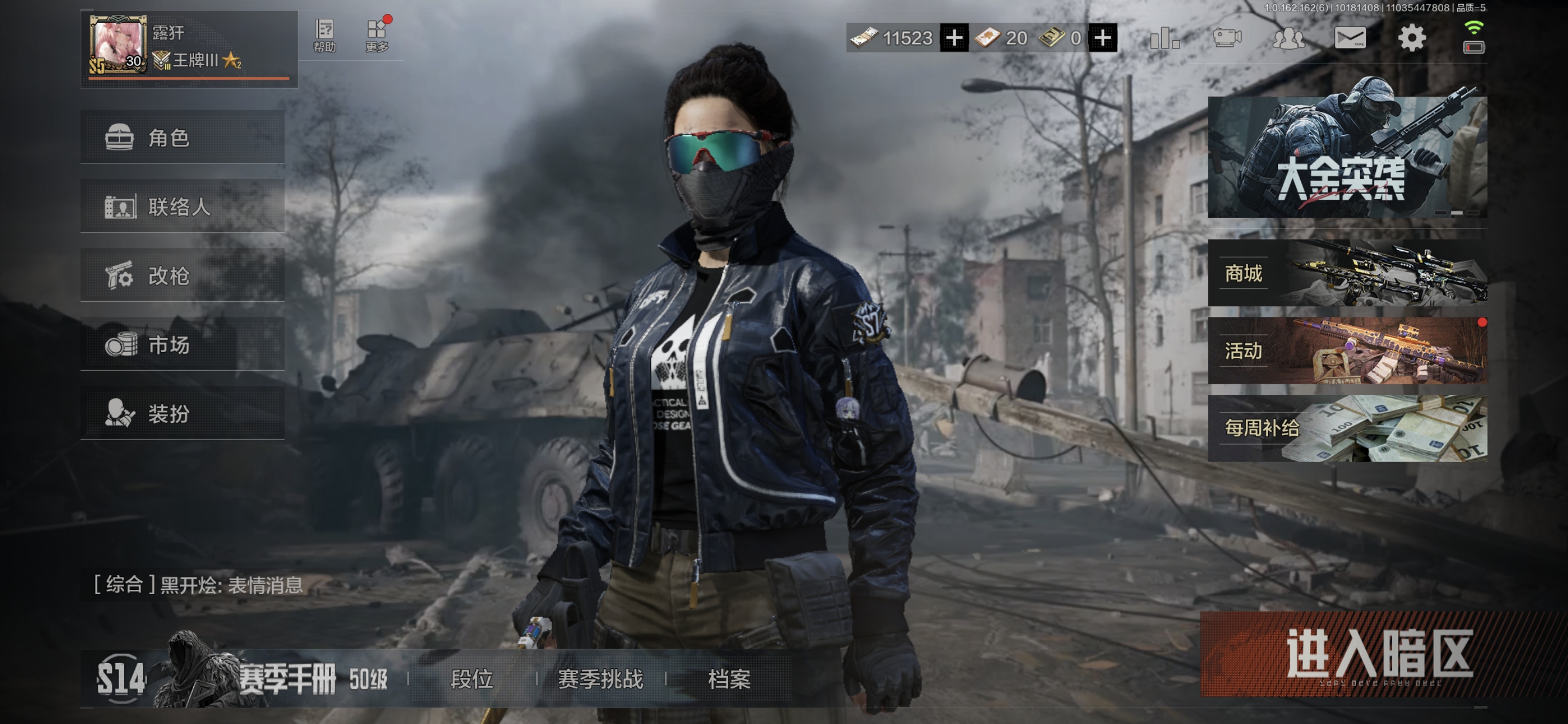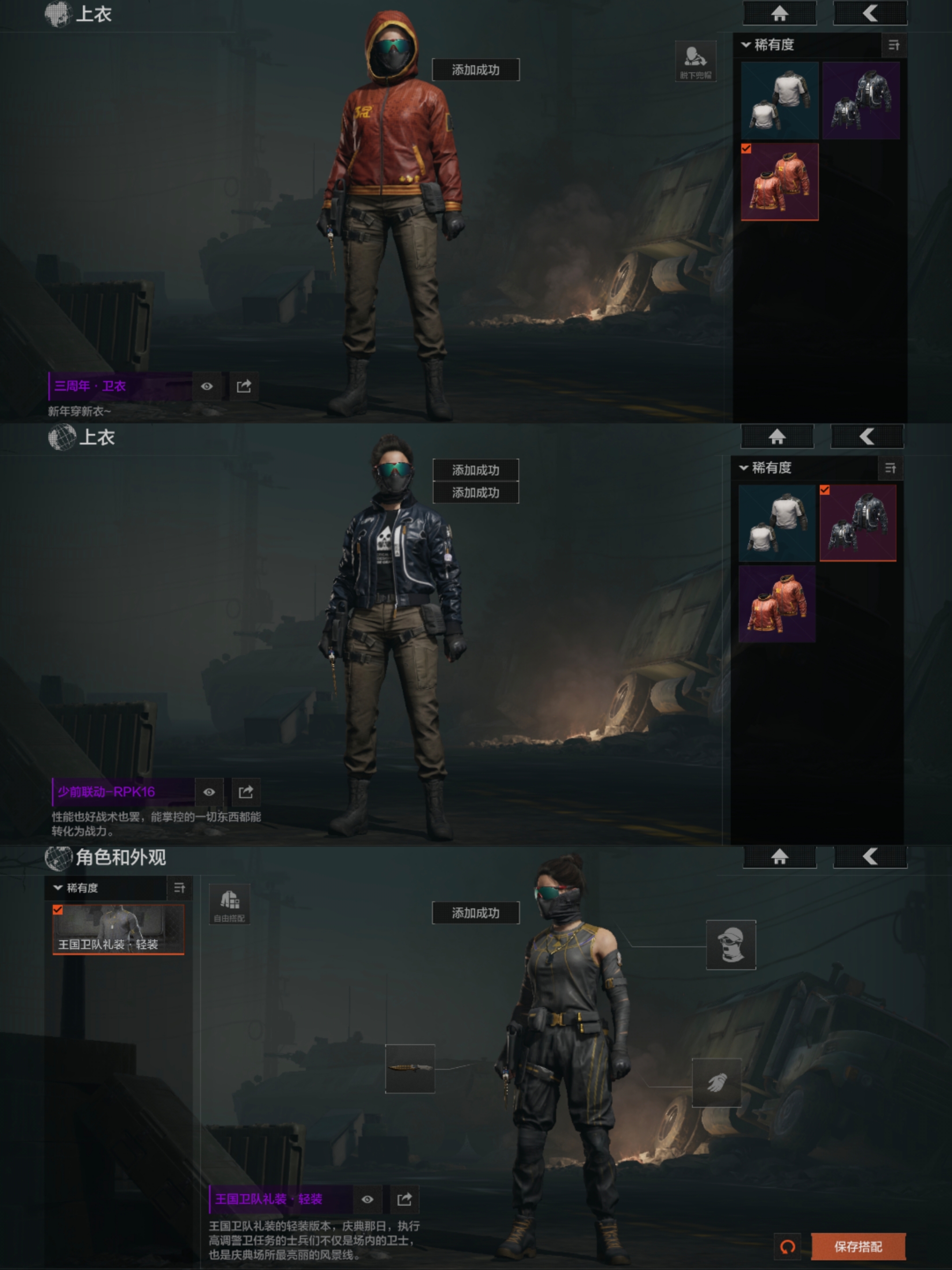 暗区突围【安卓QQ】FY5622,近战武器:赢家匕首,角色装扮(紫):三周年卫衣,少前联动-RPK16,王国卫队礼装,金