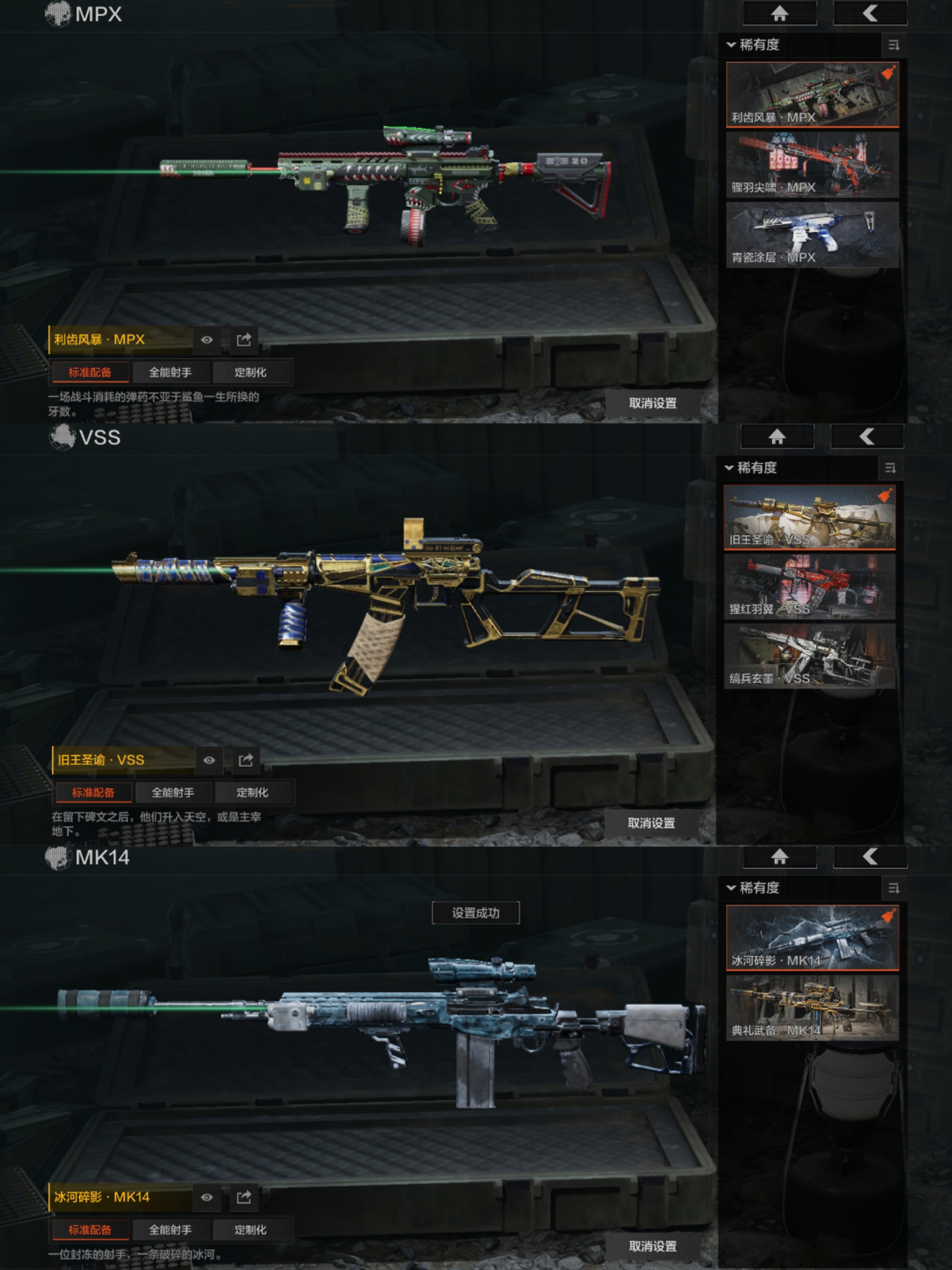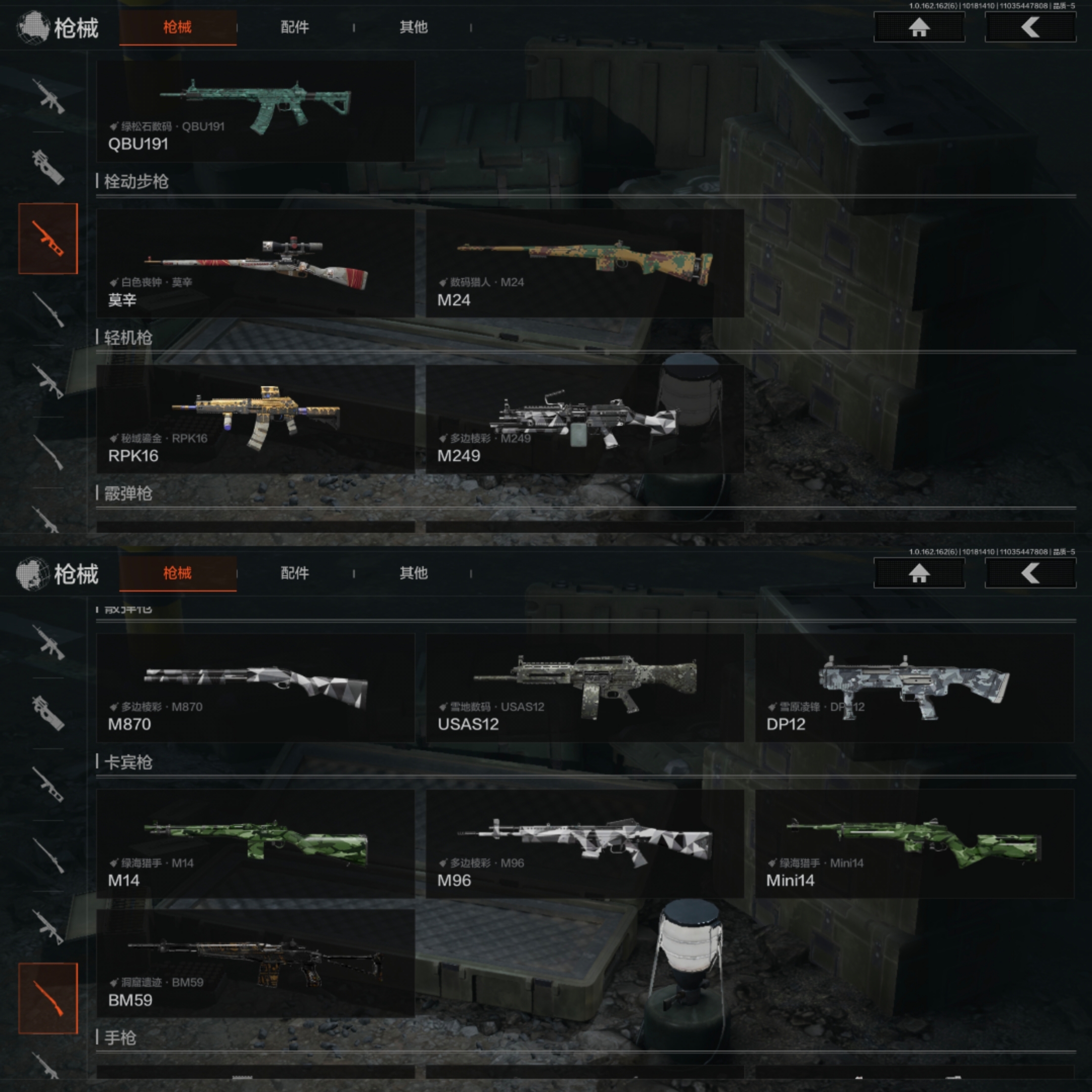 FY5622,近战武器:赢家匕首,角色装扮(紫):三周年卫衣,少前联动-RPK16,王国卫队礼装,金色枪皮:利齿风暴·MPX,旧王圣谕·VSS,冰河碎影·MK14,紫色枪皮:棱光裂变·AKM,火力倾泻·AUG,湖冰倒影·ACE31,湖冰倒影·MP5,黑金国际·M4A1,棱光裂变·AK102,典礼武备·Groza,安卓Q区实名:可修改