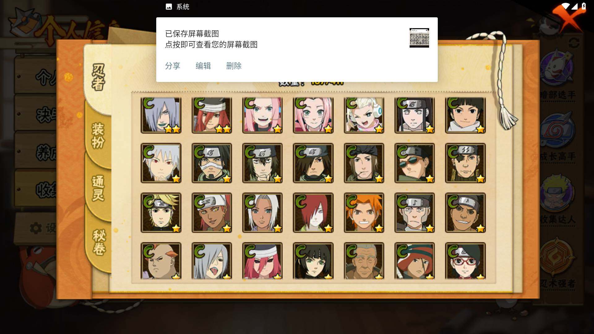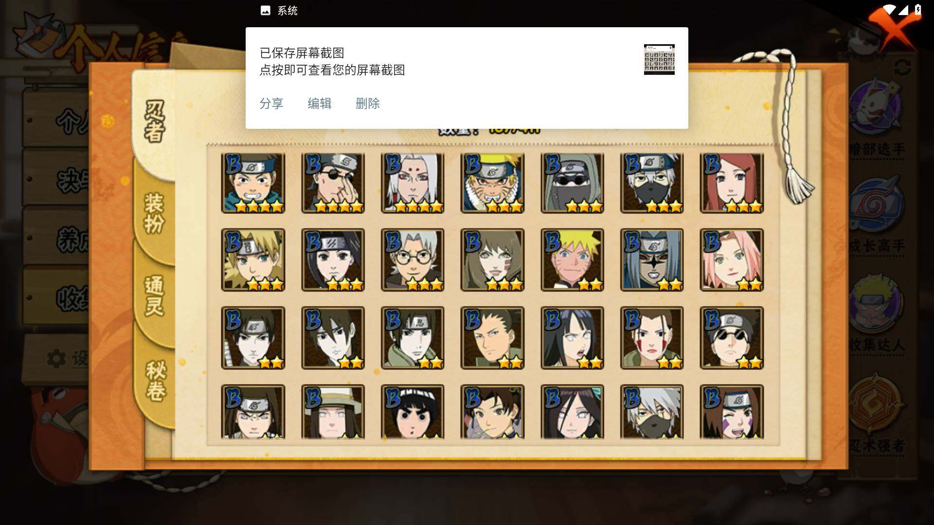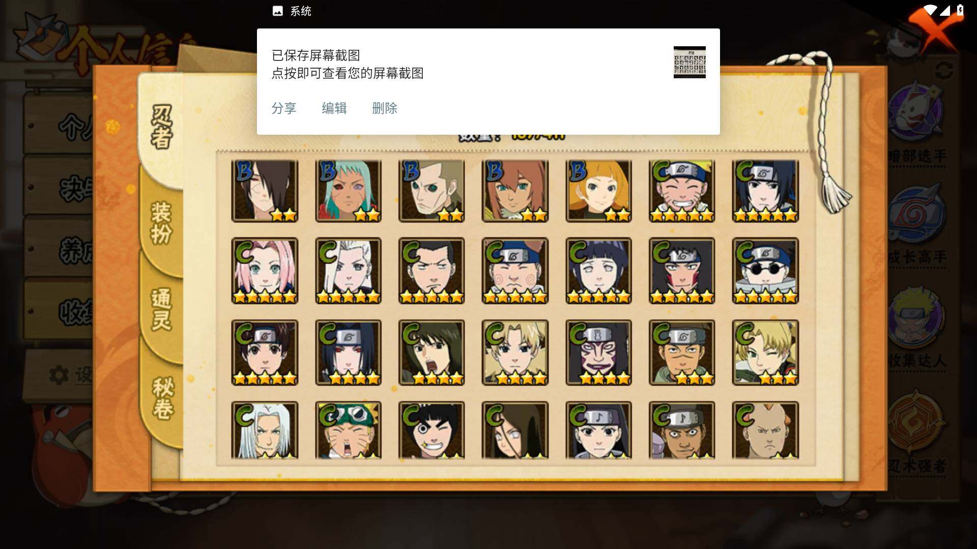 【S级忍者】:宇智波鼬「须佐能乎」(3星),自来也「舞之豪杰」(3星),大蛇丸(3星),自来也「传说中的三忍」(3星),波风水门(3星),漩涡鸣人「九喇嘛连结」(3星),佩恩「天道」(3星),宇智波佐助「永恒万花筒」(3星),宇智波斑 「白面具」(3星宇智波斑「白面具」)