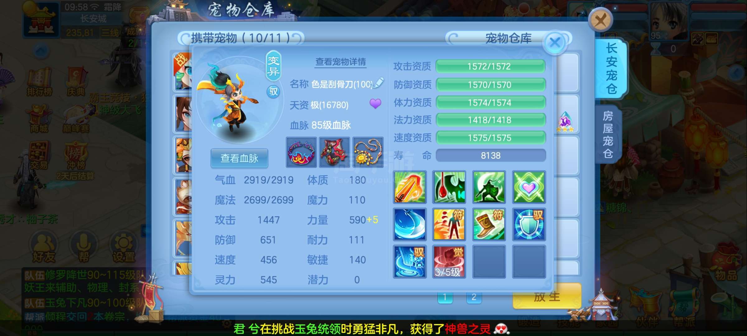 幻唐志:逍遥外传(神武4)【安卓官方】半新区跟等级卡95,内丹神,装备成品