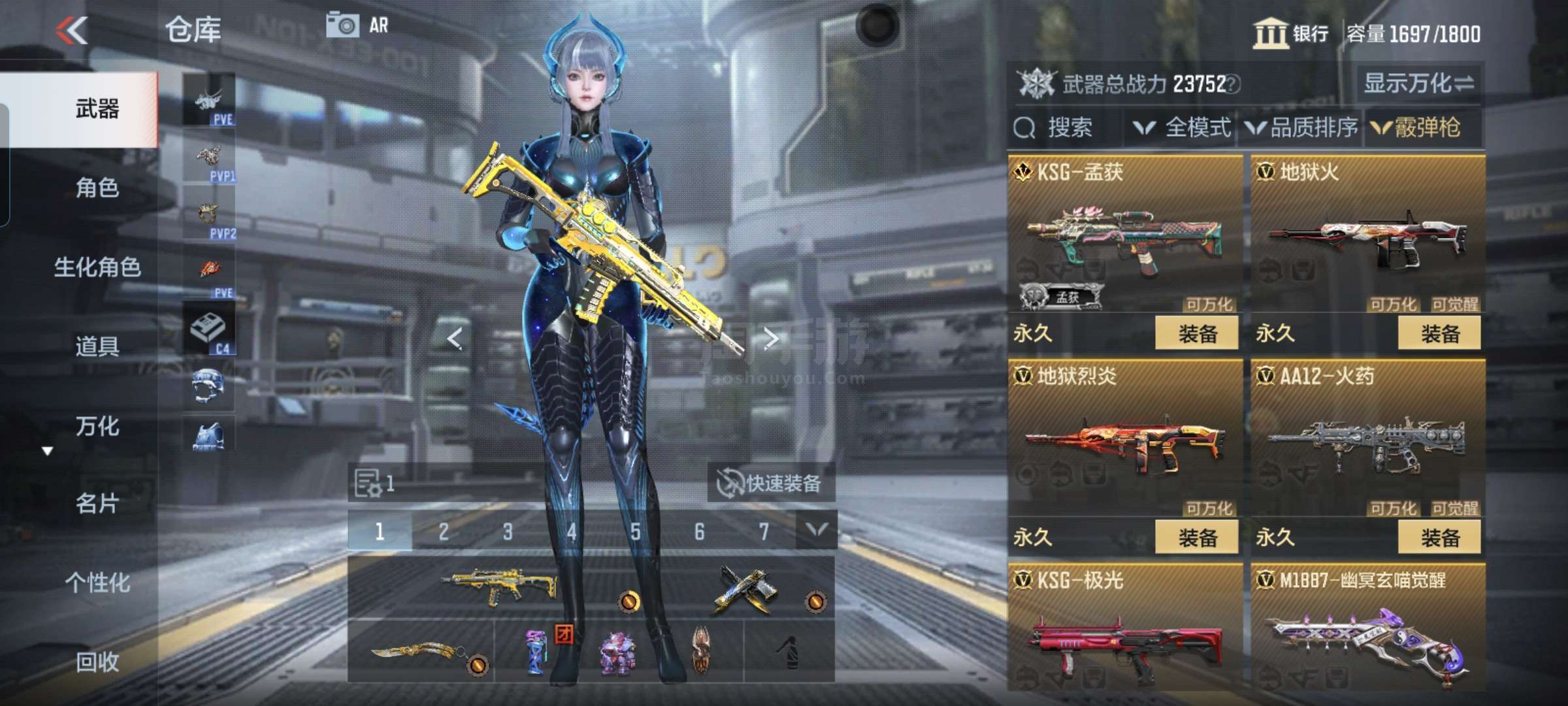 王者之心王影王誉AN94盖天公孟获7极光qbz191帝皇铠甲双管猎枪极光盾仲达手枪usp仲康8把屠龙