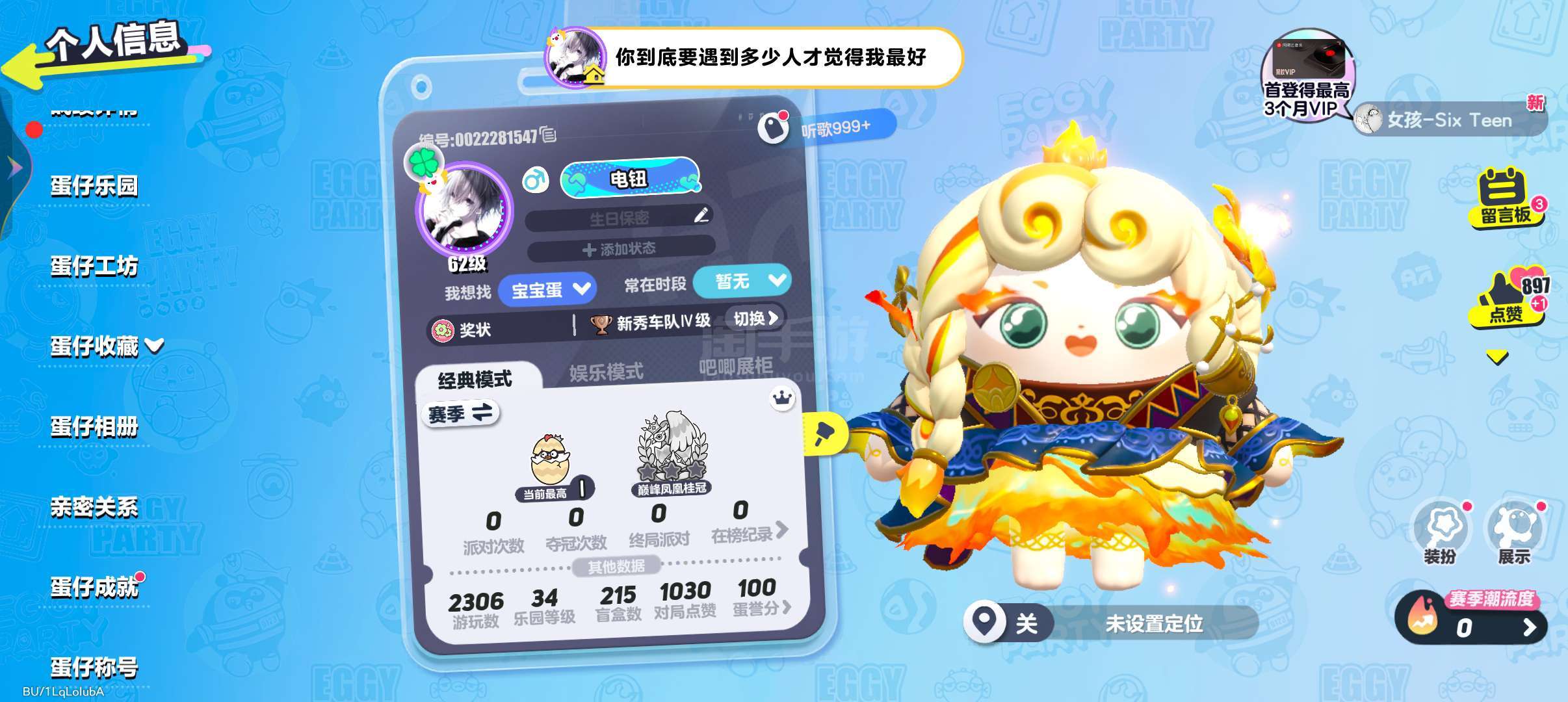 蛋仔派对【安卓vivo】10至臻小羊双豆,二字ID,氪条六千七