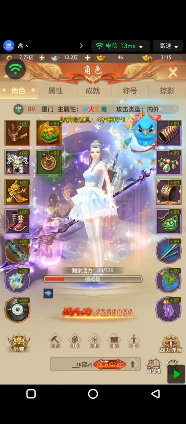 幻化多,衣服多,坐骑多,有重楼链,9星仙镜子。材料也多。便宜出了。