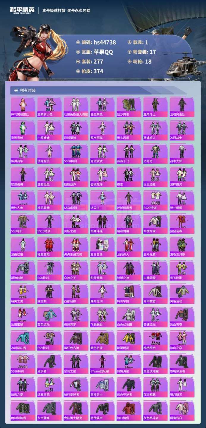 hs44738 苹果手Q-20王牌印记-有战神框-17粉装-18特效枪-1载具-134316热力值-