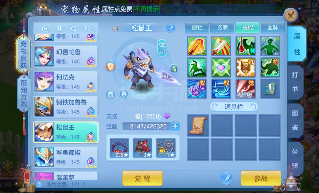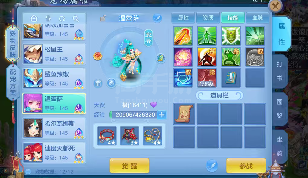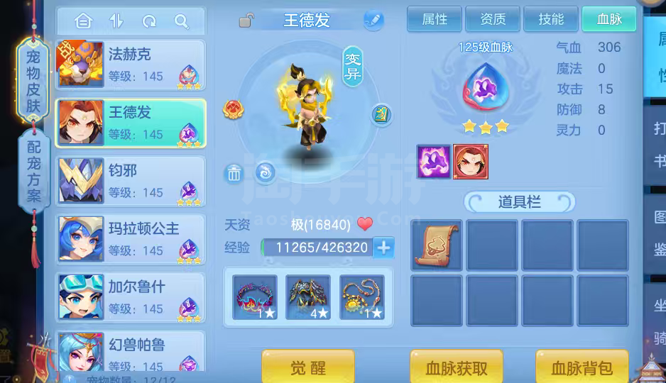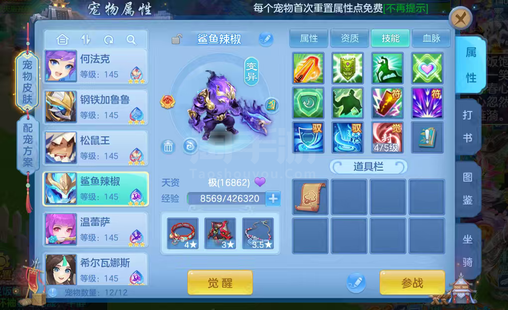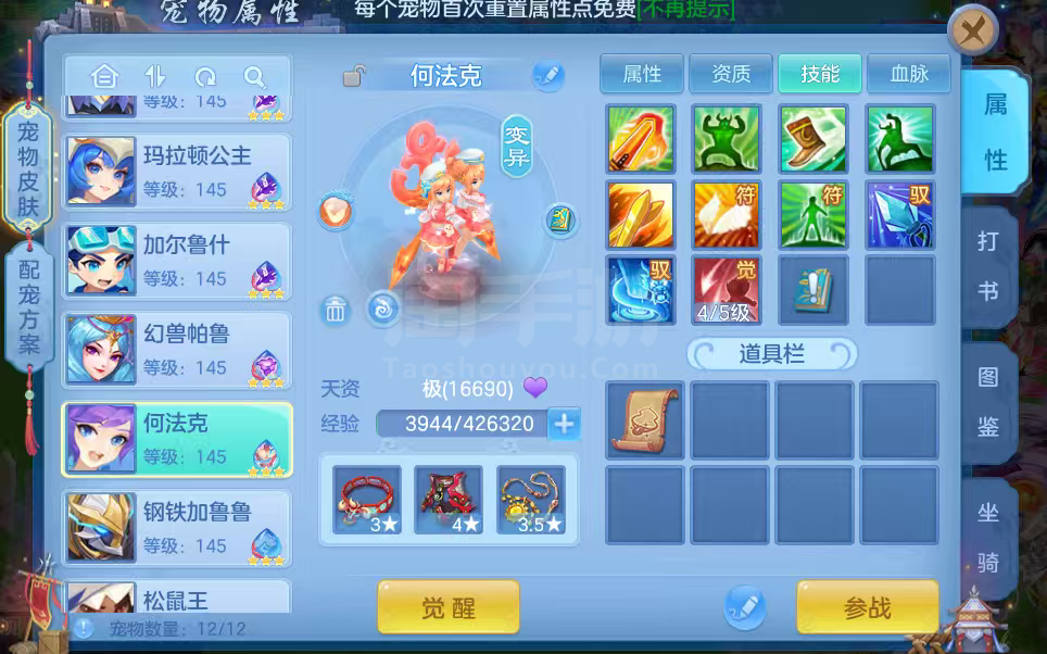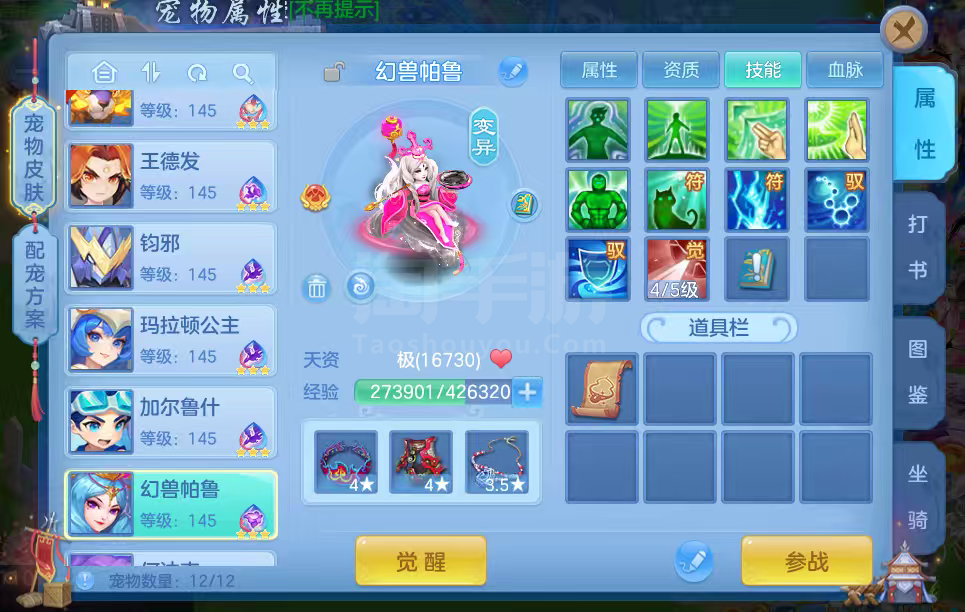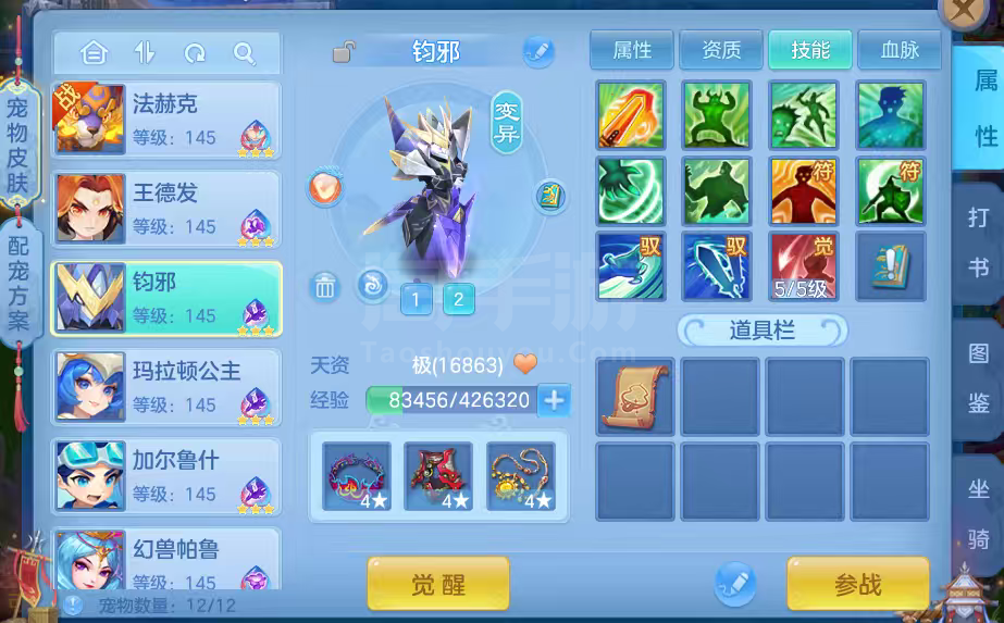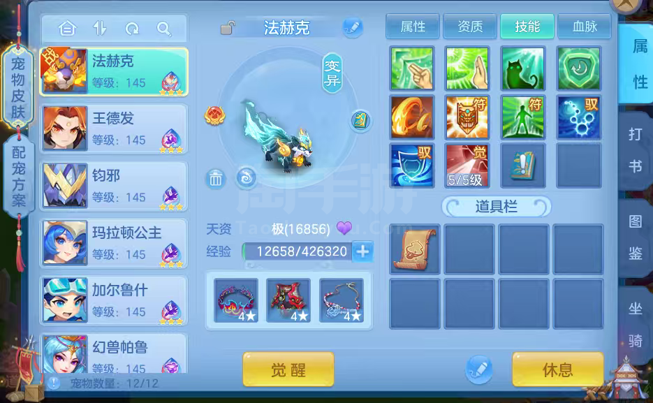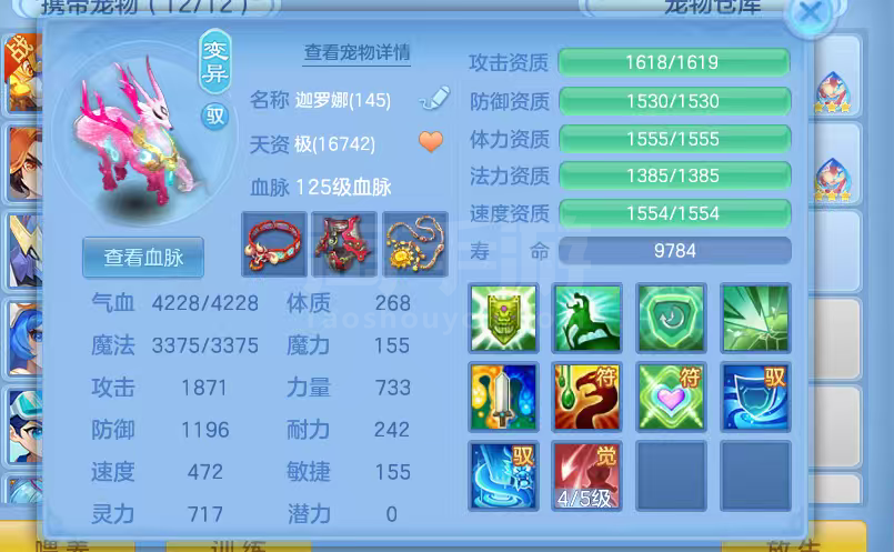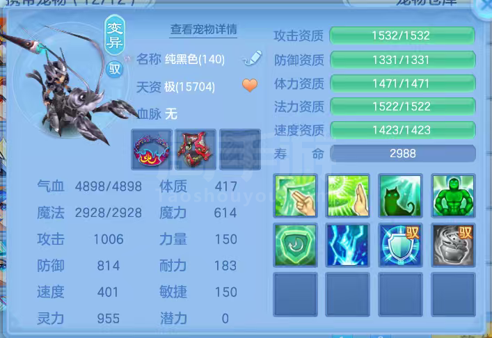 16只变异宝宝应对所有活动任务,还有一身辅住装备,特技全
