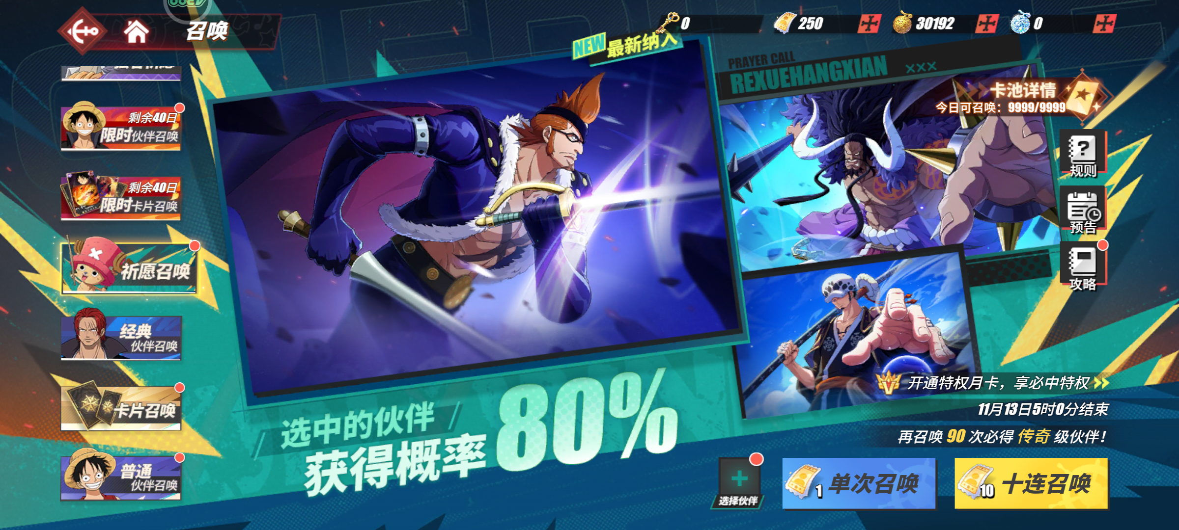 航海王热血航线【安卓4399】7传奇 100高召 1w金,有鬼路,连造,凯多,黑足,船长,十字工会老沙