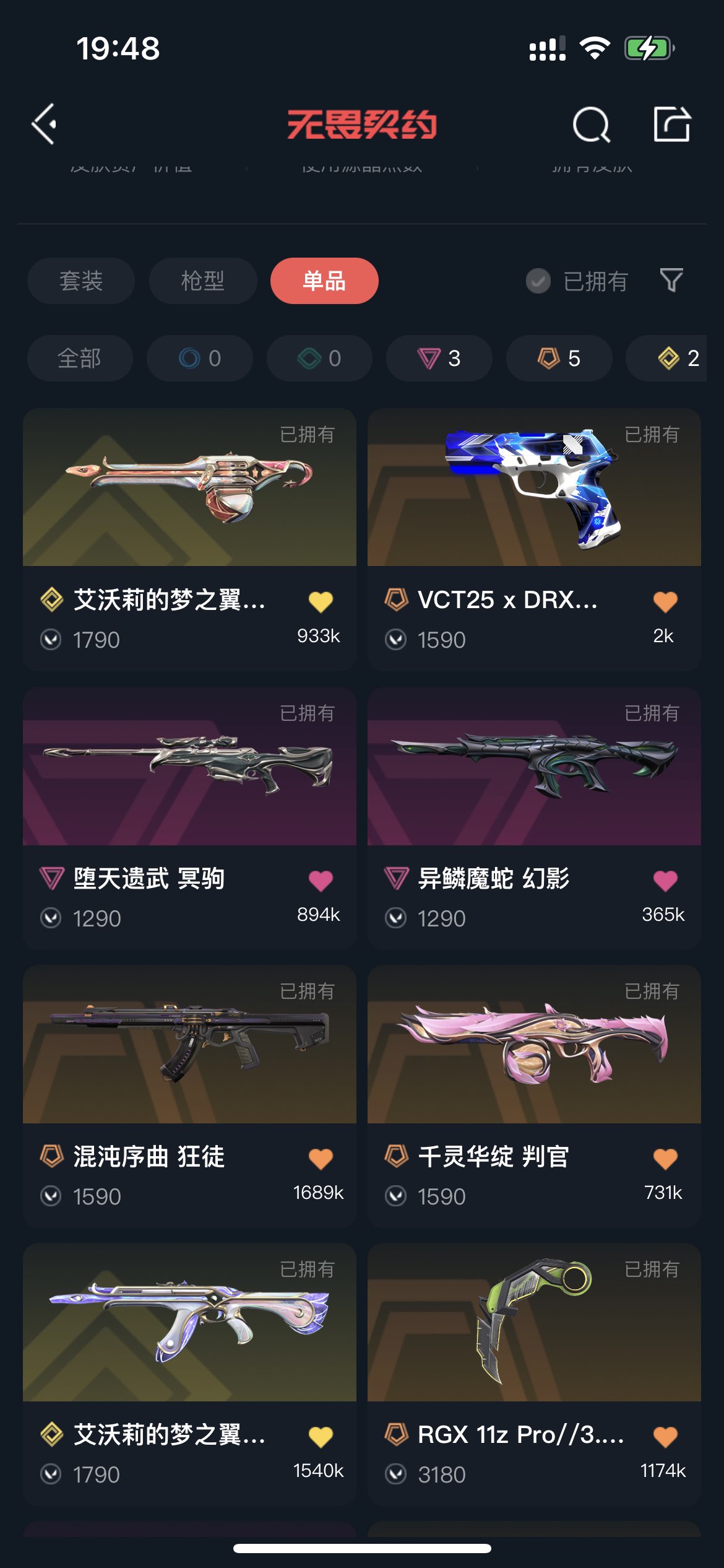 奇点正义,盖亚混沌喵喵ak;魔蛇幻影;堕天大狙;显卡爪刀;莲花大喷;vct标配喵喵奥丁主流皮肤齐全。