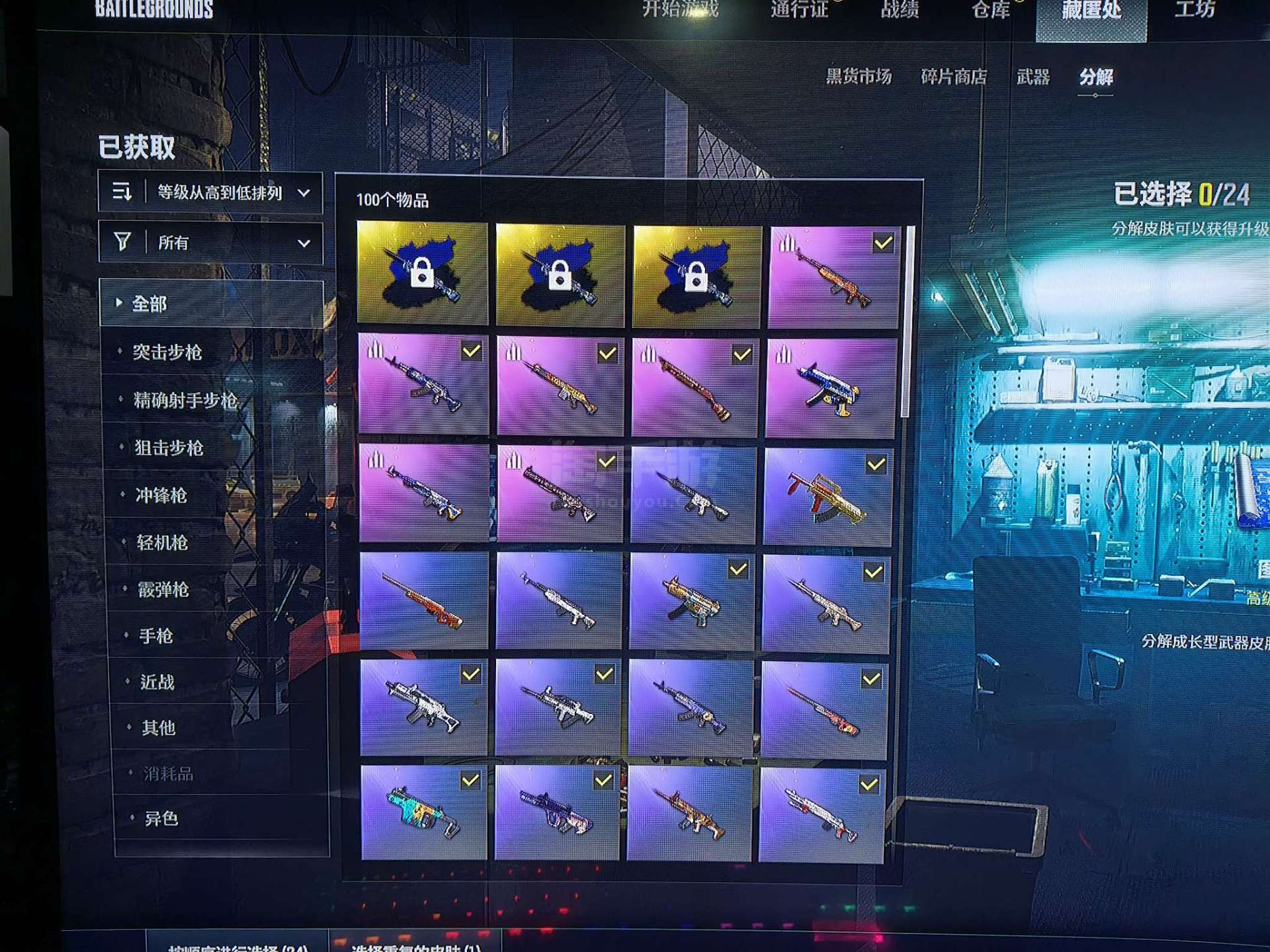 绝地求生(PUBG)【端游】100个枪皮,三异色,三车皮