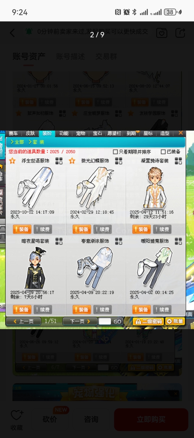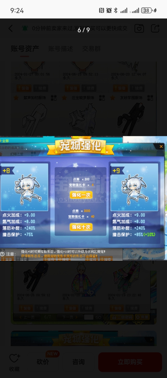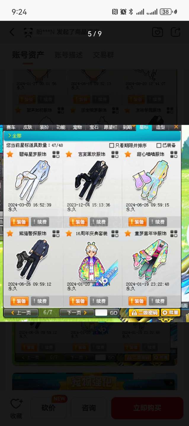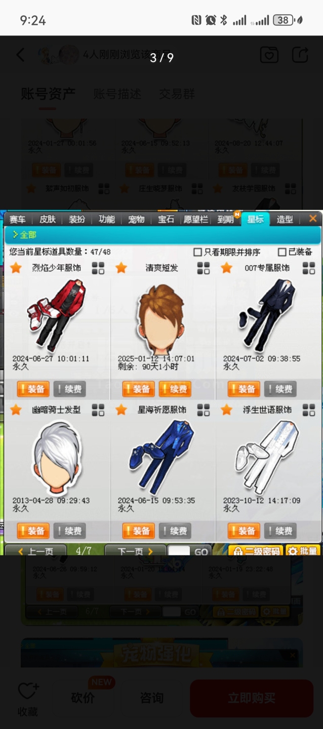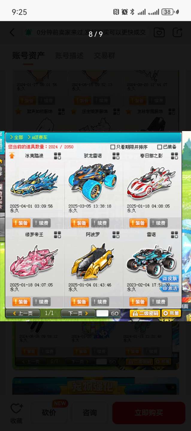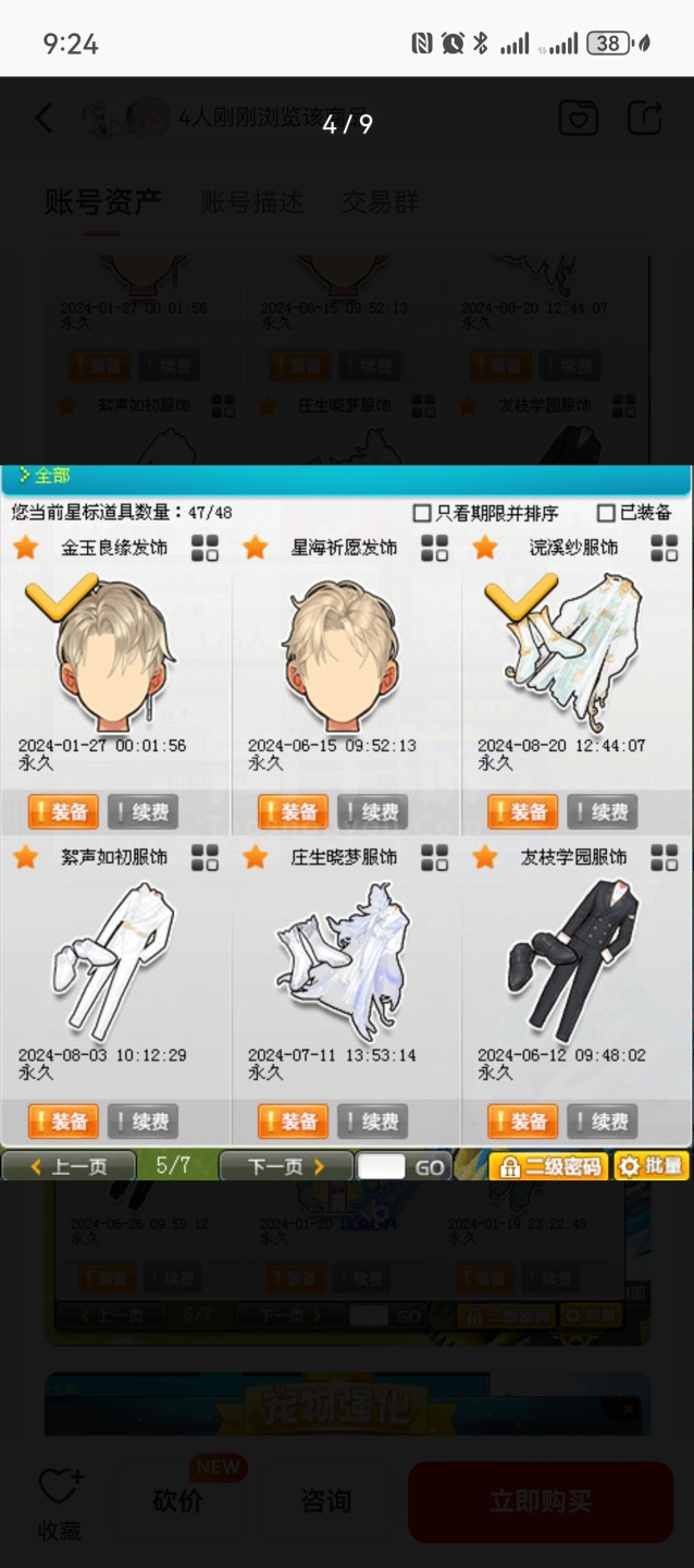 通过App,与卖家商议价格及保险,并向卖家索要账号最新截图,确认后下单购买。