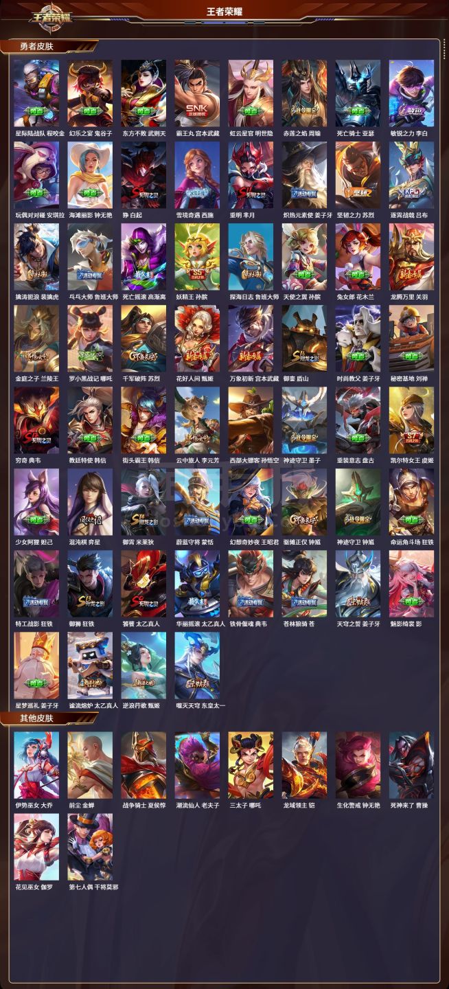 苹果QQ/至尊星耀/253皮肤/124英雄/1典藏/0珍品无双/1无双/0珍品传说/20传说/69史
