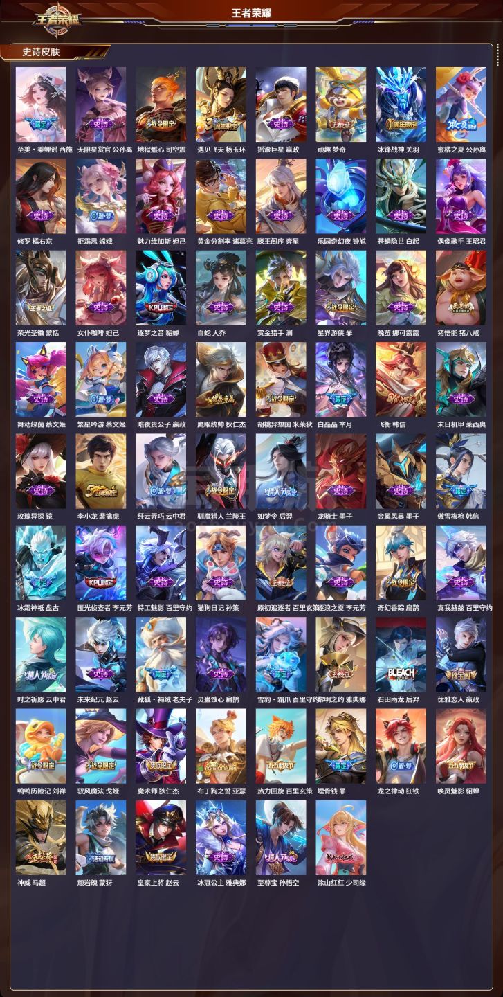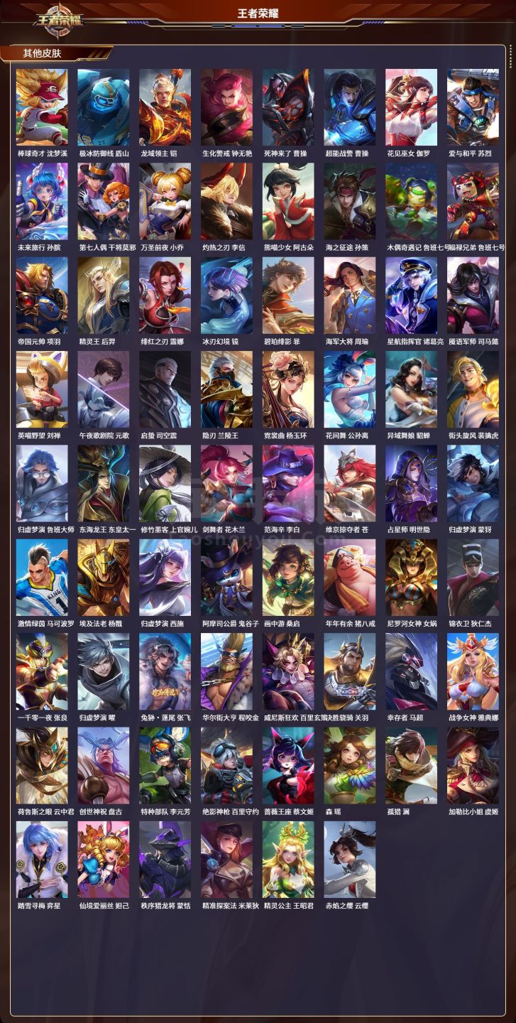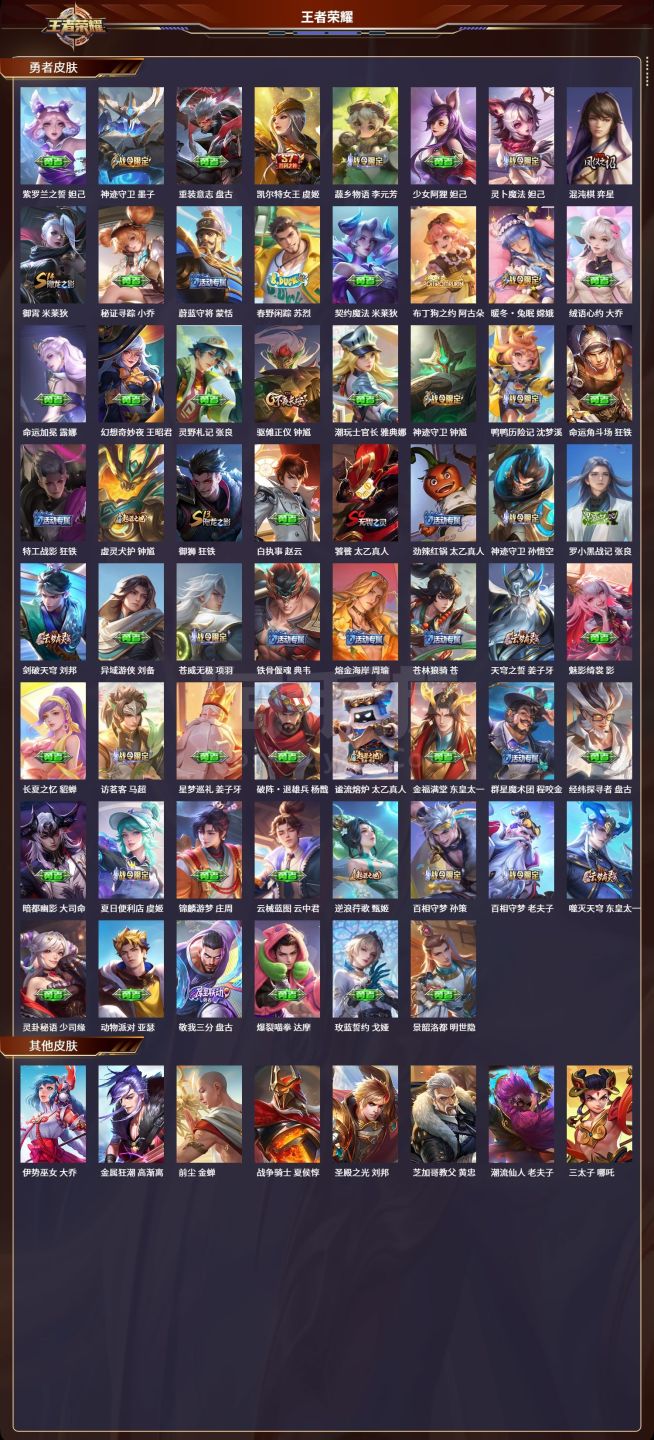 安卓QQ/最强王者/563皮肤/128英雄/5典藏/0珍品无双/5无双/5珍品传说/90传说/183