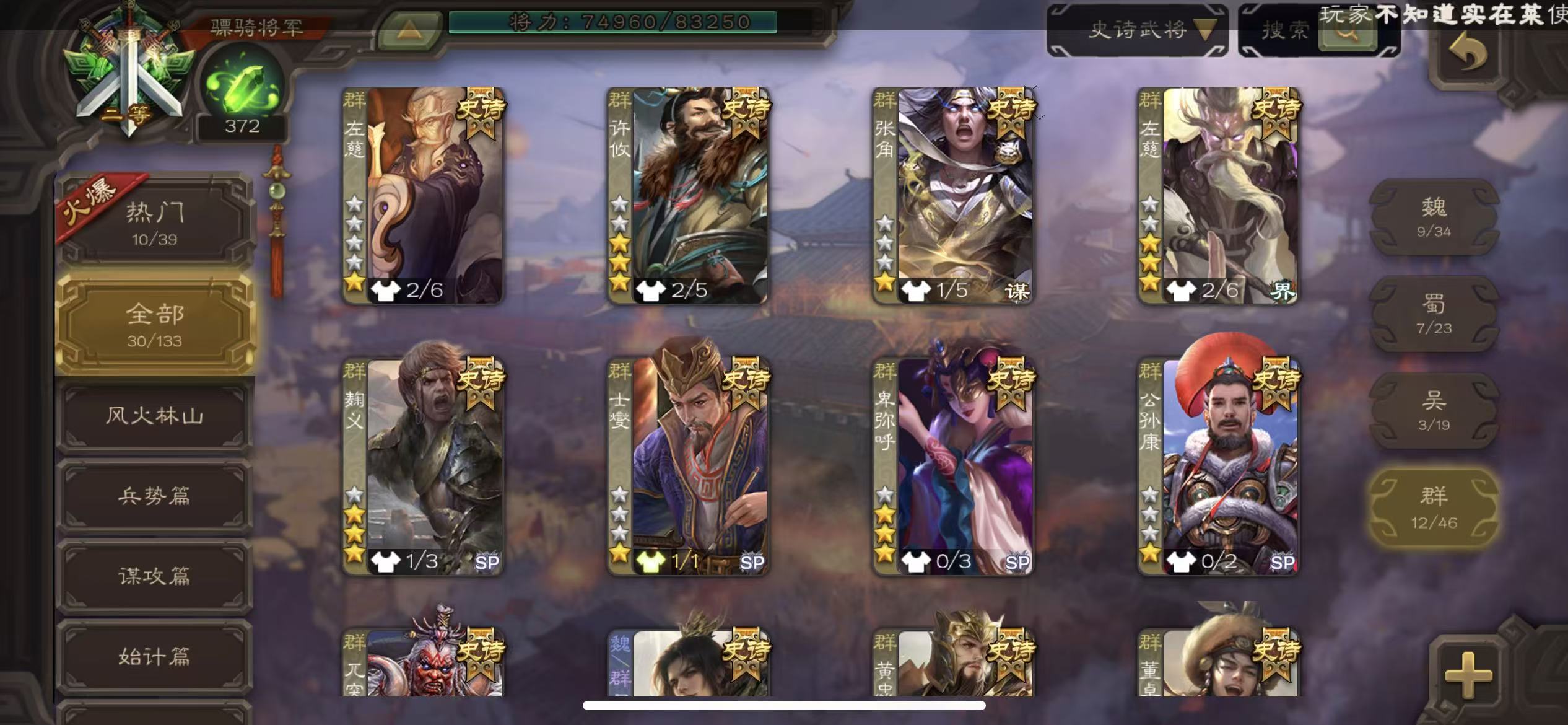 史诗武将数量: