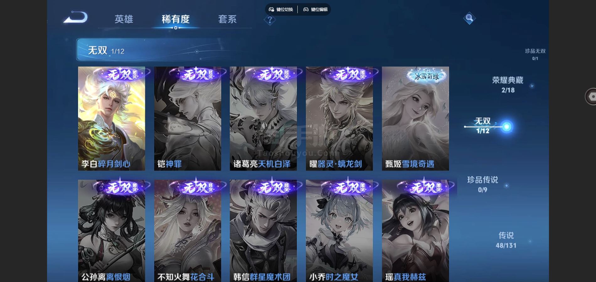 V9-346皮肤2典藏1无双48传说 4星传说玉鸾吟 幽冥之眼 金色仲夏夜 破晓神光 【典藏】 鸣剑