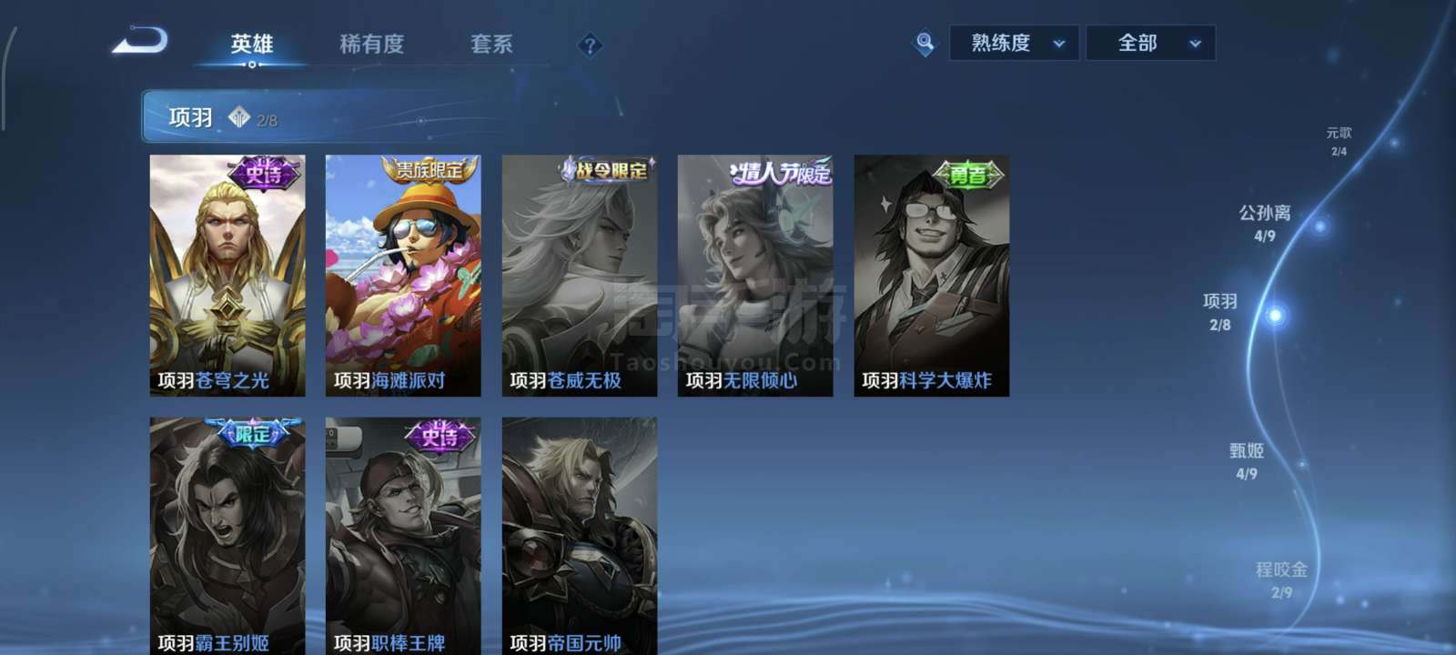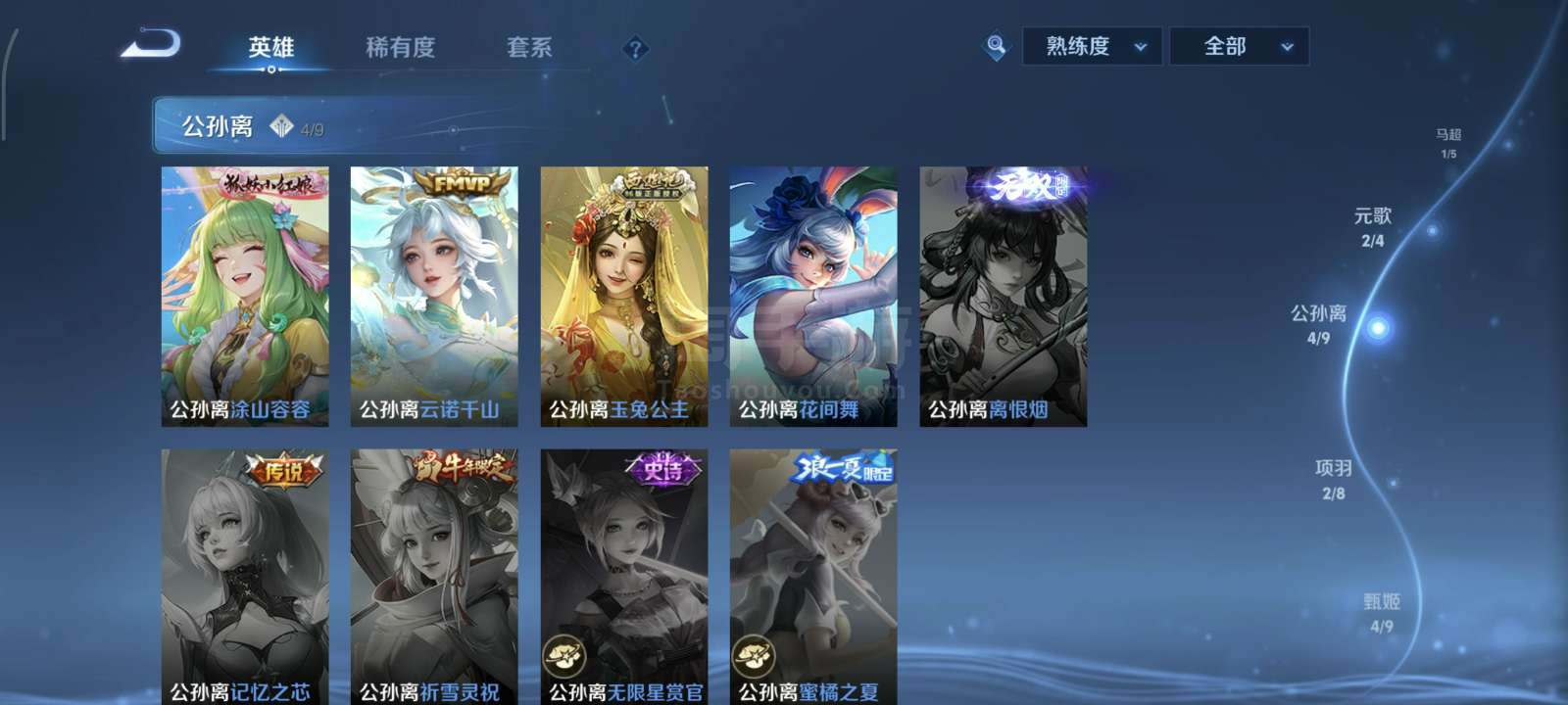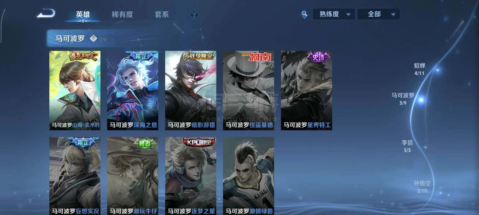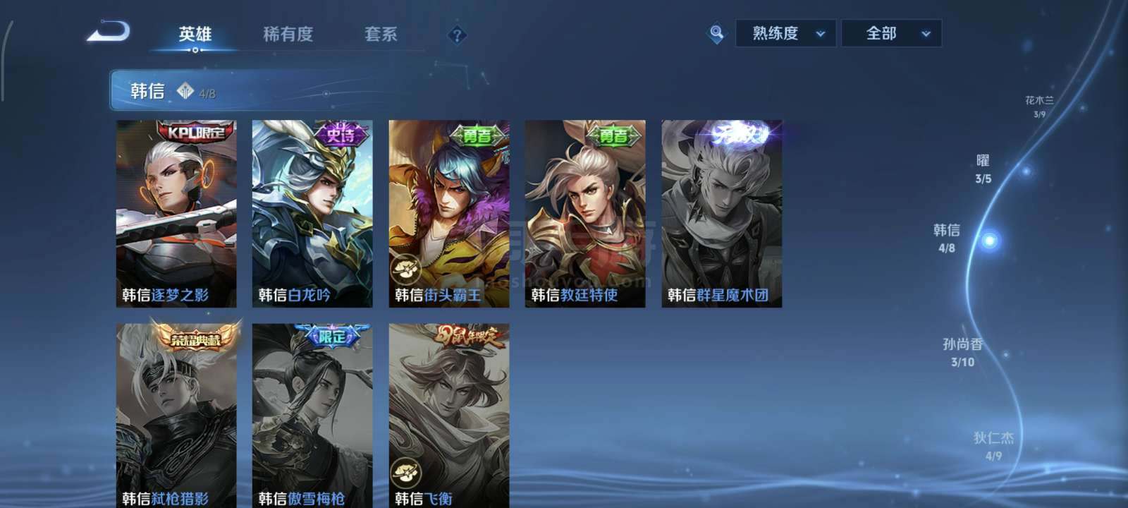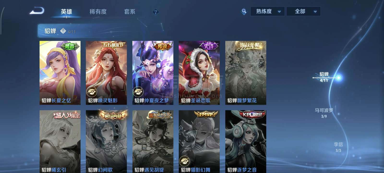 一个花木兰荣耀典藏,有一点稀有皮肤,两个星传说,貂蝉和孙尚香的