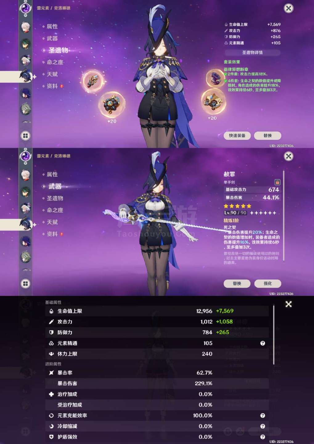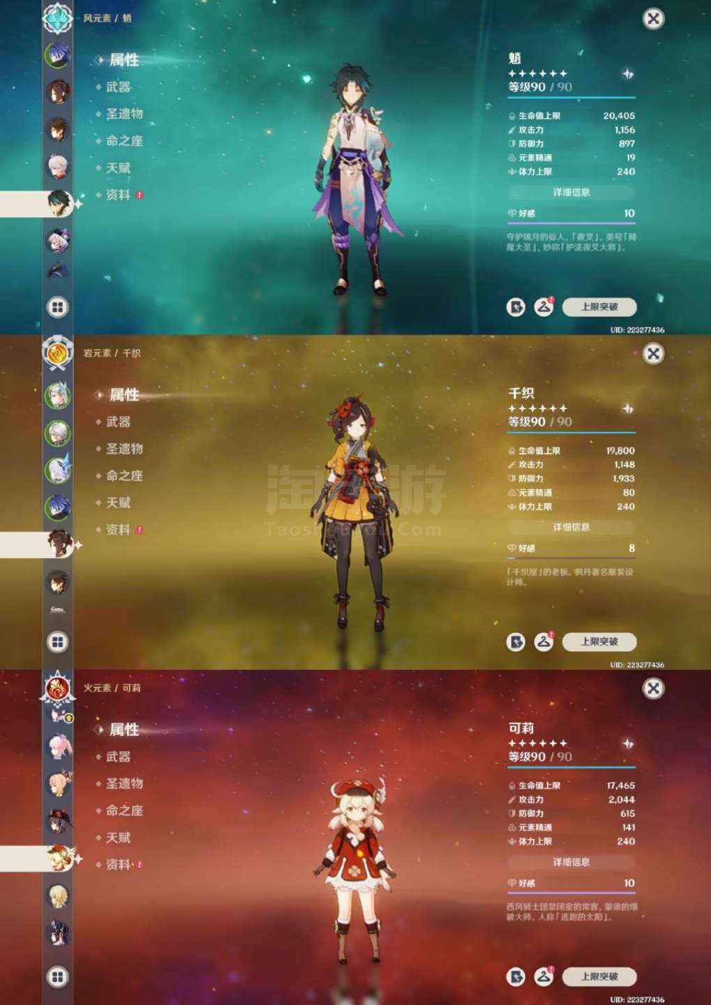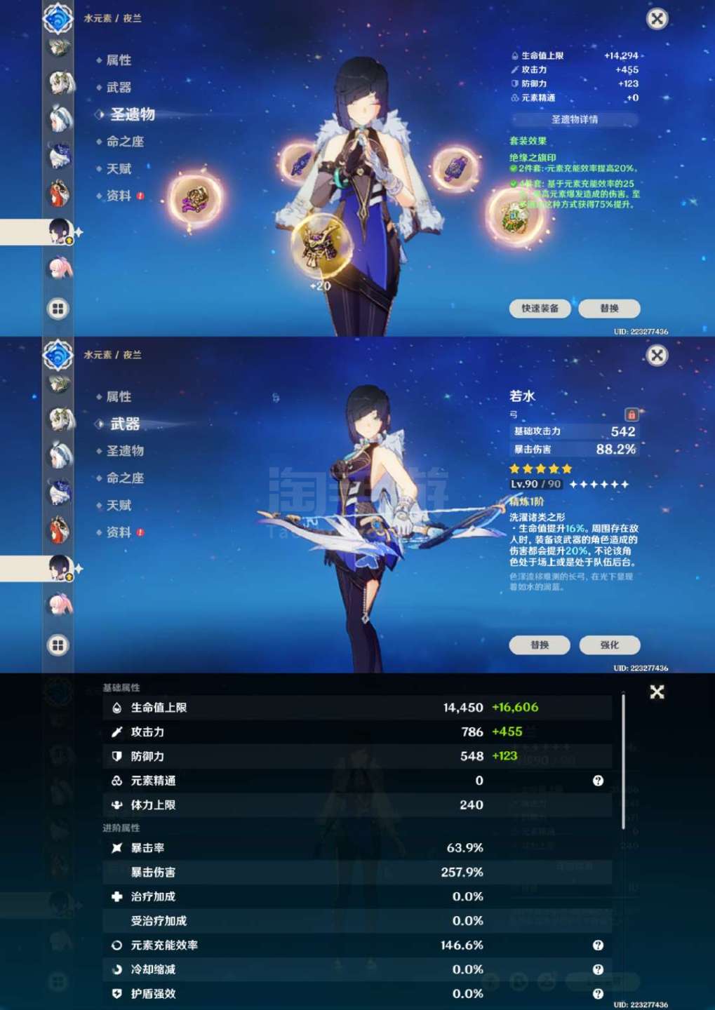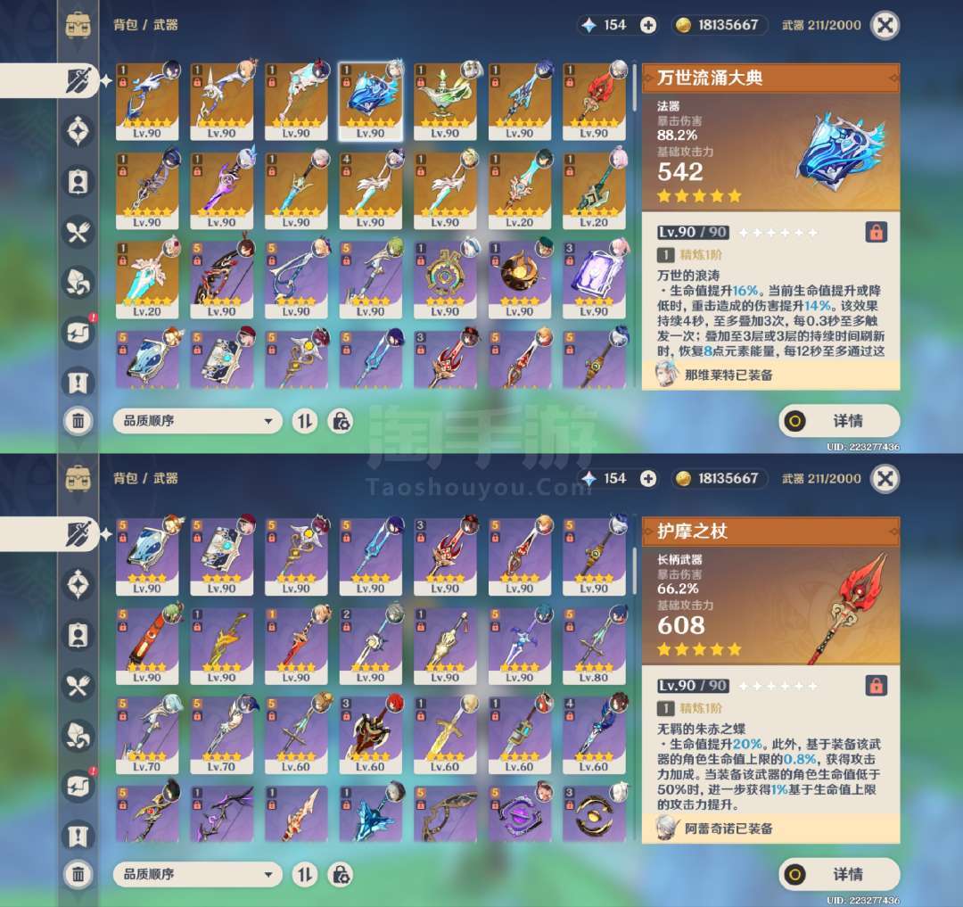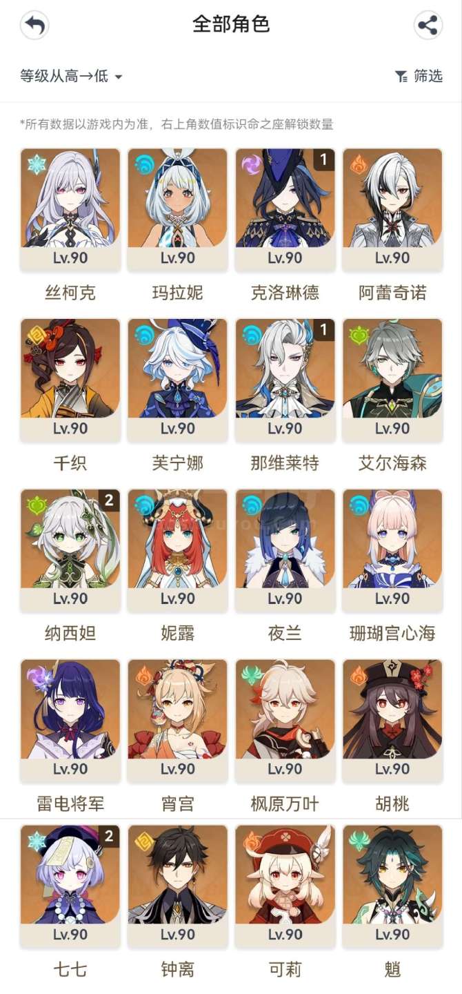 原神【安卓官方】草神2命带专武,龙王克洛琳德1命带专武,夜兰万叶胡桃带专武,具体情况看图,号里专武很多,圣遗物都有