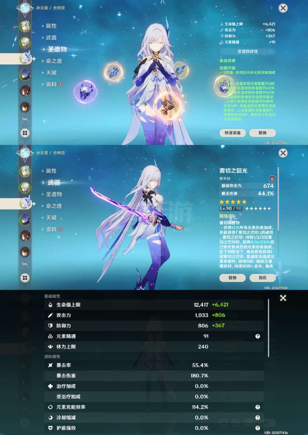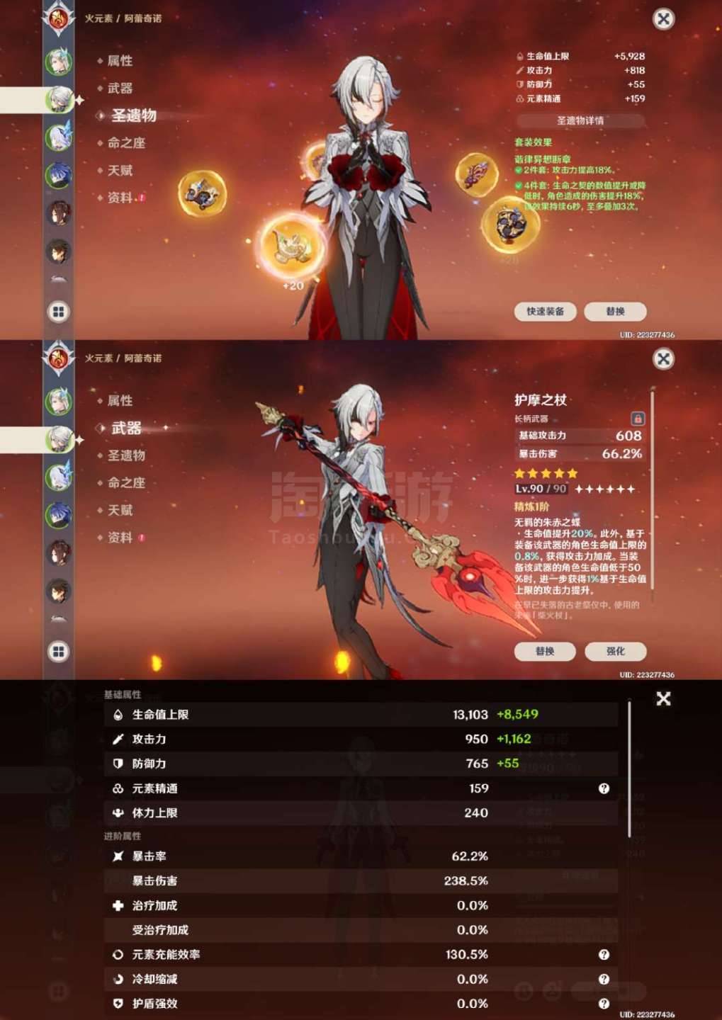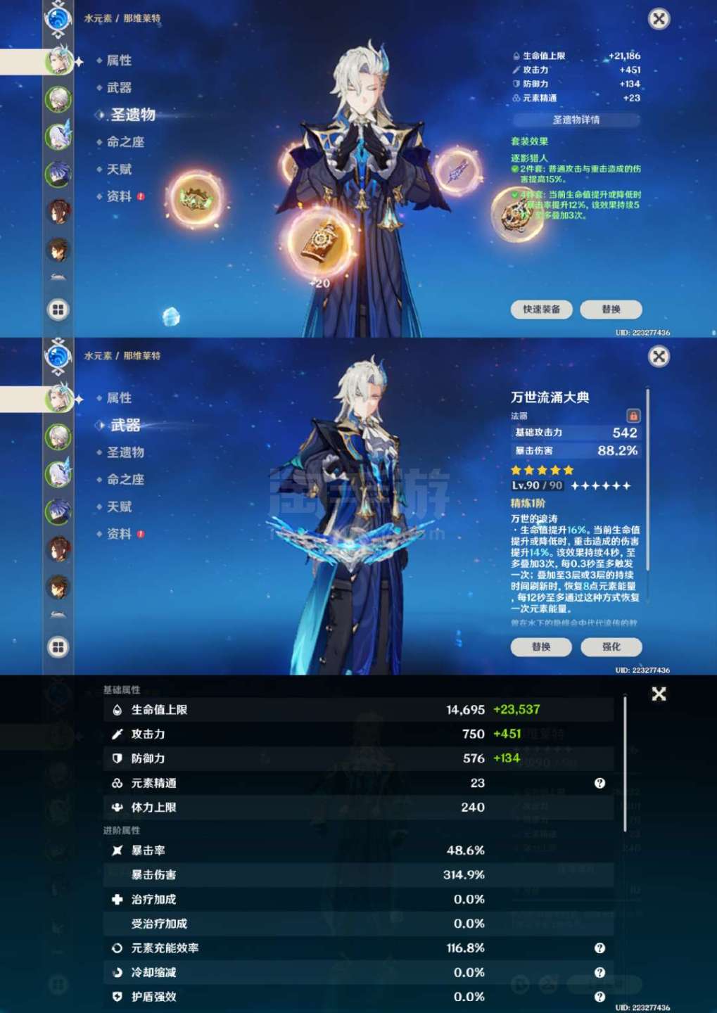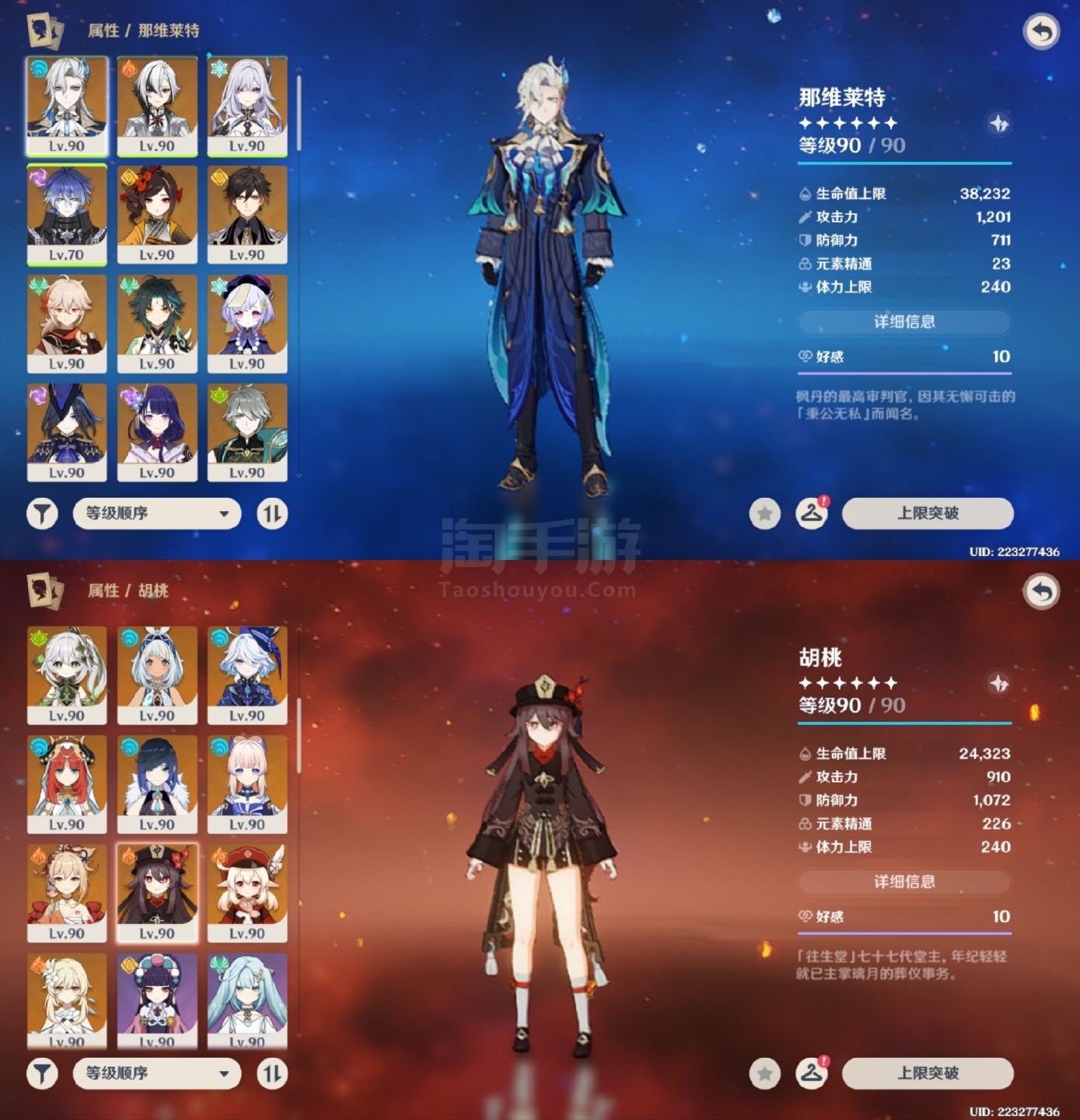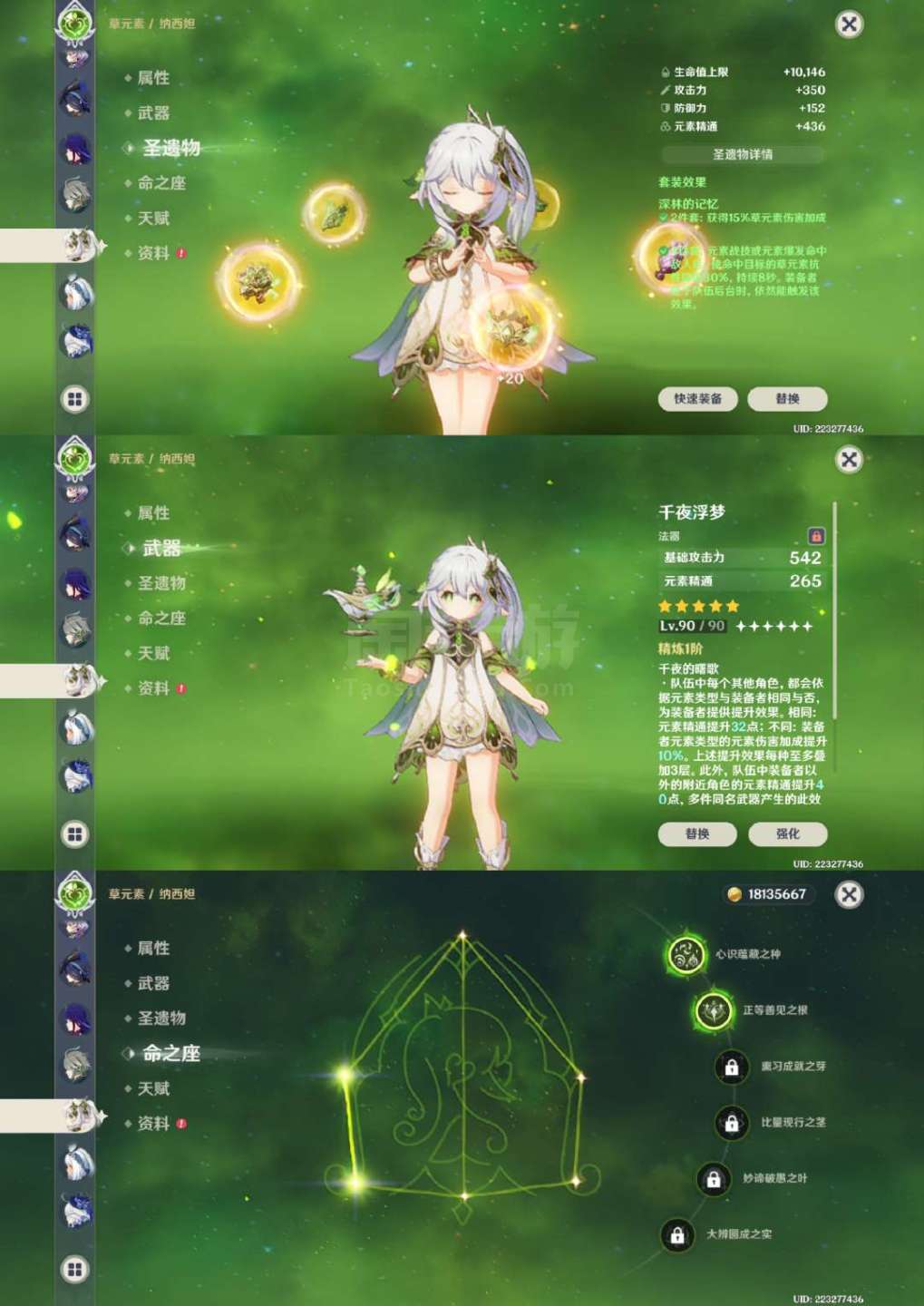 原神【安卓官方】草神2命带专武,龙王克洛琳德1命带专武,夜兰万叶胡桃带专武,具体情况看图,号里专武很多,圣遗物都有