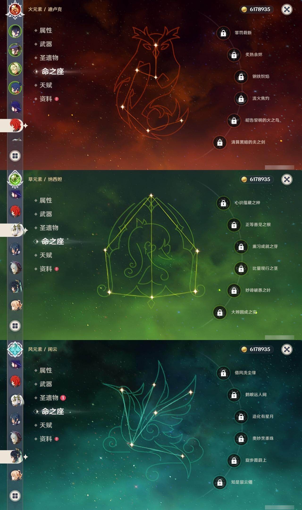 0命闲云,0命纳西妲,0命赛诺,0命夜兰,