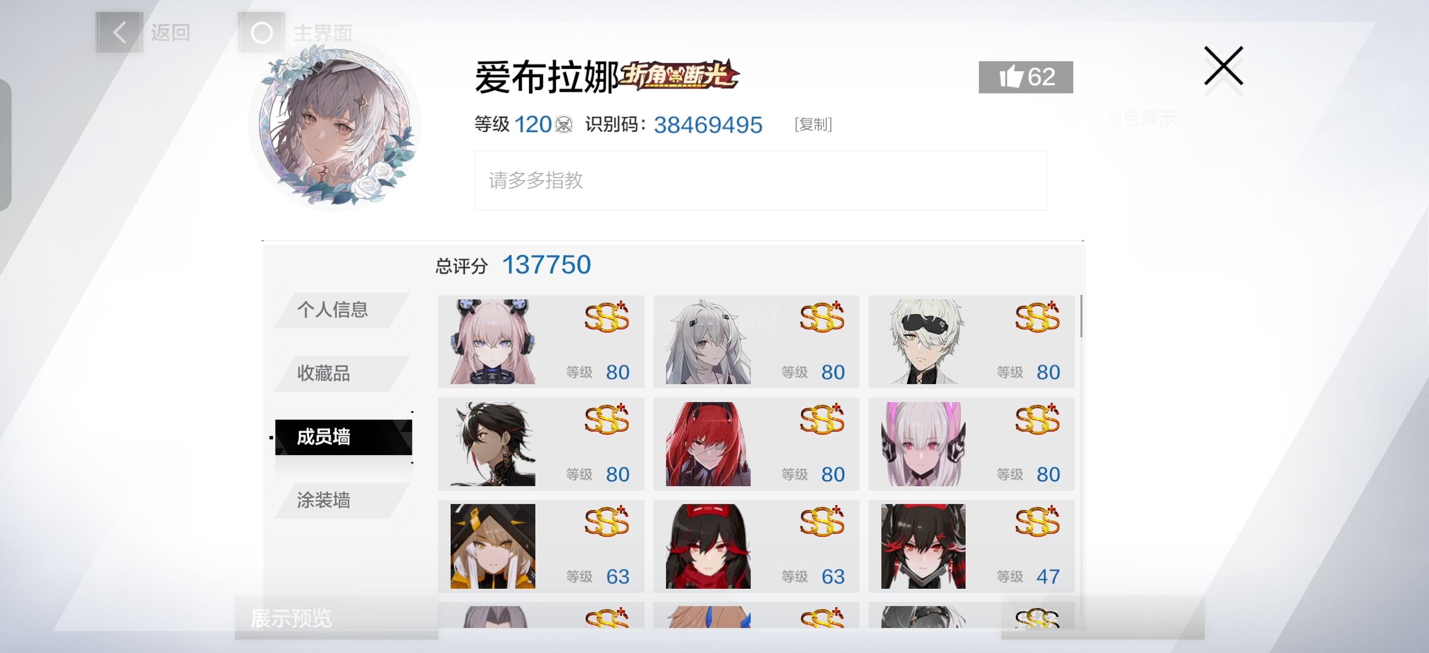战双帕弥什【安卓其他】11特效皮,还全员2s以上,还有2万券评分14万,勋阶145 3s露娜3s深红3s小露3s万事