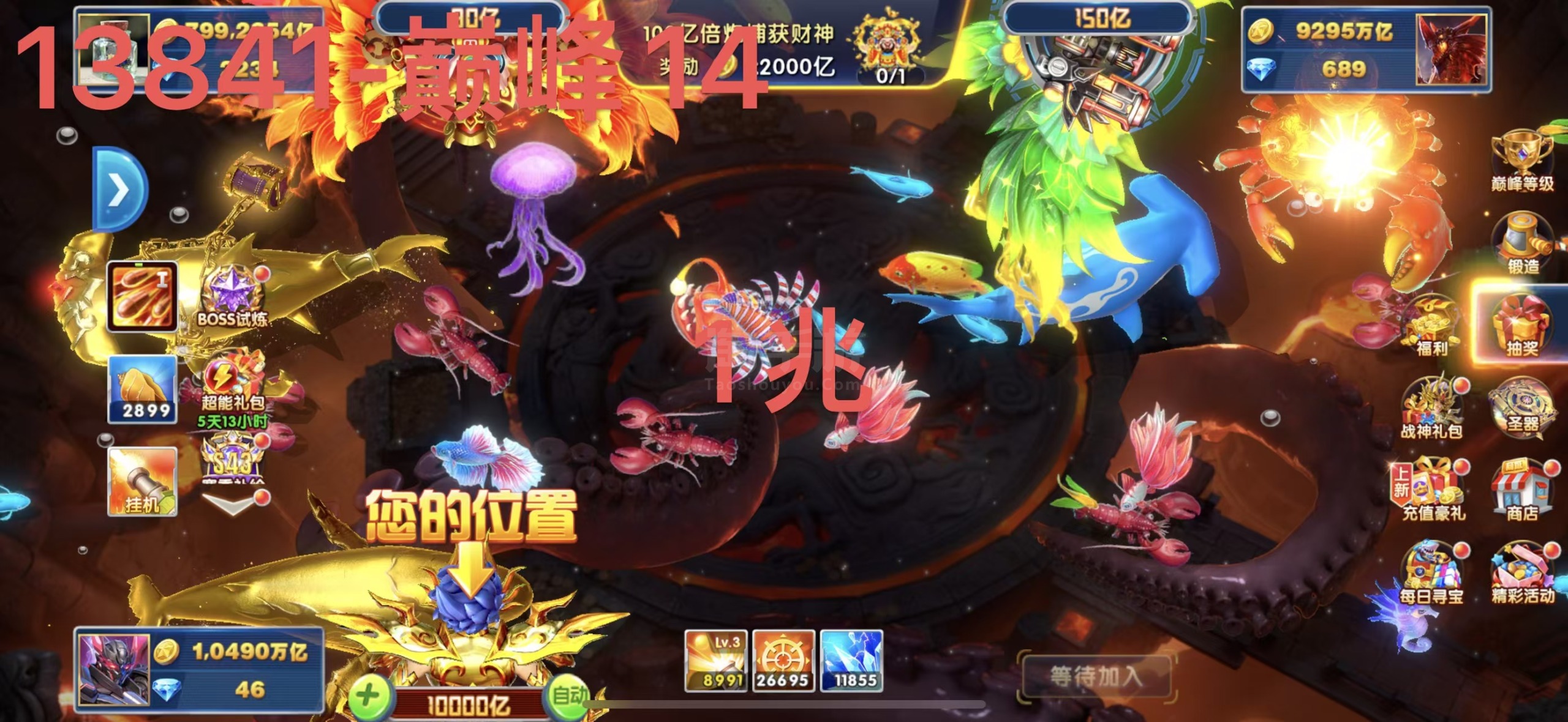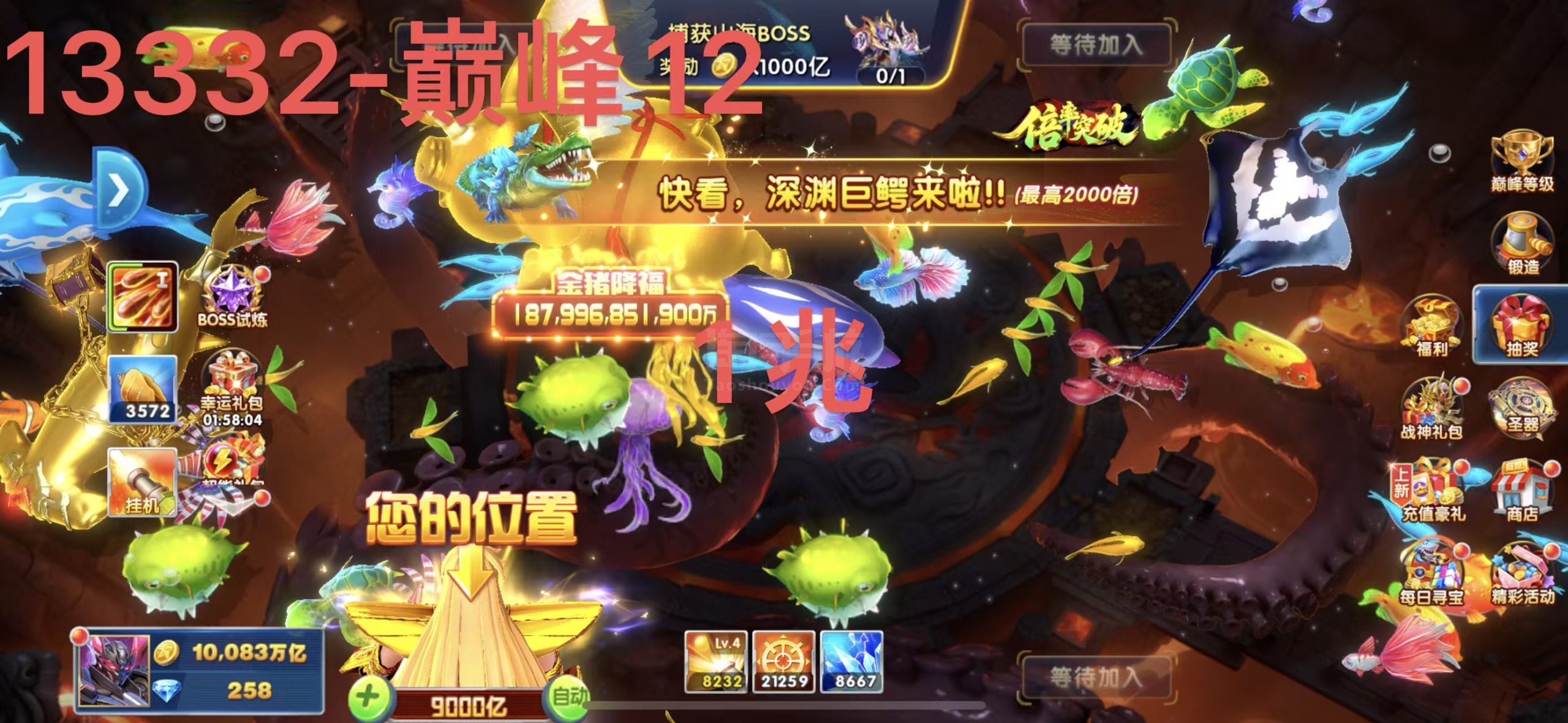捕鱼大作战 1兆超高炮高巅峰多战神不玩秒回