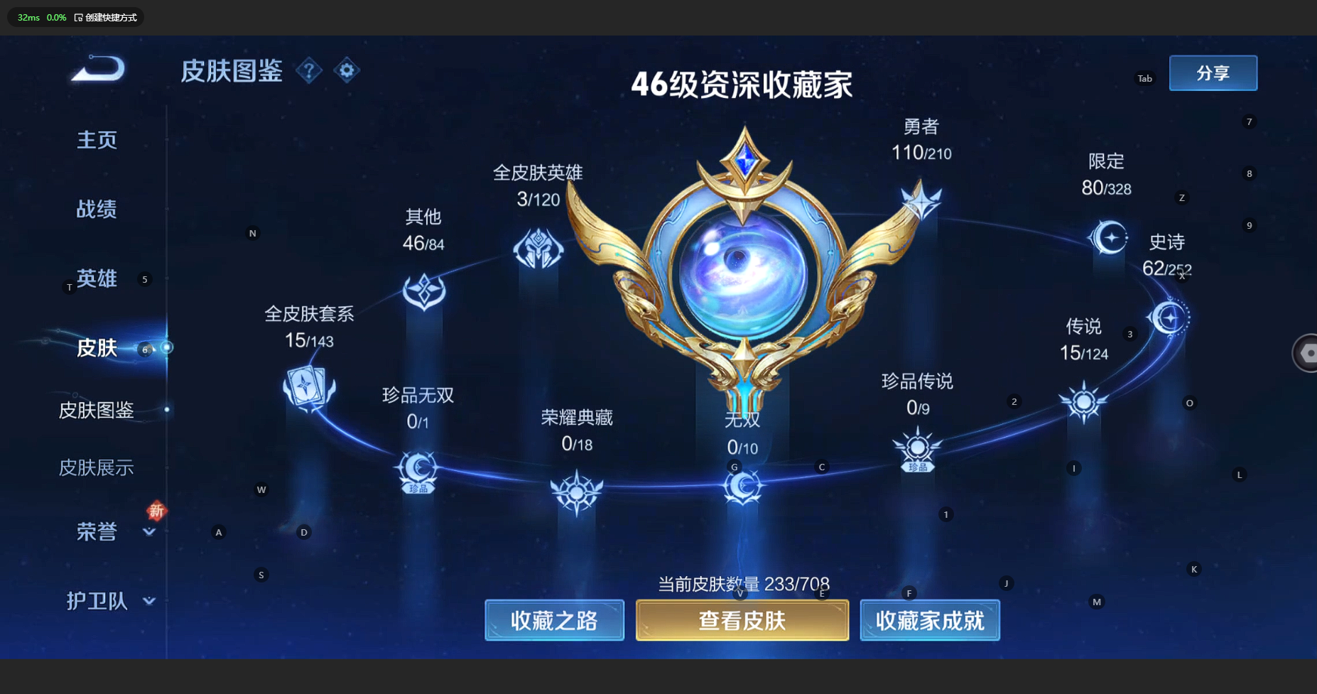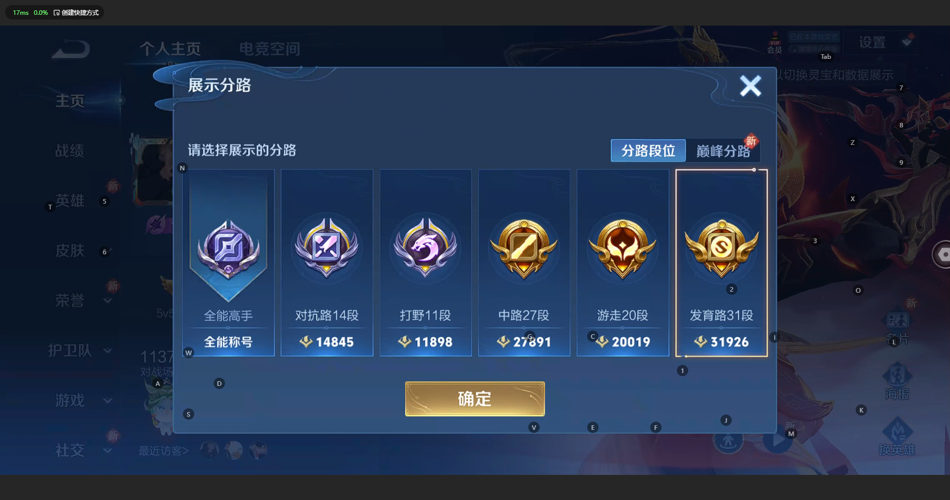 [9535398]满蛇年 发育路31段 中路27段 233皮肤 2星传说 15