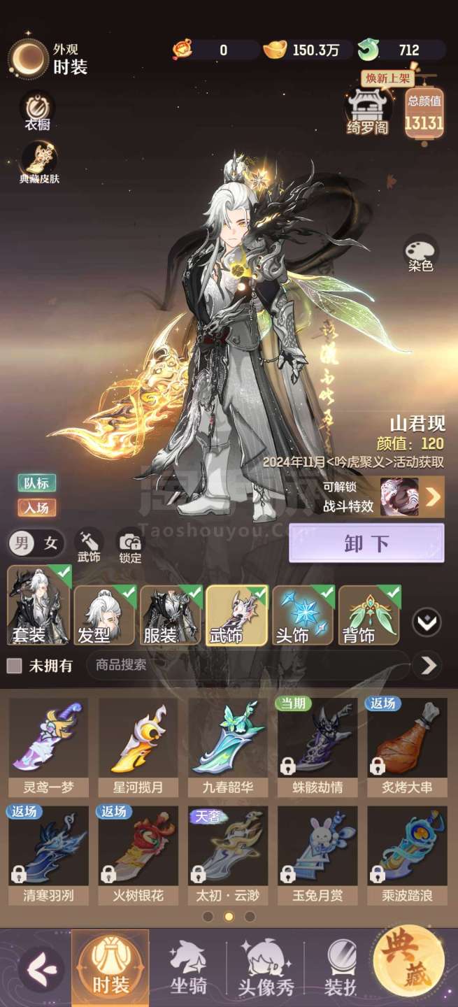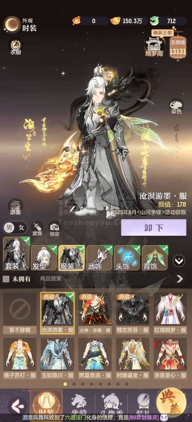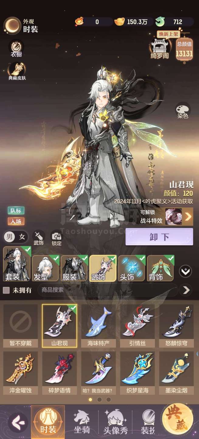 三典藏时装,典藏武器,1.3W颜值,18把武器,10多只坐骑 装备法宝灵宝魂玉毕业,宝宝7.2,不议