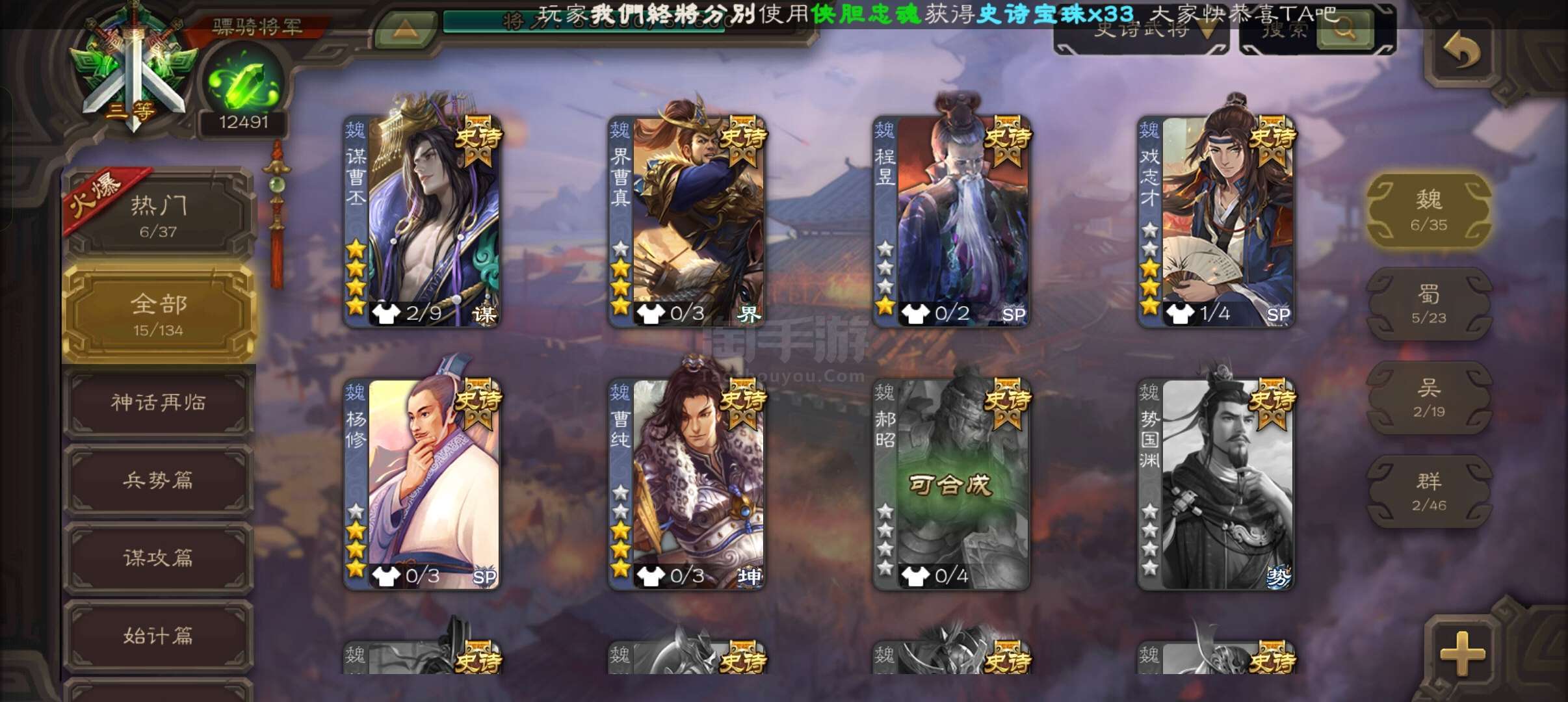 史诗武将数量: