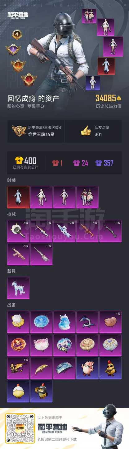 a4046/苹果QQ/-4王牌印记-3粉装-7特效枪-1载具-34085热力值-58套装-117枪皮