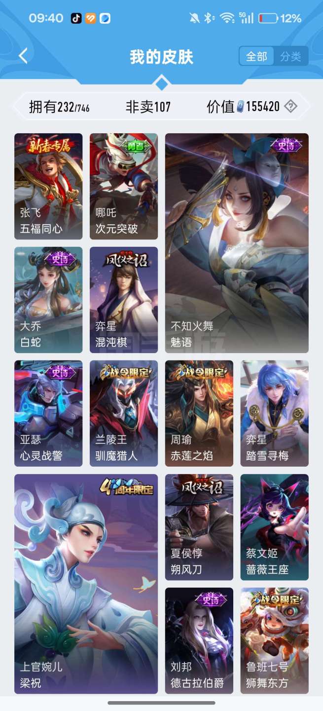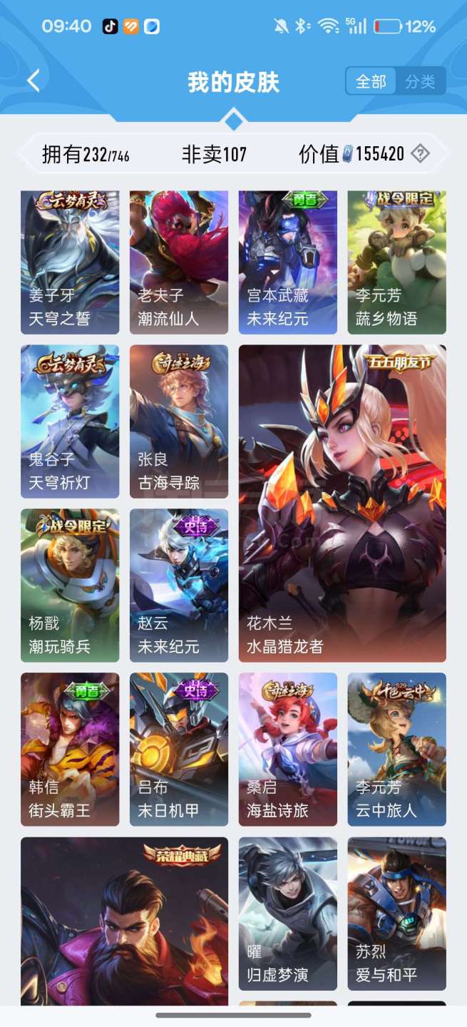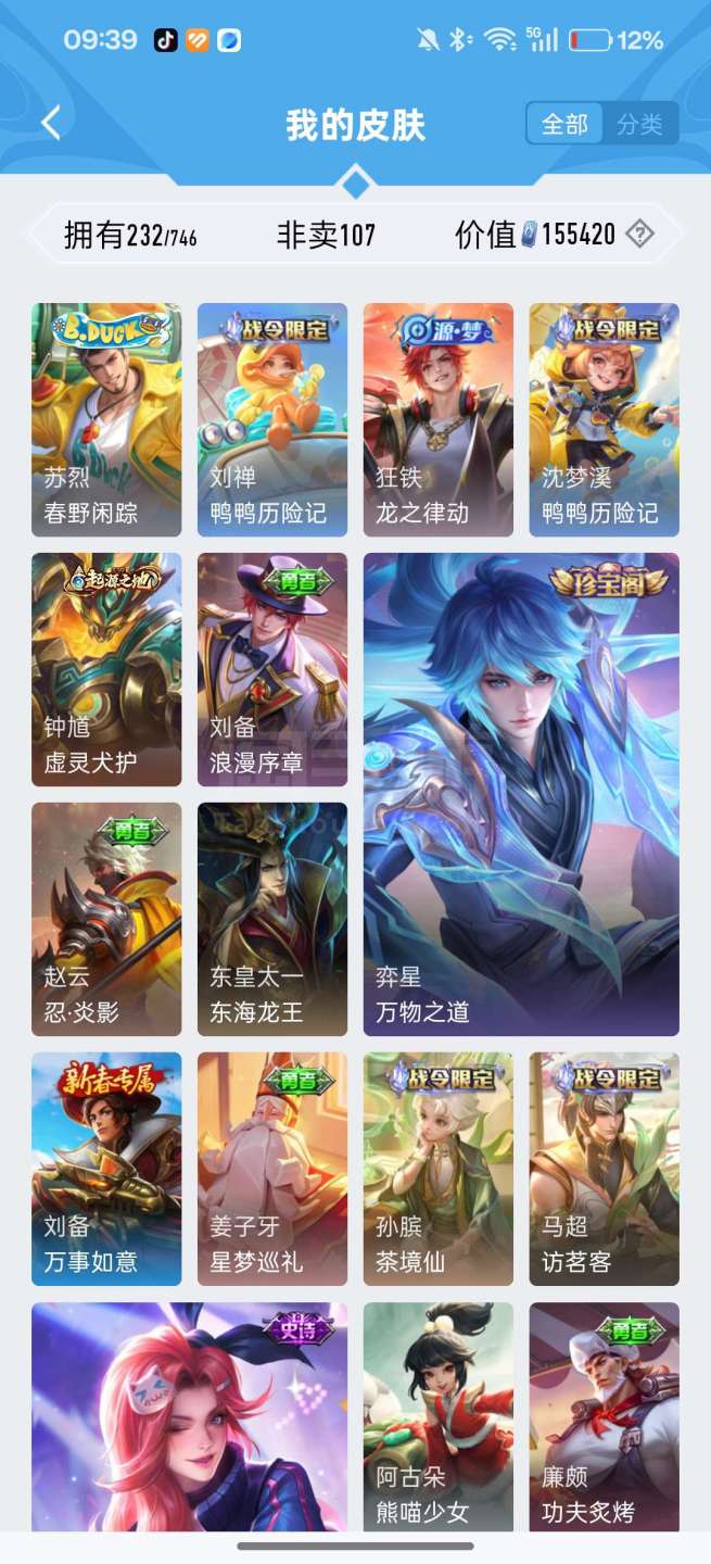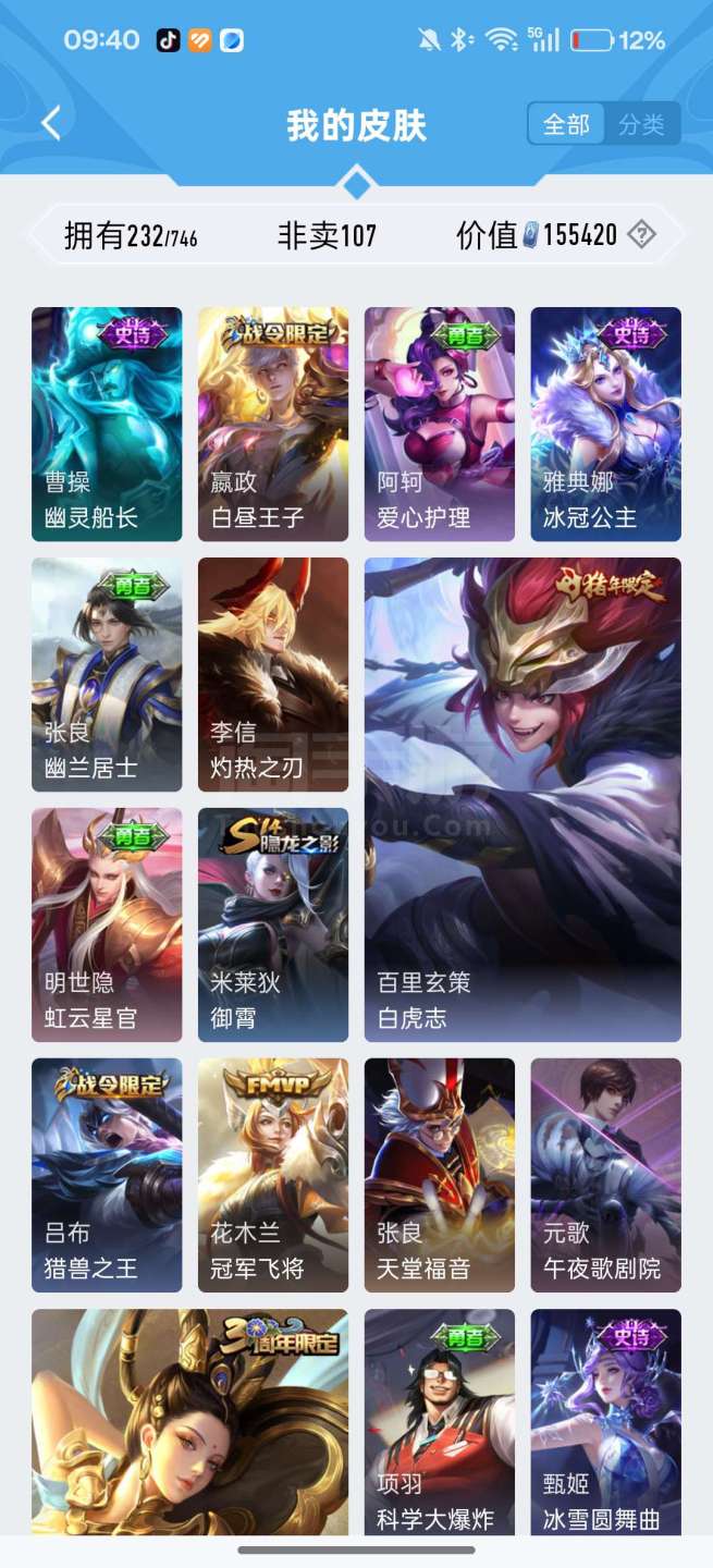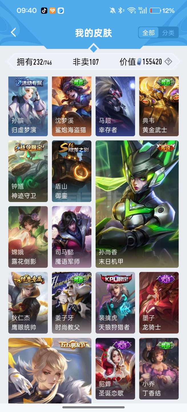 除了武则天全英雄,203皮肤,一个关羽荣耀典藏一个孙尚香星传说
