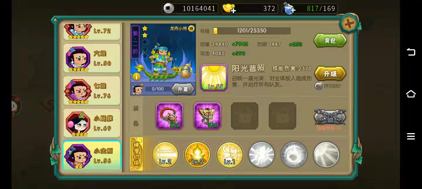 看图片吧,大号有祥龙令,四娃和哪吒六潜能也开了,小号主要是用来刷副本150攒元宝的,周六日有时间卖