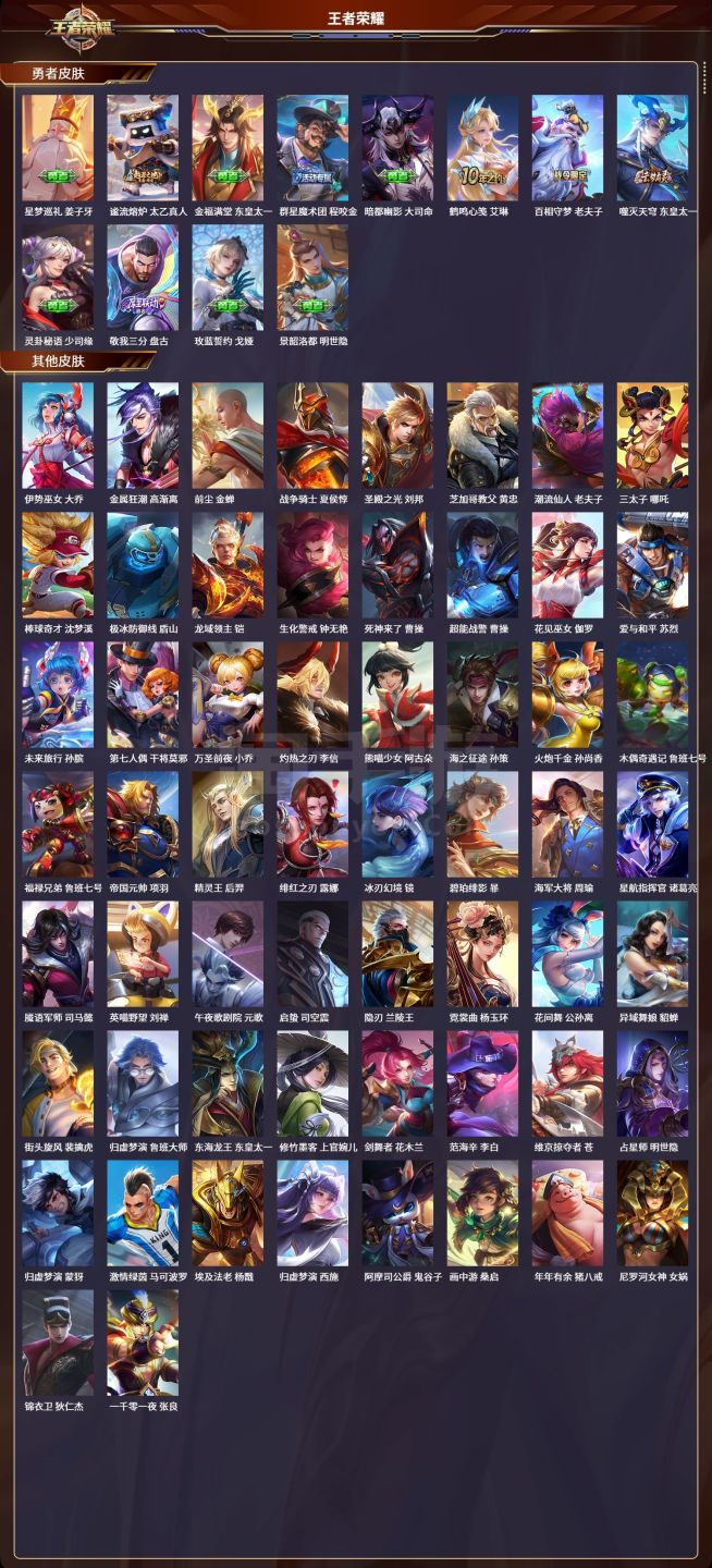 安卓QQ/最强王者/372皮肤/127英雄/1典藏/0珍品无双/2无双/1珍品传说/20传说/104