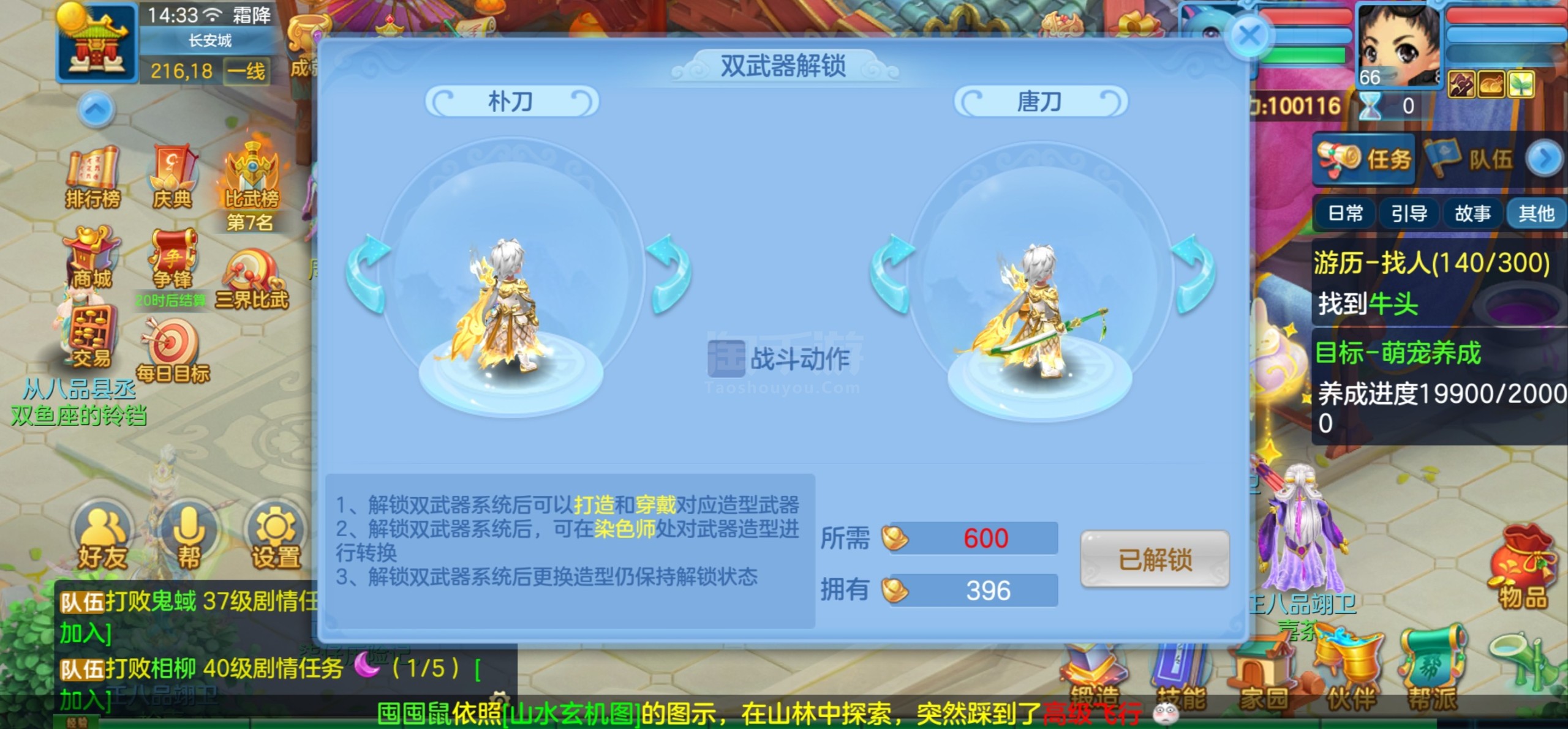 幻唐志:逍遥外传(神武4)【安卓官方】国庆区,天行风云,极品老鼠加极品子女,刚开60,皮肤加唐刀,通灵符和通灵丹还有