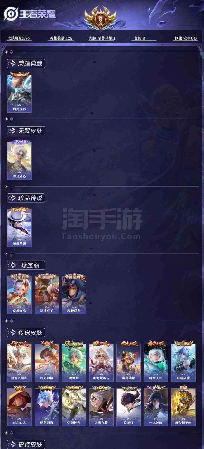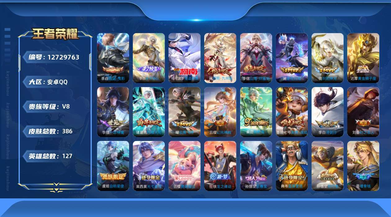 0AHNLQ不可二次386皮肤无双1水晶1珍品传说1打野号传说14优质限定9