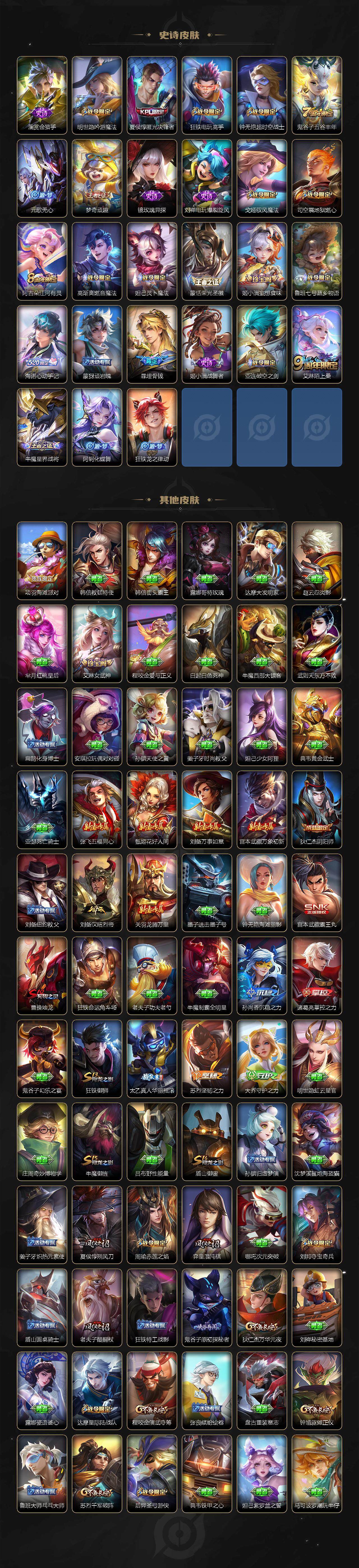 【英雄全皮】:刘邦全皮,狂铁全皮,蒙恬全皮,澜全皮,戈娅全皮,影全皮,海诺全皮