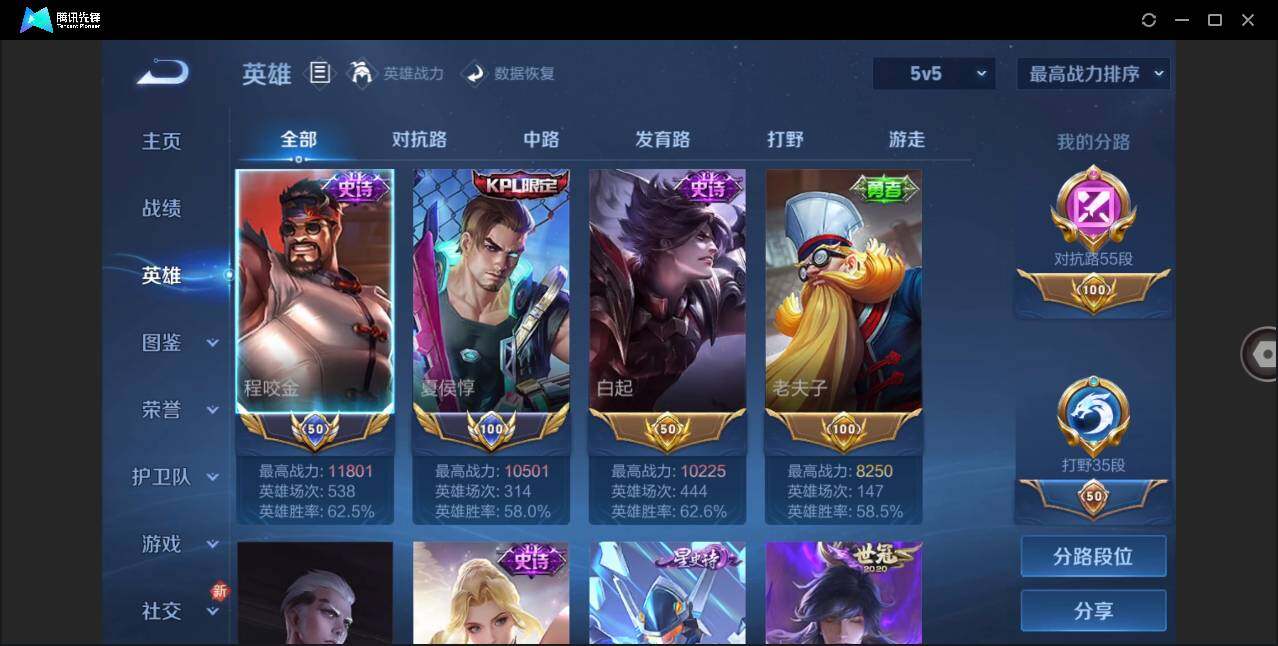 1466407王者荣耀账号 小国标程咬金小国标夏侯淳,金标万战白起8个金标对抗