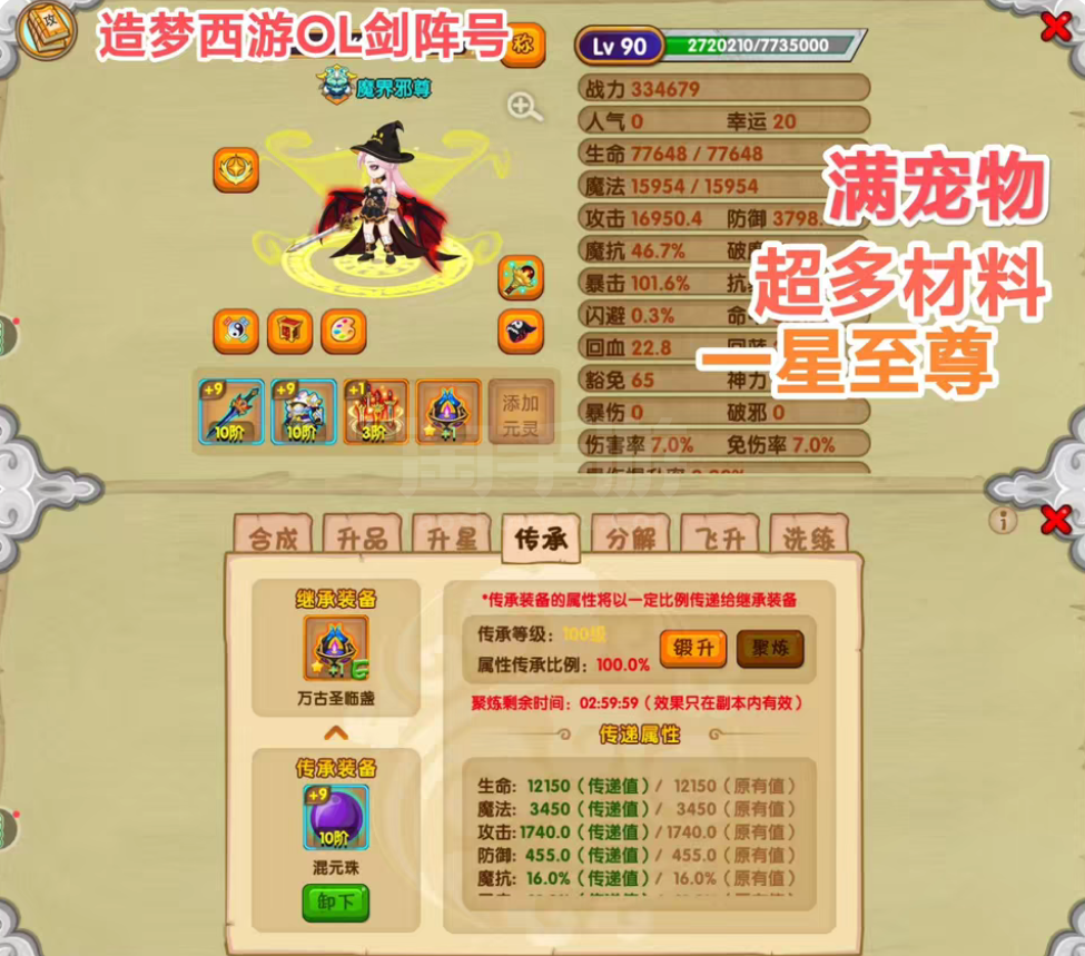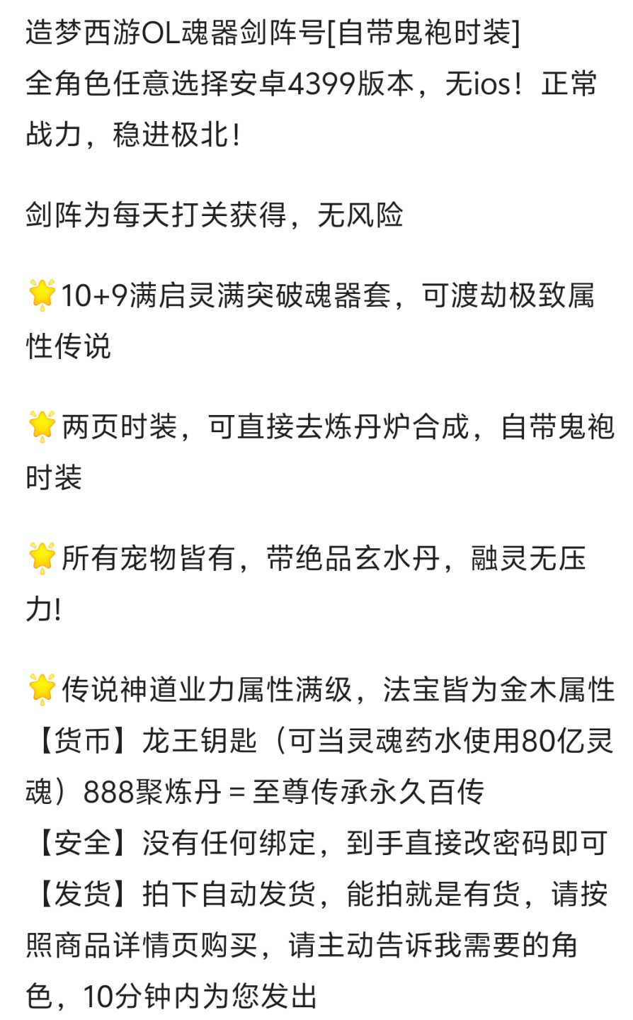 造梦西游OL【安卓4399】造梦西游OL魂器剑阵号【自带鬼袍时装】全角色任意选择安卓4399,无ios!正常战力,稳进极北。