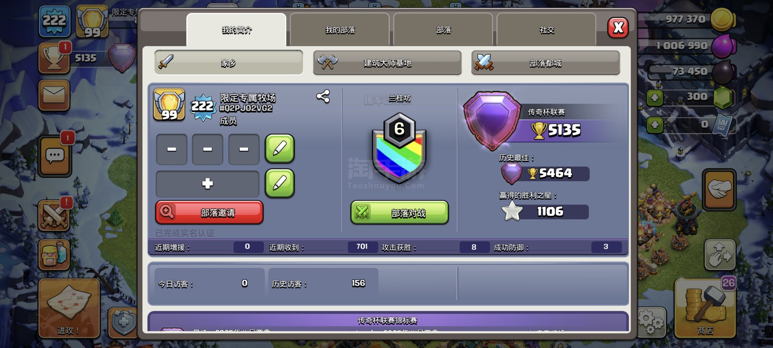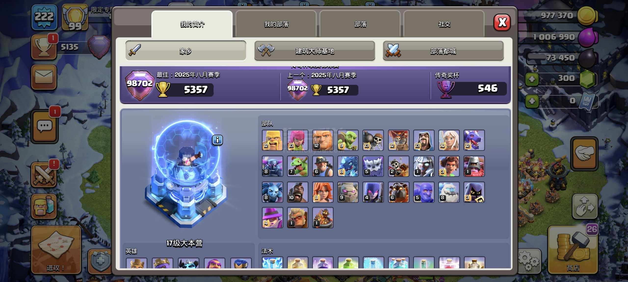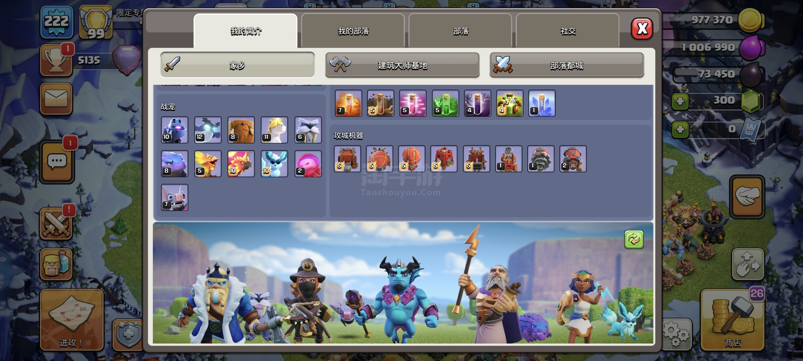 部落冲突【安卓QQ】[222]经验99繁荣4王满装备高有气泡场景皮肤自玩