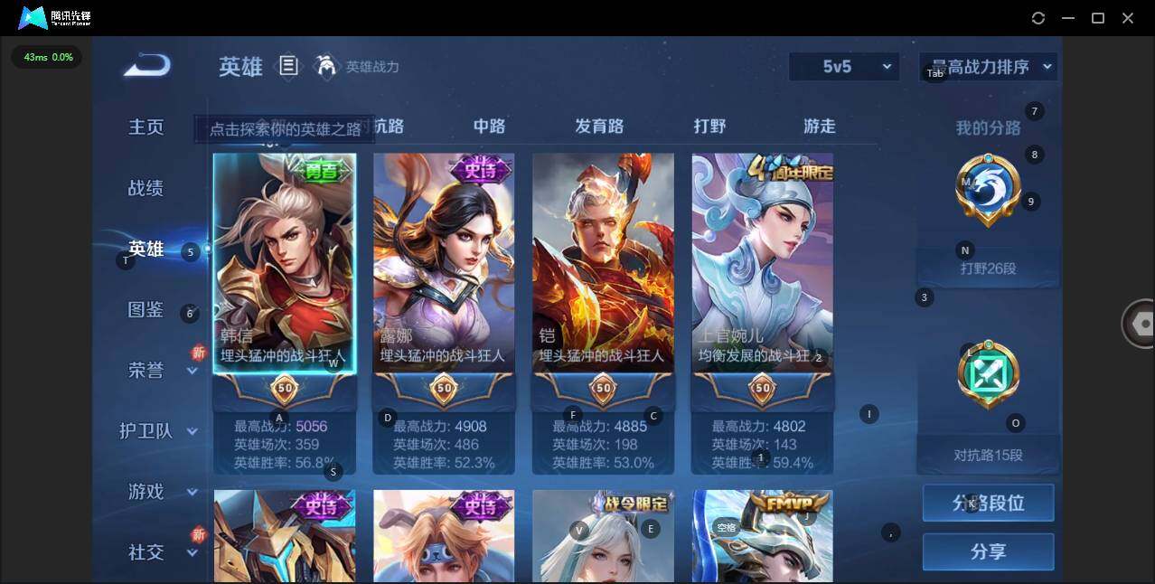 营地账号:1736082973/【有限制,不影响游戏。当做游戏号!具体看图】实名: 可修改 贵族等级: V5 英雄数: 113 皮肤数: 118 荣耀水晶: 大秦宣太后 传说皮: 无双飞将,澜逐花归海 限定皮: 梁祝,鸣野蒿,逐霄战戟