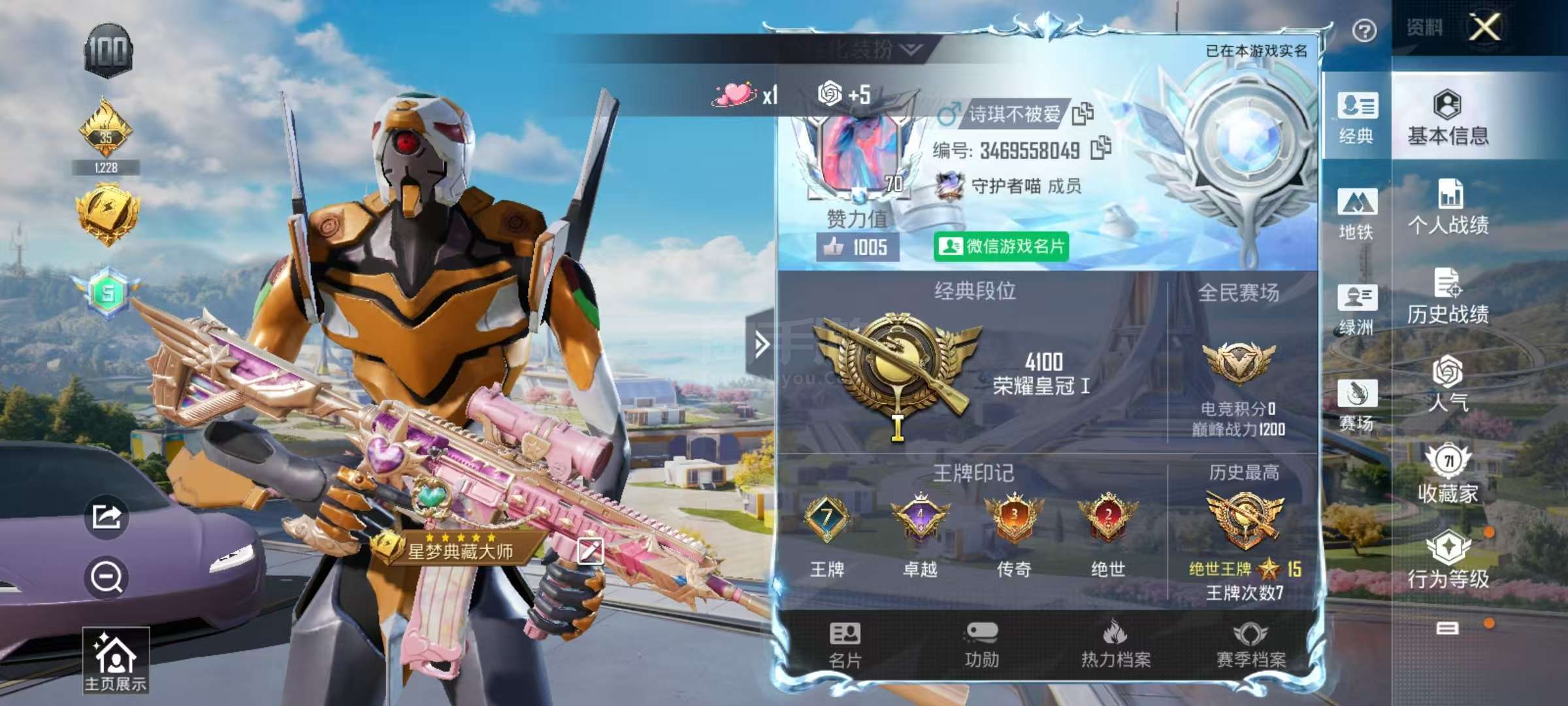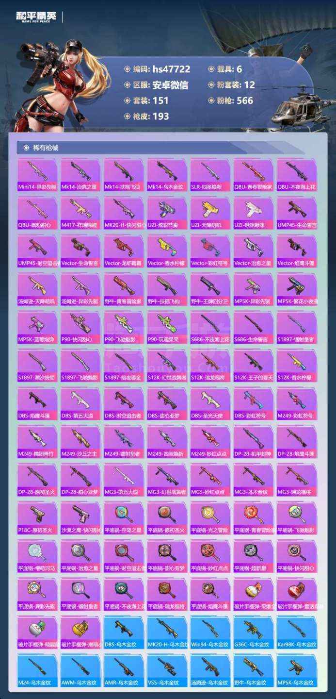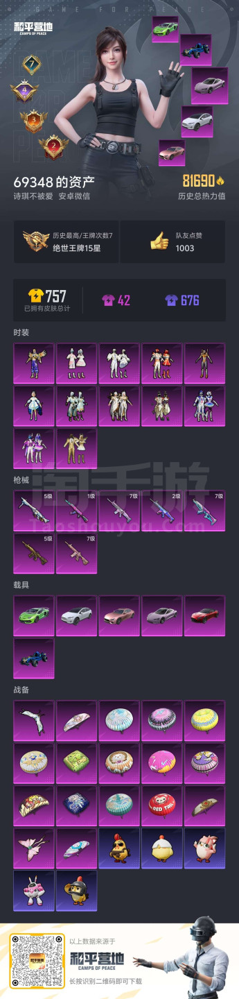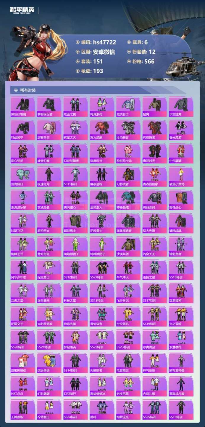 安卓微-7王牌印记-12粉装-7特效枪-6载具-81818热力值-151套装-193枪皮-4卓越印
