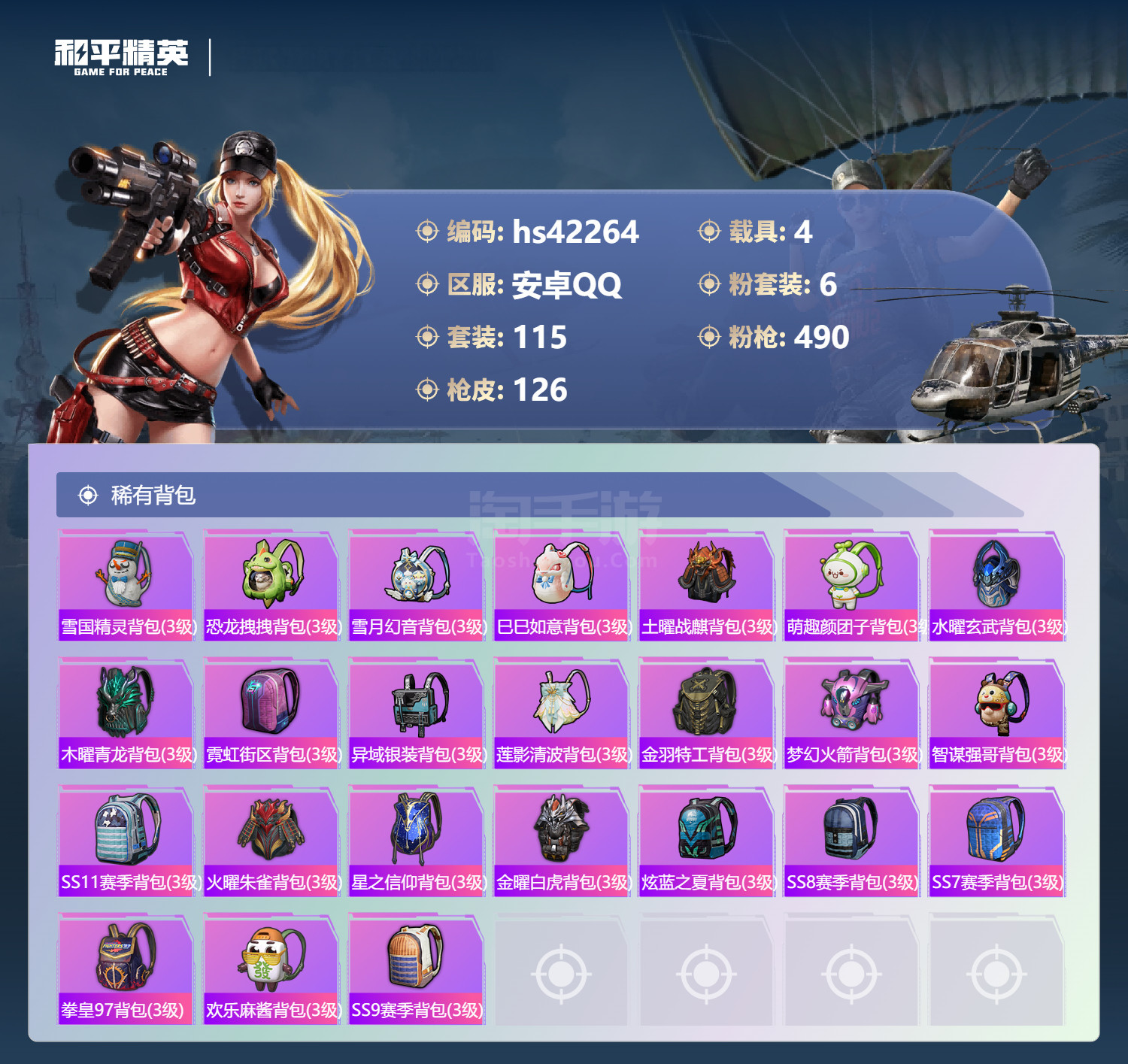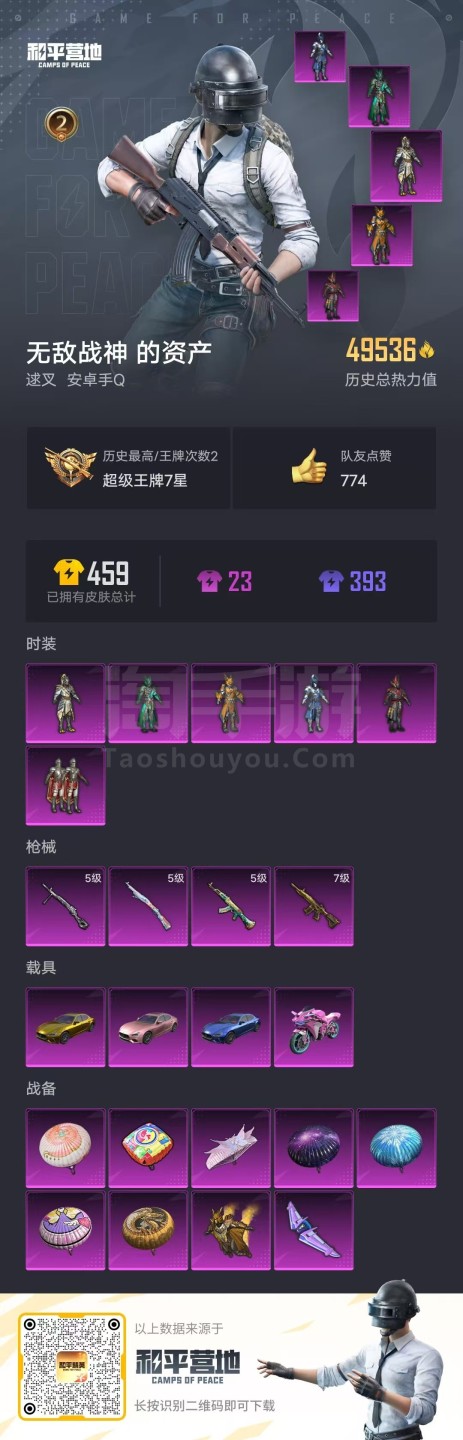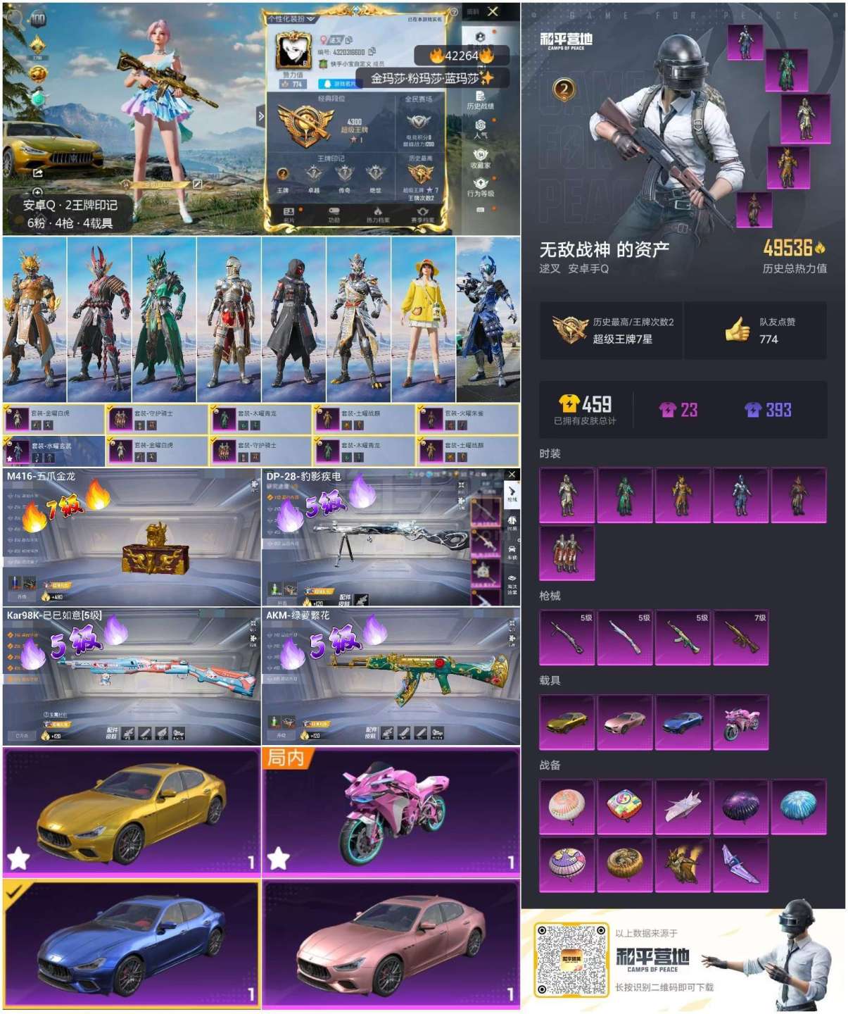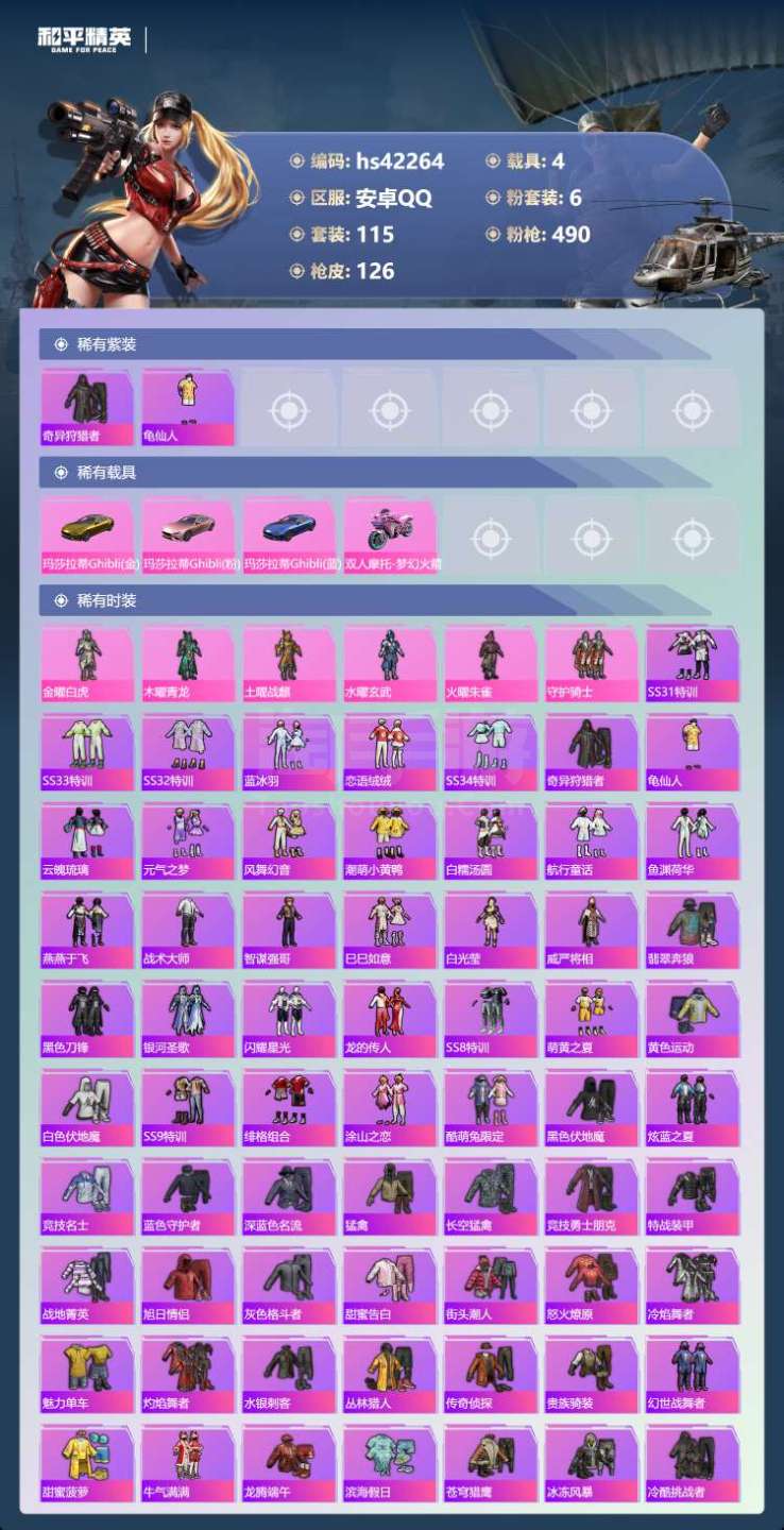 安卓手Q-2王牌印记-6粉装-4特效枪-4载具-49536热力值-115套装-126枪皮 【6粉装】